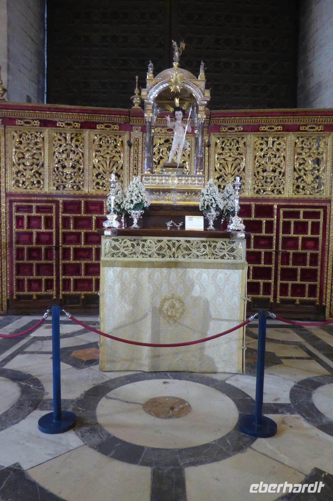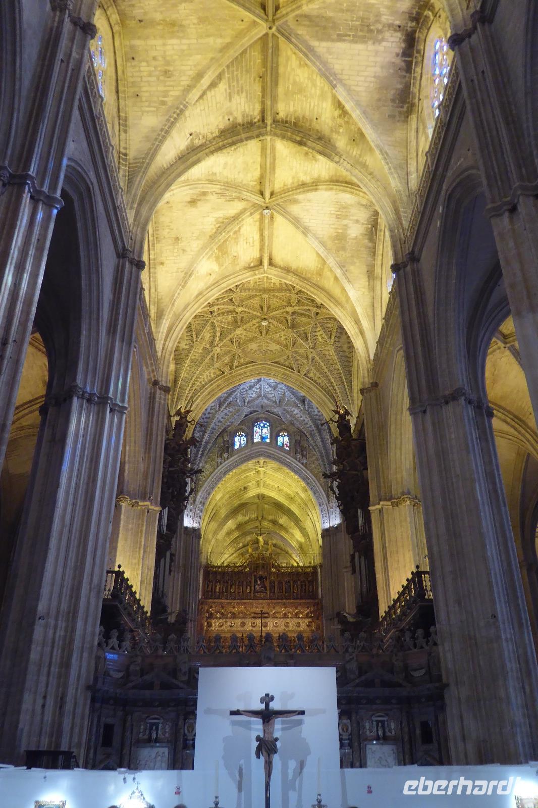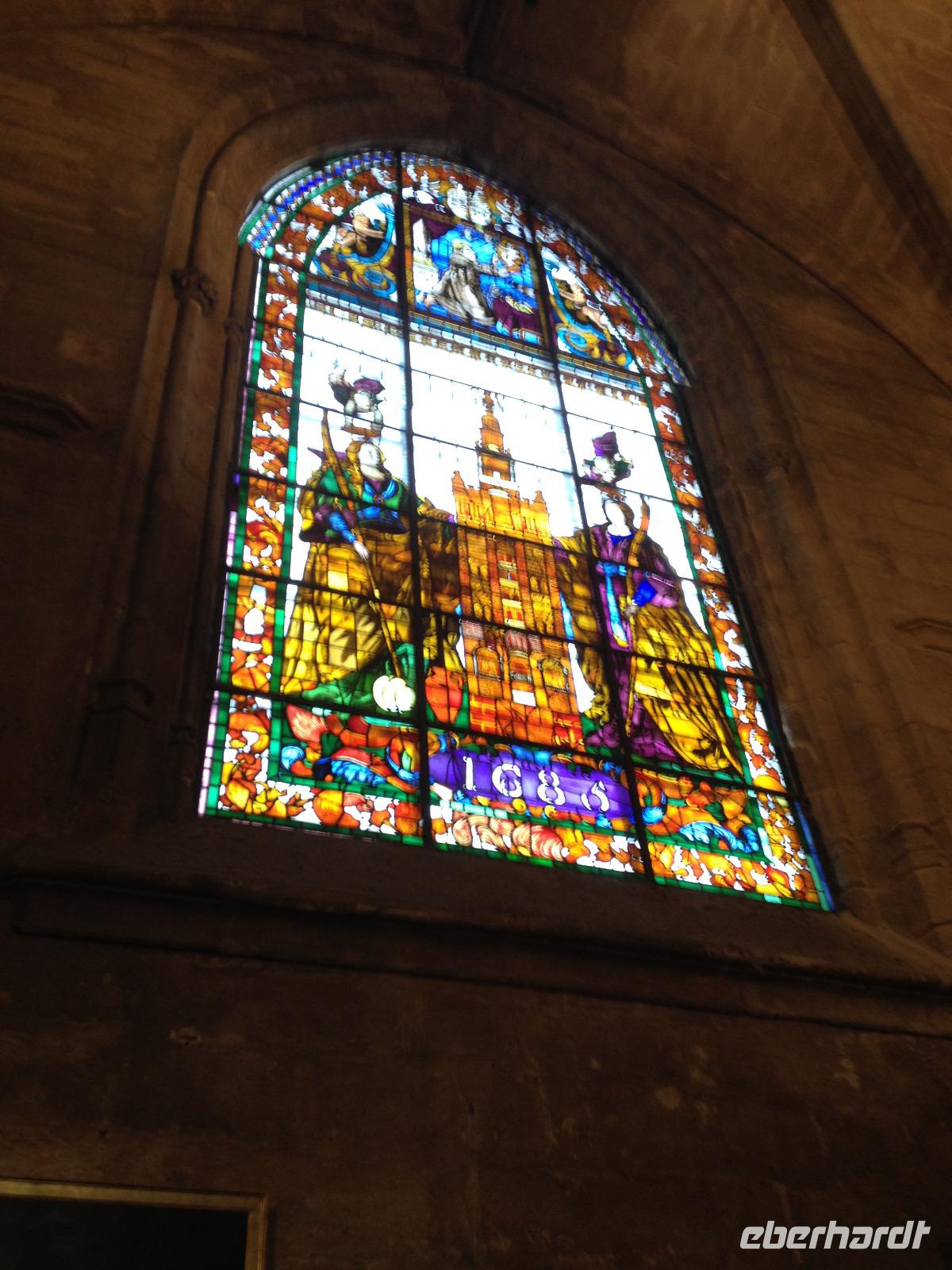 Zu Beginn stiegen wir bei dem Gebäude der iberoamerikanischen Ausstellung von 1929 aus: die Plaza de España. Die verschiedenen Türen repräsentieren die vier Königreiche und die anderen Provinzen Spaniens. Dann besuchten wir mit unserer örtlichen Reiseleiterin Diana die Jardines de Murillo, des bekannten gotischen Malers Sevillas. Dort habe ich einen Freund aus meinem Dorf getroffen und später in der Kathedrale auch eine Kollegin aus meiner Studienzeit in Málaga. Dies waren zwei tolle Überraschungen, die mich sehr gefreut haben und wie sagt man: die Leute aus Mijas (Málaga) sind auf der Welt, um eine Lächeln zu schenken.