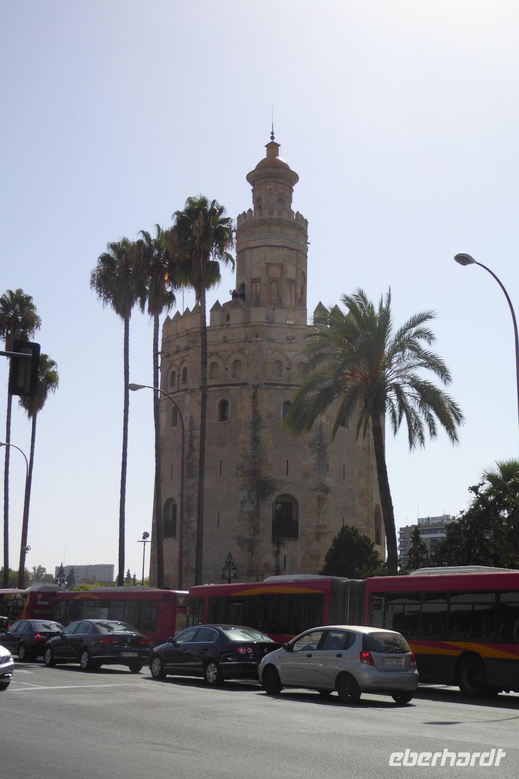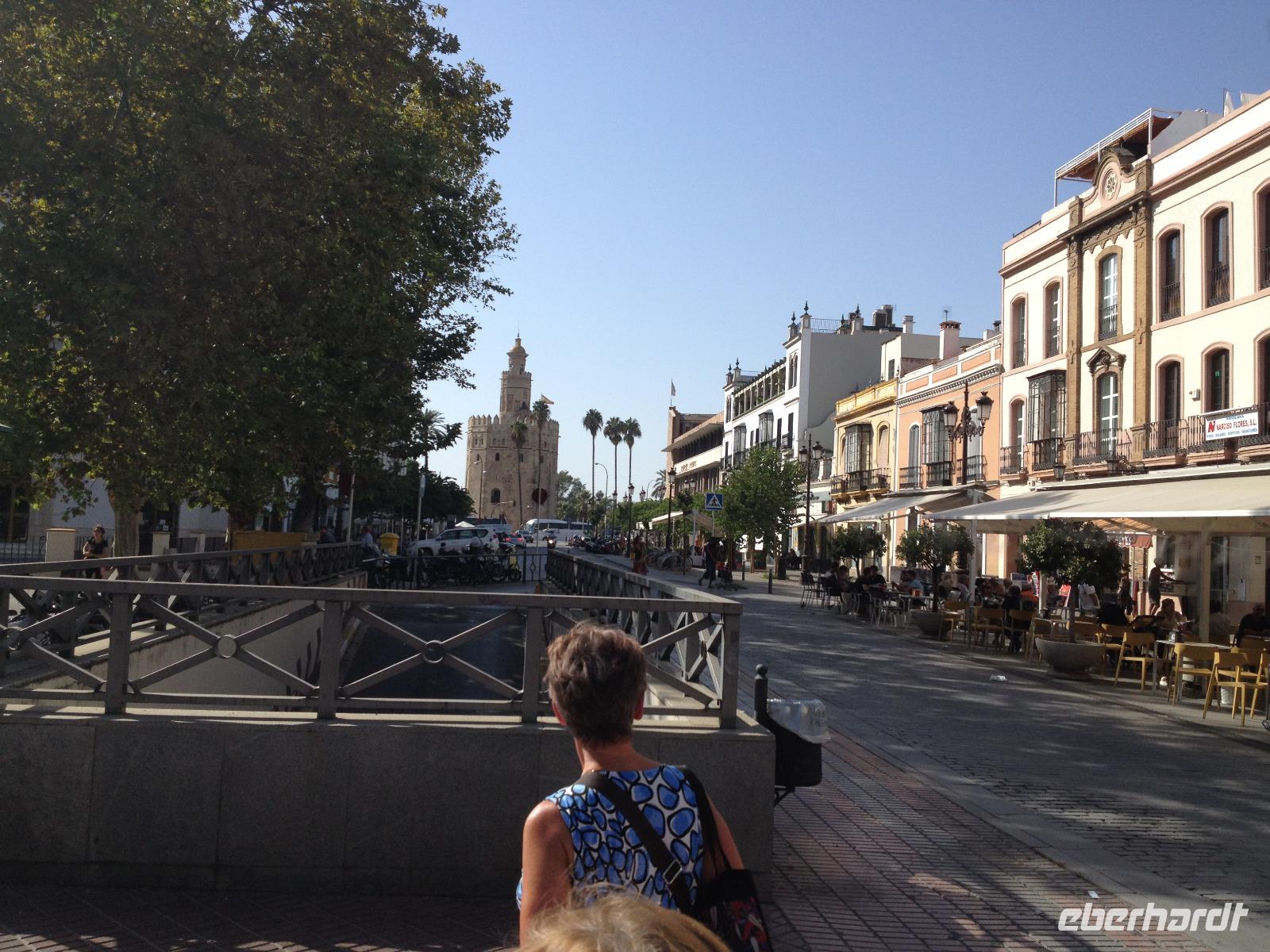 Dann gingen wir zu unserem Bus, vorbei am Goldturm am Guadalquivir Fluss.