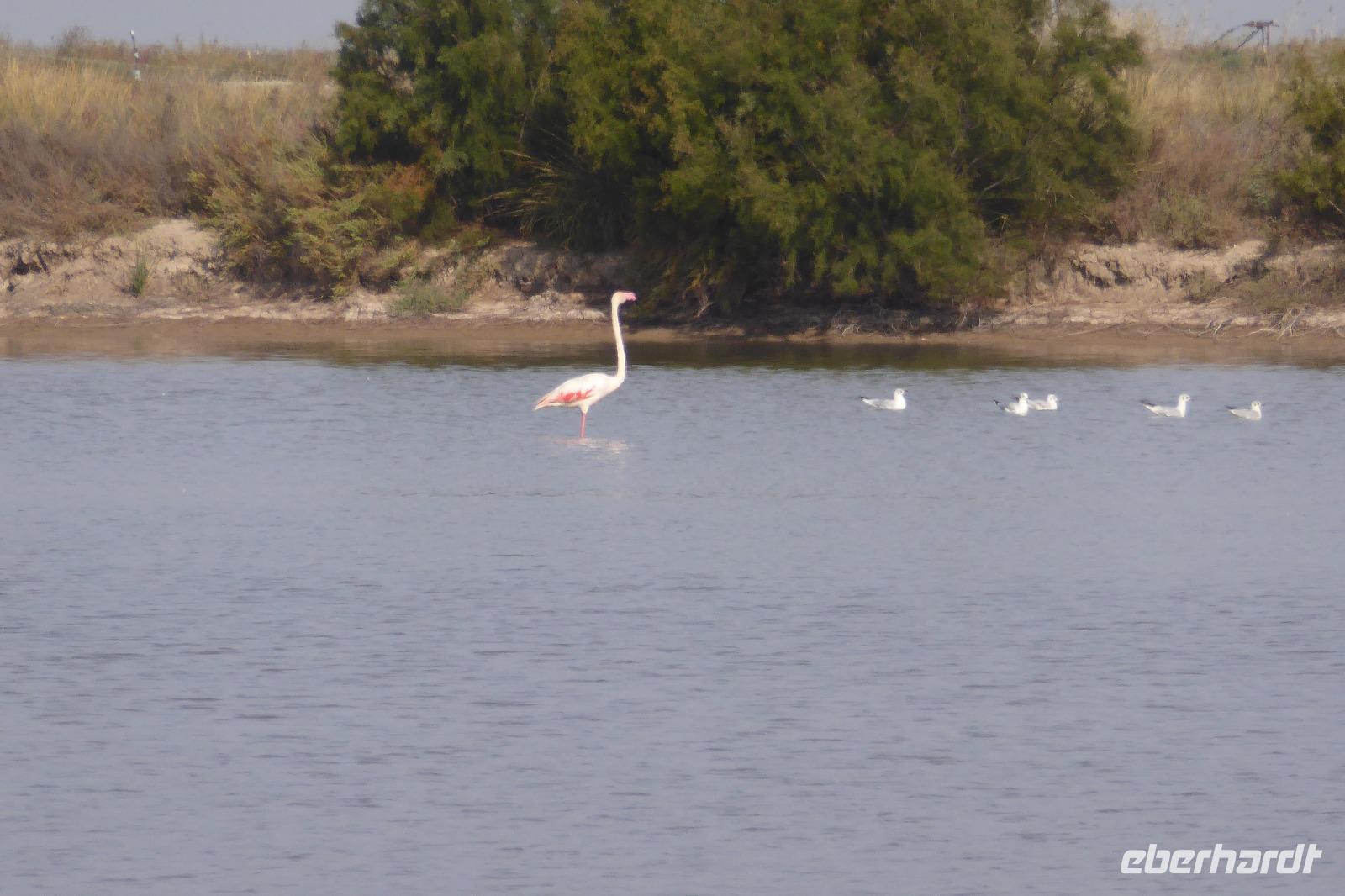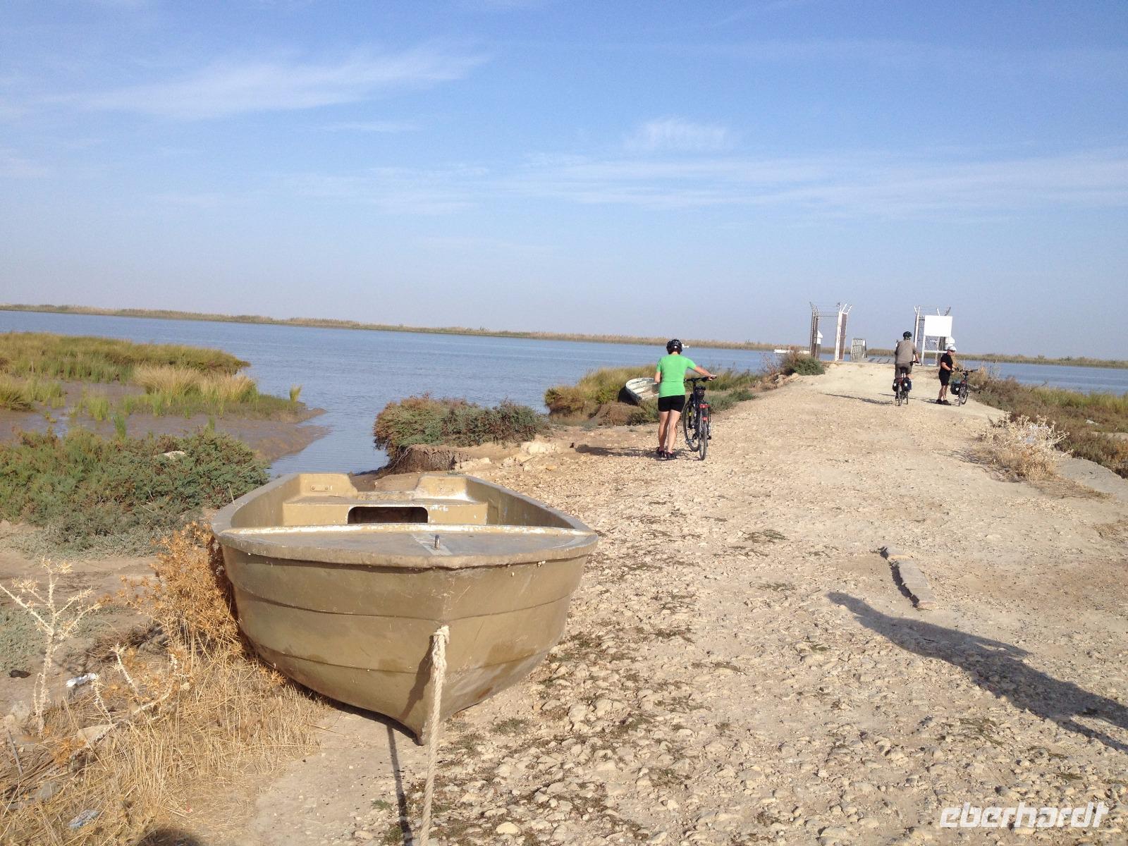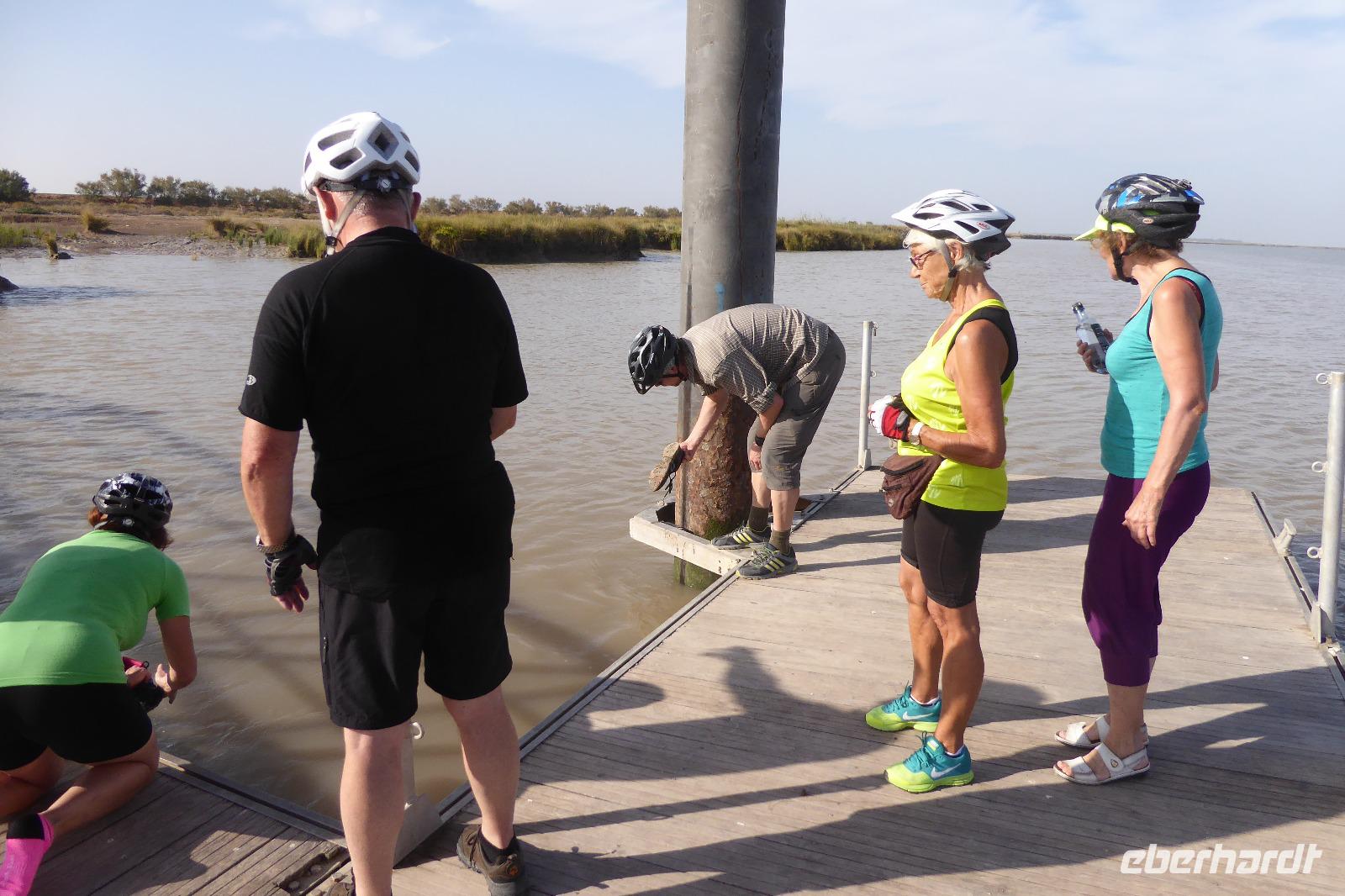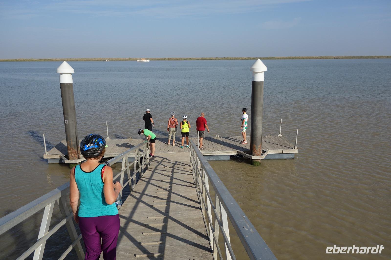 Aufgestanden mit der Brise des Atlantiks, ging es nach einem guten Frühstück los nach Trebujena. Dort begann unsere Radtour durch das Weingut bis zu den Sümpfen von Doñana. Hier machten wir einen Halt neben dem Bootssteg. Von da an fuhren wir an den verschiedenen Kanälen entlang und sahen sogar Flamingos, sowie andere Vogelarten.