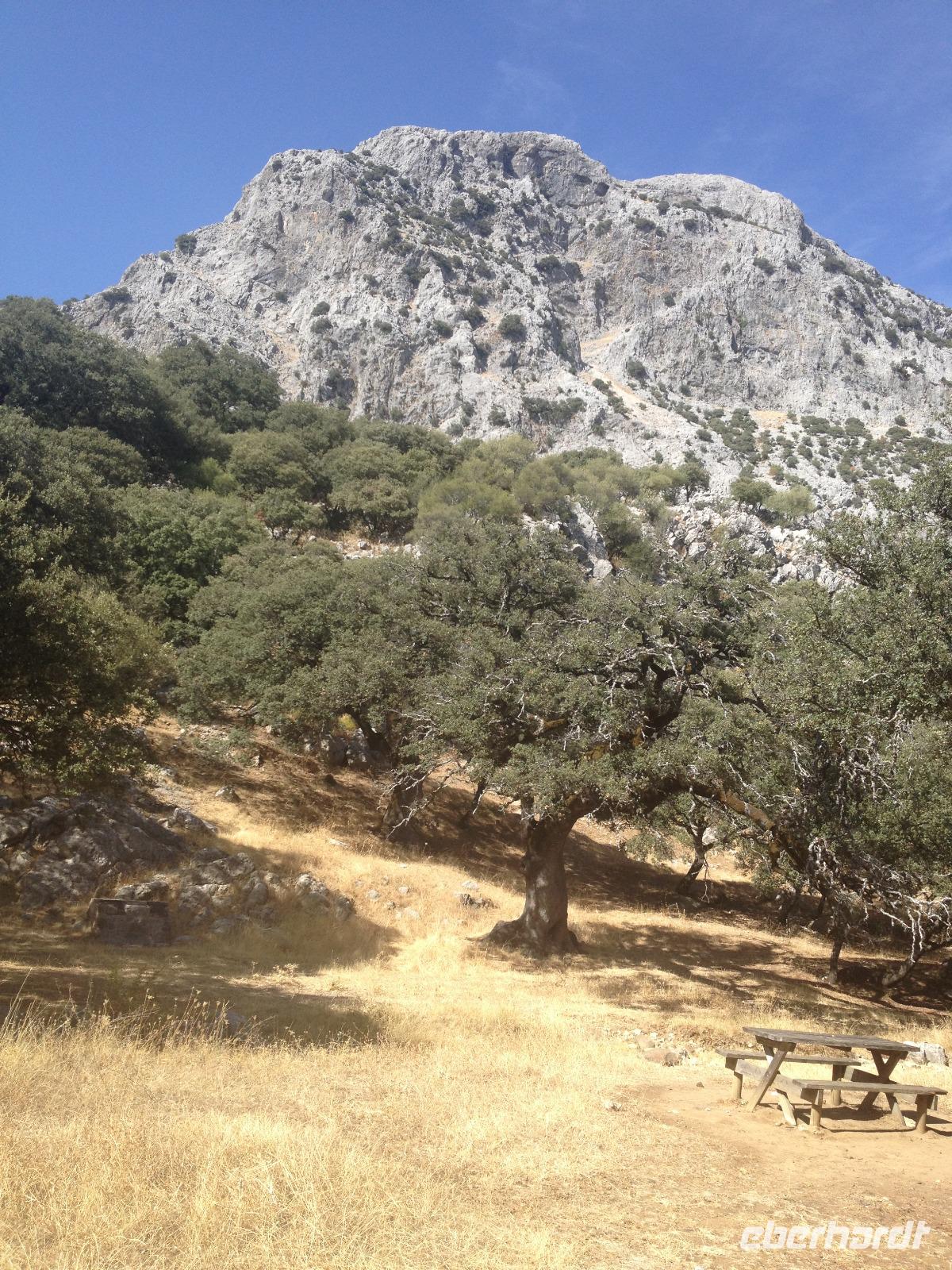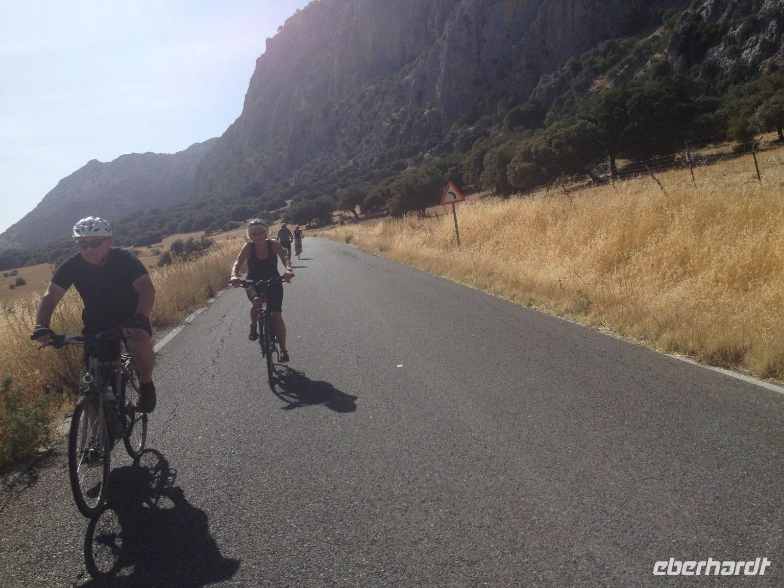 Dann fuhren wir nach Benaoján und begannen unsere Radtour steil bergab nach Villaluenga del Rosario durch die schöne Natur. Nach dieser Strecke, stärkten wir uns bei einem Picknick zwischen den Steineichen.