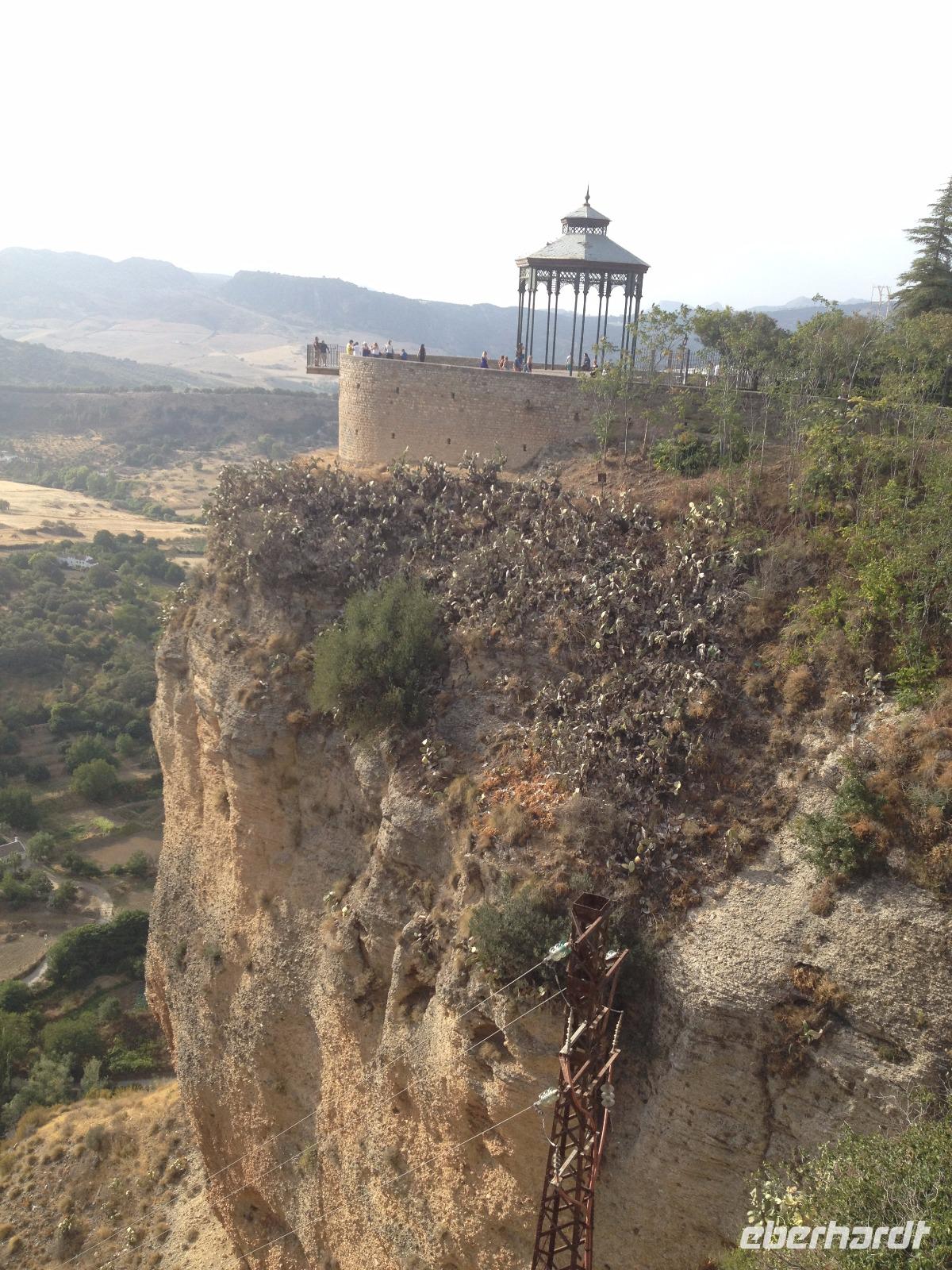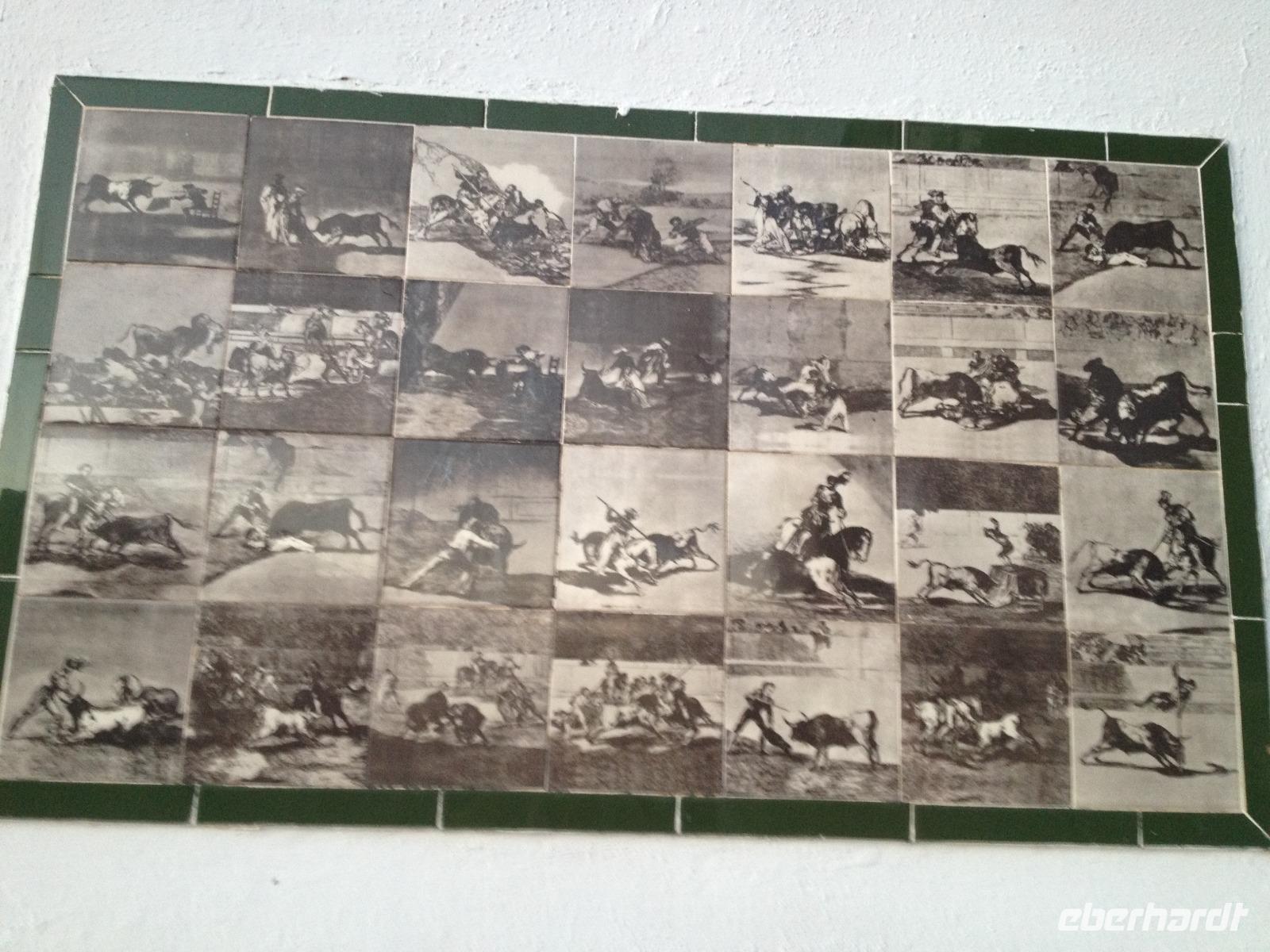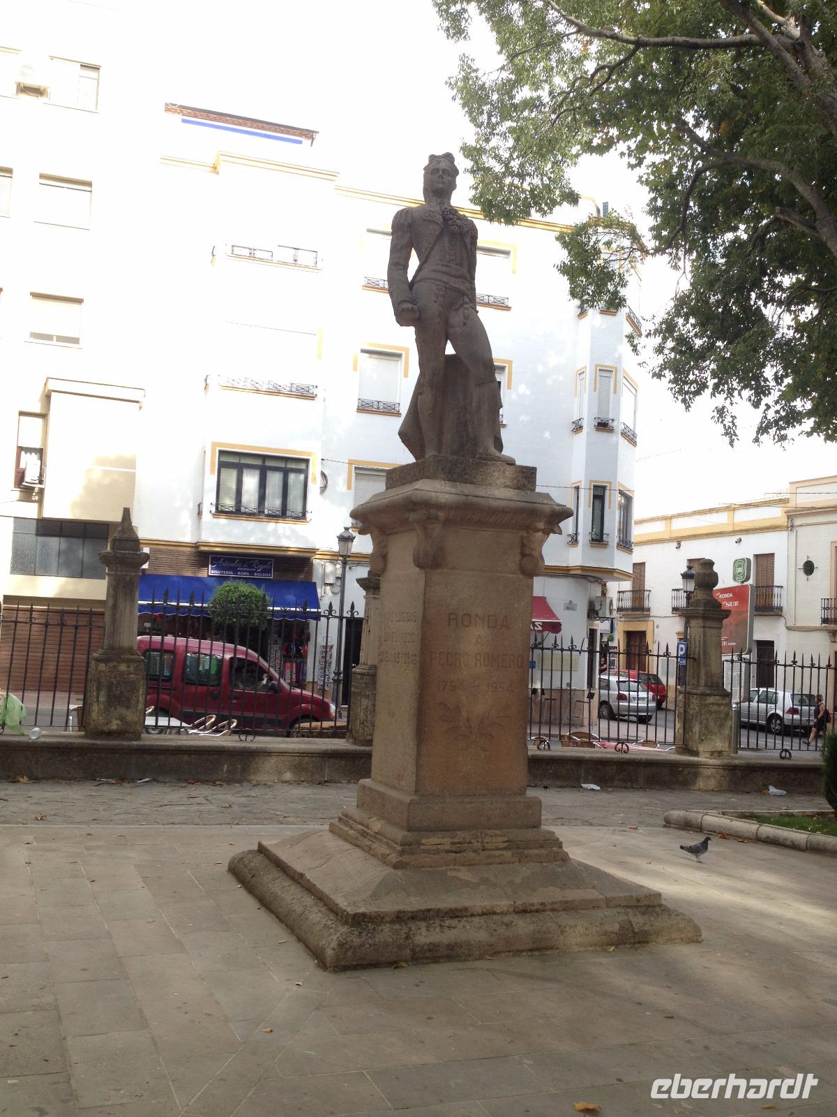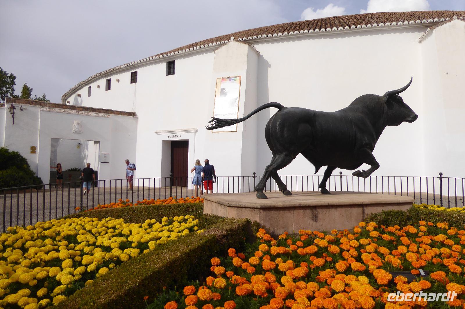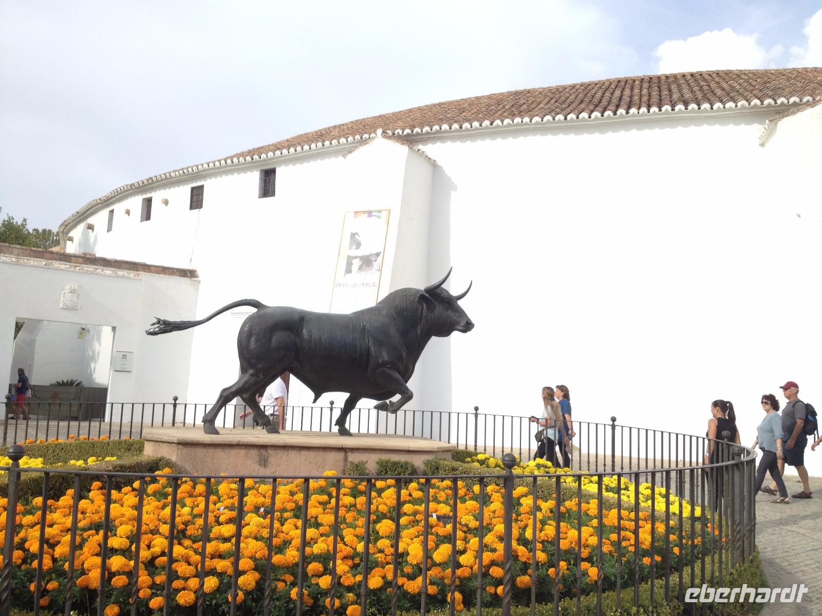 Der Rundgang begann in den Gärten von Ronda, wo sich die Denkmäler von der Goyesca Dame befinden. Die schönen Kleider aus dieser Epoche findet man heutzutage noch bei den Corrida Goyesca-Festen. Wir näherten uns dem Aussichtspunkt mit einem wunderschönen Panorama bis zu der bekannten Stierkampfarena, die älteste Spaniens!