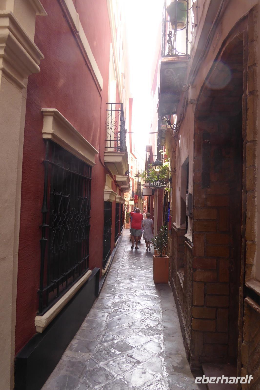 Mit Diana gingen wir in das alte arabische Viertel Santa Cruz mit seinen vielen Gassen und Besonderheiten an jeder Ecke, wie die Gebäude aus dem Mittelalter mit ihrem Charme, die schönen Häuser mit typischen andalusischen Innenhöfen und die Kirchen überall.