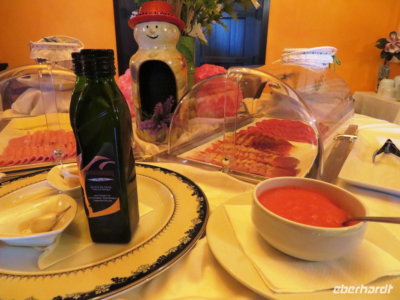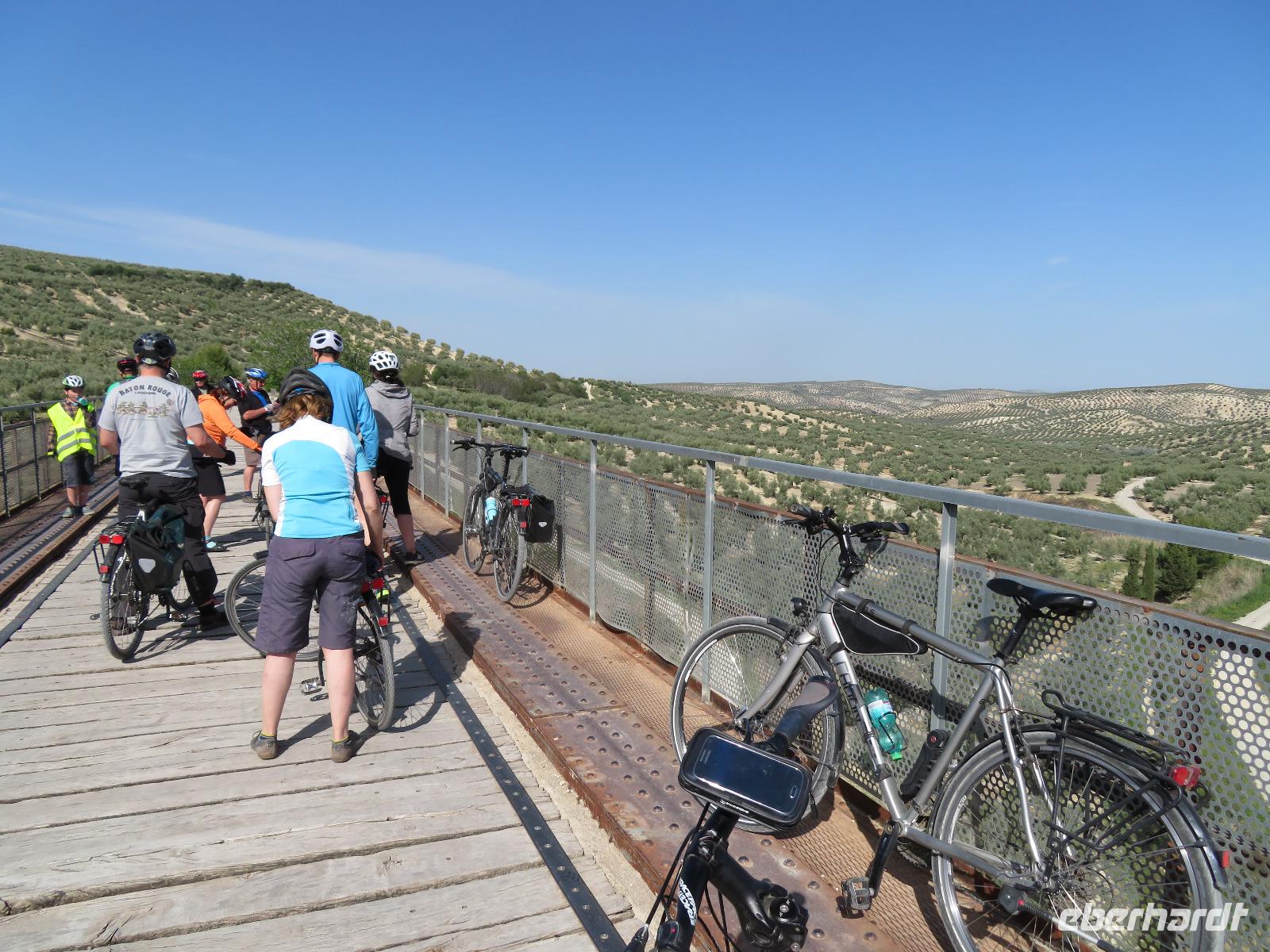 Heute ist Olivenöltag. Zum einen radeln wir auf der „Via verde del Aceite" und zum anderen besuchen wie am Nachmittag ein Familienunternehmen, welches sich um die Herstellung von Olivenöl kümmert. Die „Via verde del Aceite", ist die Strecke, welche die ehemaligen Olivenölzüge benutzt haben. Heutzutage sind sie super ausgebaut und das Radfahren ist hier daher ein Genuss. Insbesondere die weite Landschaft mit den unzähligen Olivenhainen und die alten Metallviadukte sind Höhepunkte auf der Tour. Heute ist wieder Picknick angesagt und so suchen wir uns ein nettes Plätzchen zum Verweilen. Zum zeitigen Nachmittag kommen wir direkt mit den Fahrrädern in unserem Hotel an und jeder hat nun Freizeit. Am späten Nachmittag fahren wir zu einem Familienunternehmen welches Olivenöl herstellt. Nach der Besichtigung erleben wir noch eine Verkostung, welche fast schon wissenschaftlich abläuft. Wir haben Glück und können das aktuell beste Olivenöl der Welt verkosten. Denn dieses Olivenöl wurde letztes Jahr als weltbestes Olivenöl in einer bestimmten Kategorie ausgezeichnet. Nach der Verkostung fahren wir in die benachbarte Ortschaft Luque um das Abendbrot einzunehmen.