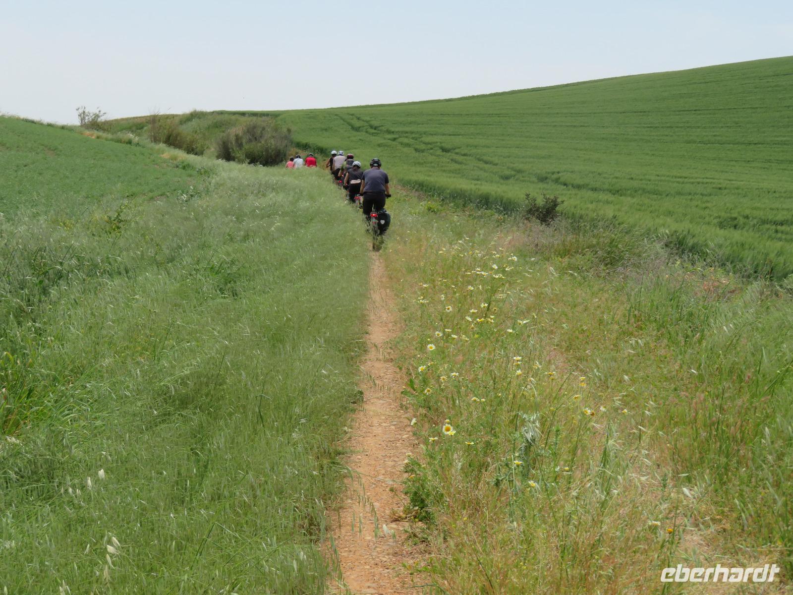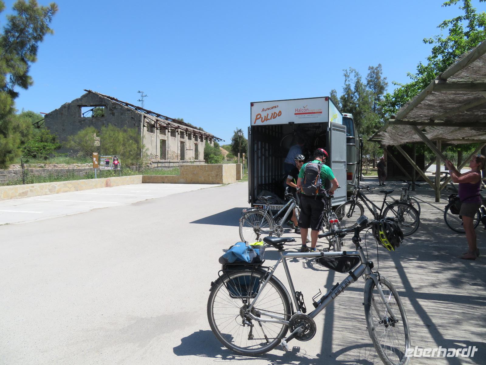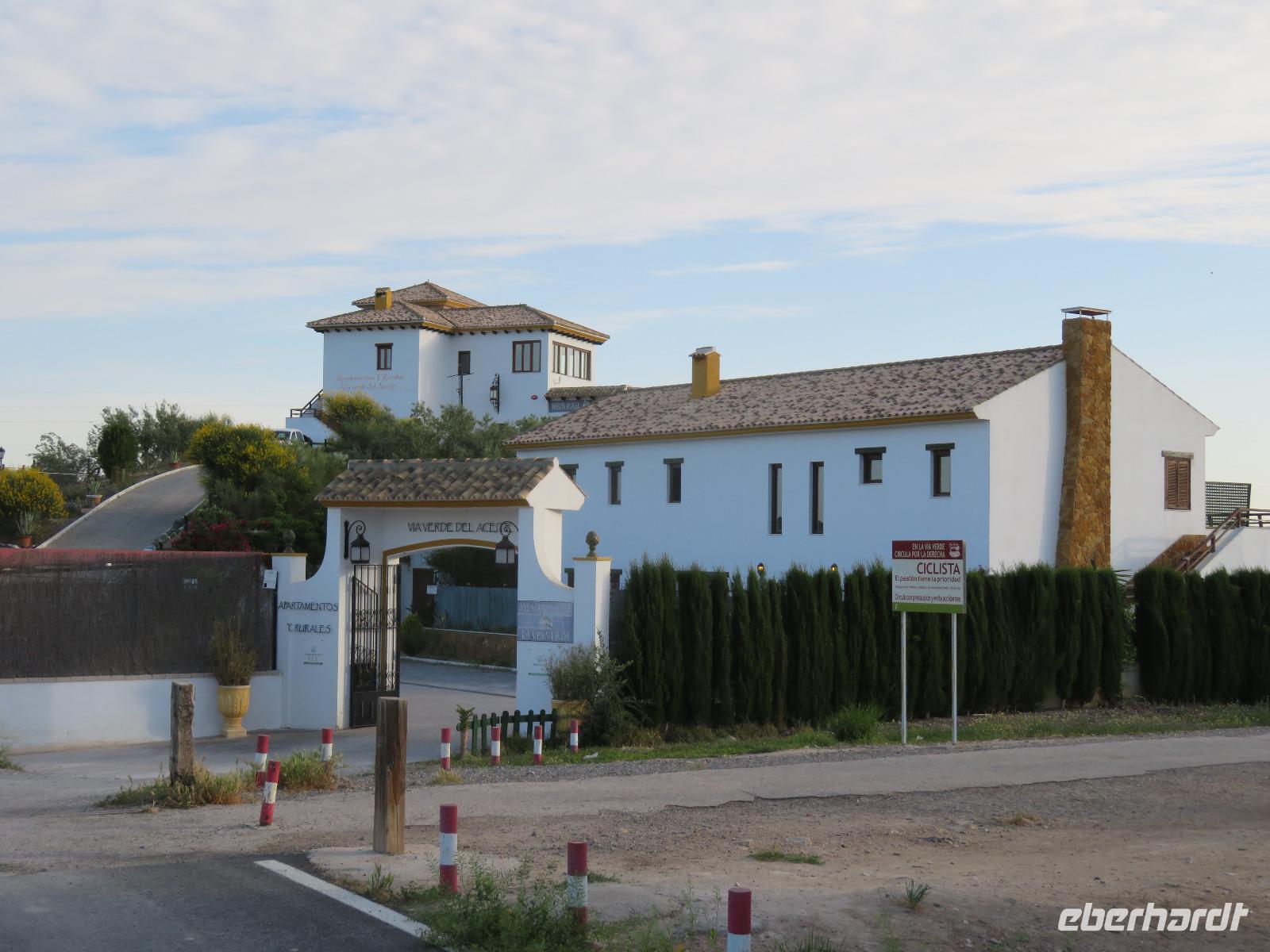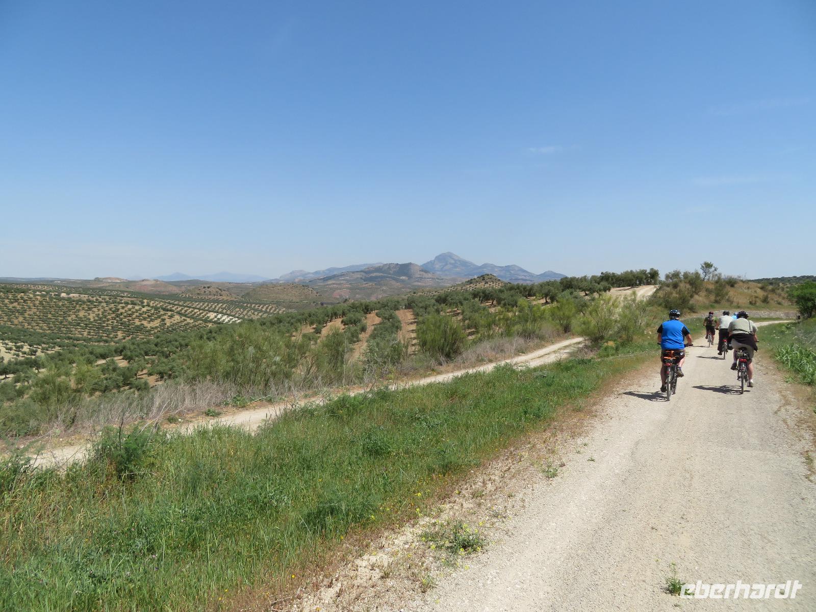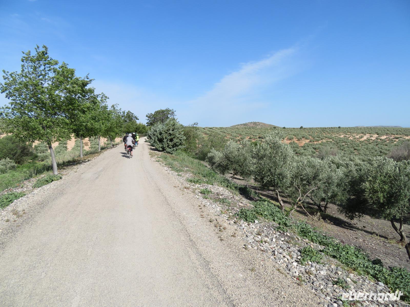 Gegen 13 Uhr geht es mit dem Koffer zum Bus und wenig später steigen wir nach einem Tag Pause wieder aufs Fahrrad. Die Strecke ist heute wieder mal ganz anders. Es geht über Landschaftswege quer übers Land. Die Strecke ist etwas holpriger als wir es gewohnt sind, landschaftlich gesehen aber wieder sehr schön. Zum Ende hin haben wir den zweiten und letzten Platten dieser Reise, welcher aber durch Vladimir erneut schnell behoben wurde. Nachdem die Räder im Anhänger verladen sind, geht es in Richtung Alcaudete. Hier beziehen wir ein kleines Hotel, welches wir fast für uns alleine haben.