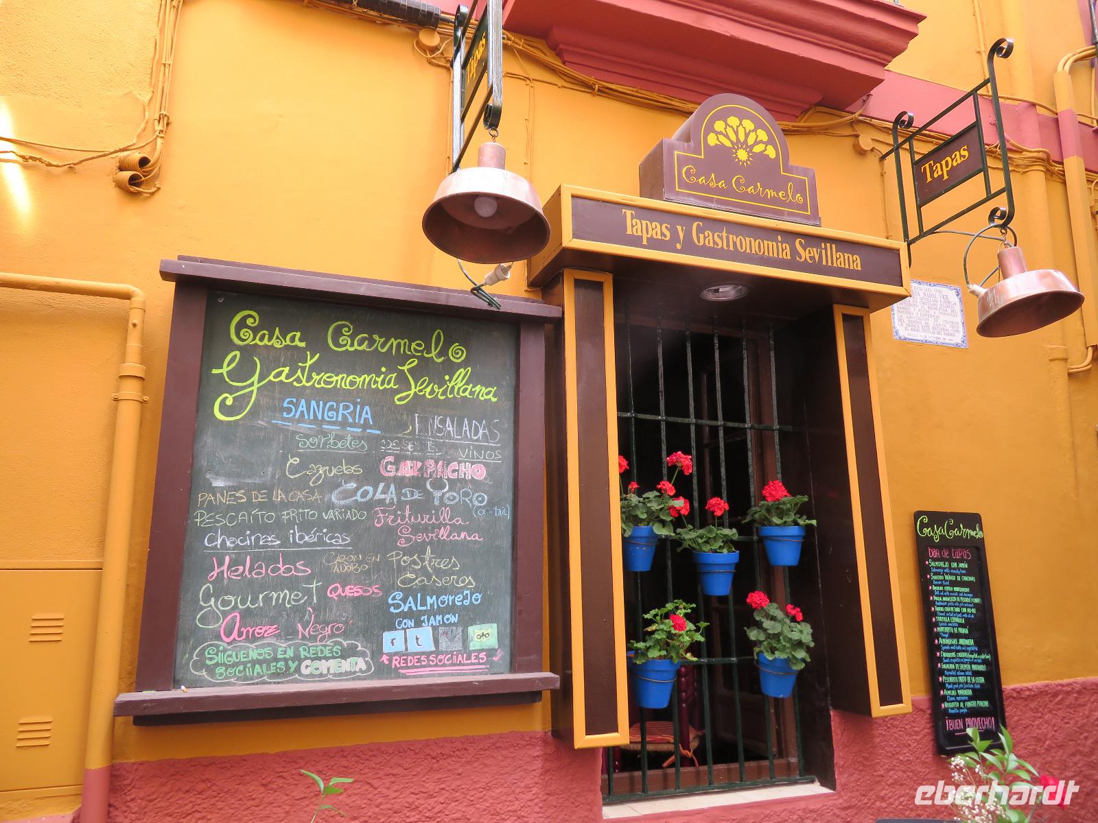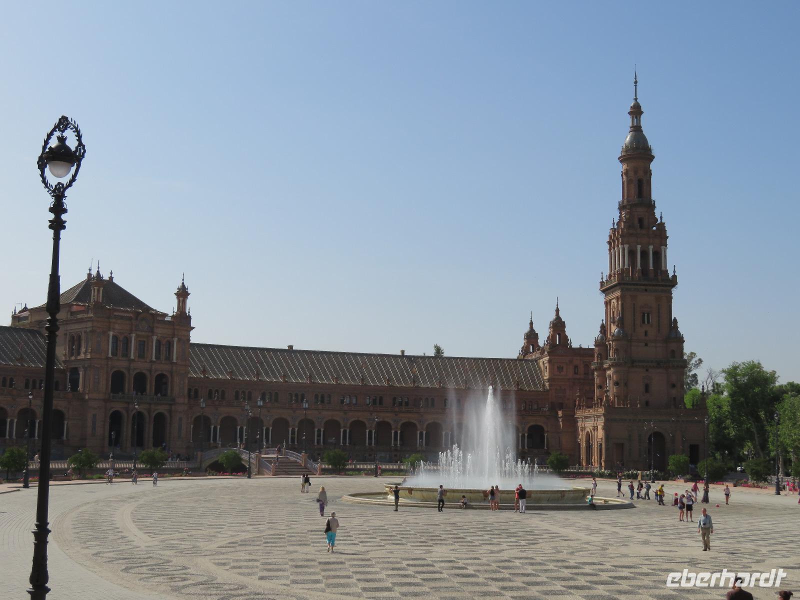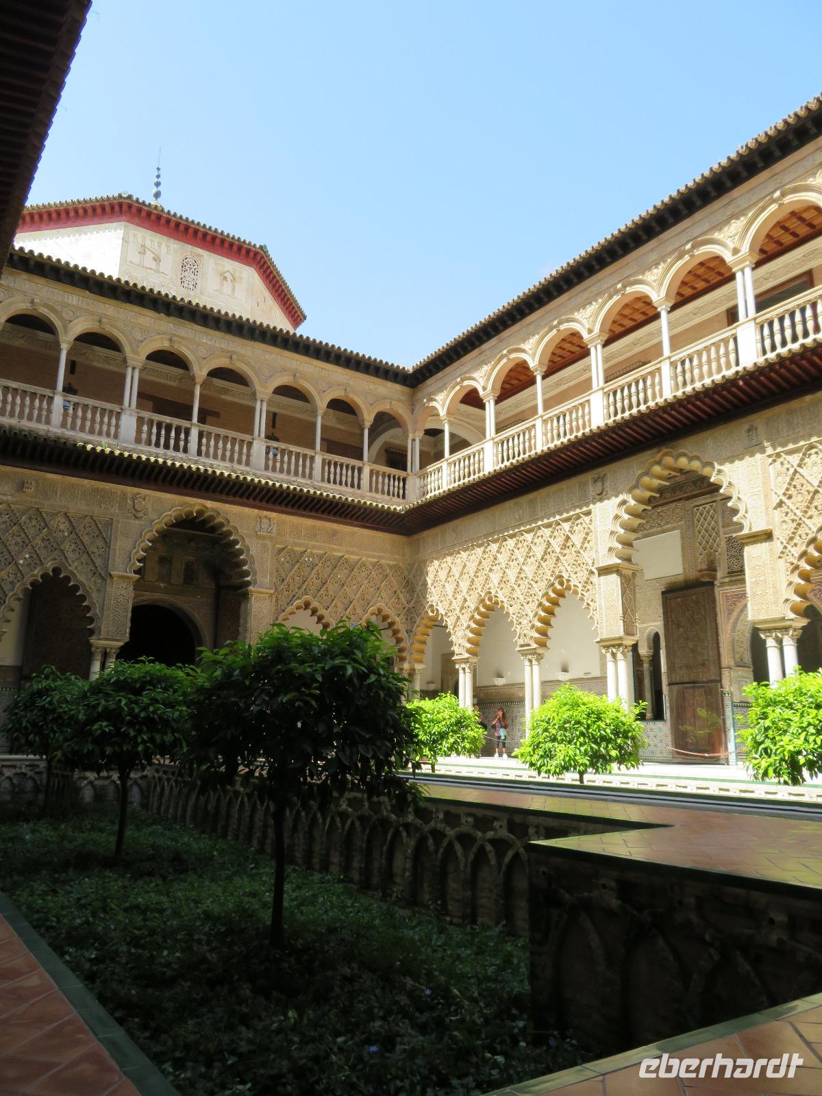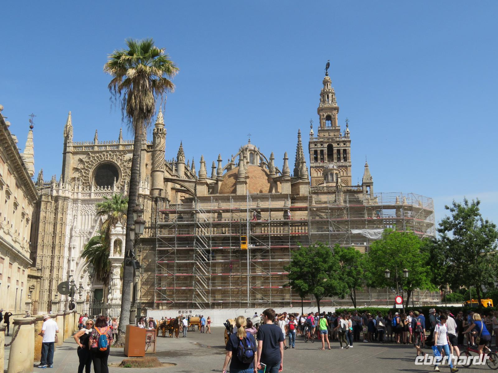 Heute blieben die Fahrradsachen im Koffer, denn es ging nach Sevilla. In Sevilla führte uns Carlos, unser örtlicher Reiseleiter durch die schicke Stadt. Zunächst starteten wir an der Plaza Espana, welche in unglaublichen 11 Jahren erbaut wurde. Anschließend bringt er uns mit musikalischem Charme die Stadt und den Palast Alcazar näher. Der mittelalterliche Königspalast ist beeindruckend und erinnert mich ein wenig an die Alhambra in Granada. Nach der Besichtigung hat jeder Freizeit und kann die vorgeschlagene Tapas Bar testen oder die Kathedrale Santa Maria de la Sede besuchen. Witzig sind hier die Straßenbahnen. An jeder Haltestelle fahren sie ihrer „Fühler" aus, um die Batterie aufzuladen. Daher können sie sich ohne Ober-oder Unterleitung fortbewegen. Nachdem wir die Stadt etwas näher kennen lernen durften, geht es mit dem Bus weiter nach Cordoba. Hier beziehen wir ein schickes, kleines Boutique Hotel, welches unmittelbar an der Mezquita und somit in der Innenstadt von Cordoba liegt. Gewöhnungsbedürftig, aber typisch für diese alten Gebäude, sind die Fenster zum Innenhof. Das Abendessen wird heute außerhalb eingenommen und so gewinnen wir automatisch schon ein paar Eindrücke von der Stadt. Beim Abendbrot geht es kurzzeitig Spanisch zu, da wir kein festes Menü haben und wir somit von der Karte uns etwas aussuchen dürfen. Nachdem aber alle bestellt haben, lassen wir uns unser Essen schmecken. Wie jeden Abend, steht irgendwo unsere Salmojero auf dem Tisch. Die ist aber auch lecker. Heute darf sie aber auch nicht fehlen, denn sie kommt ursprünglich aus Cordoba.