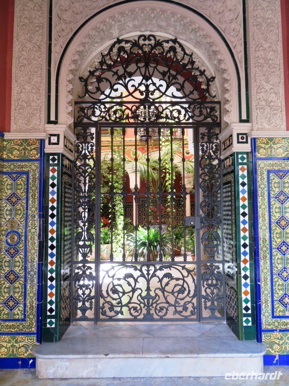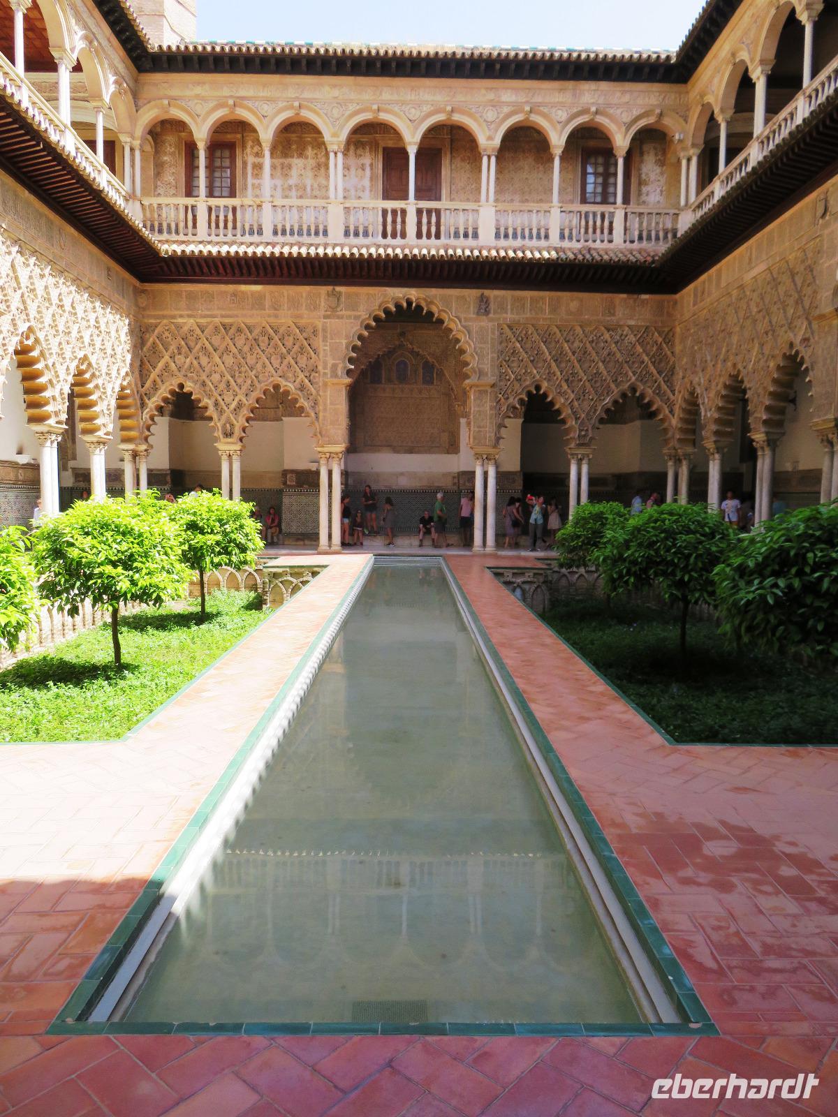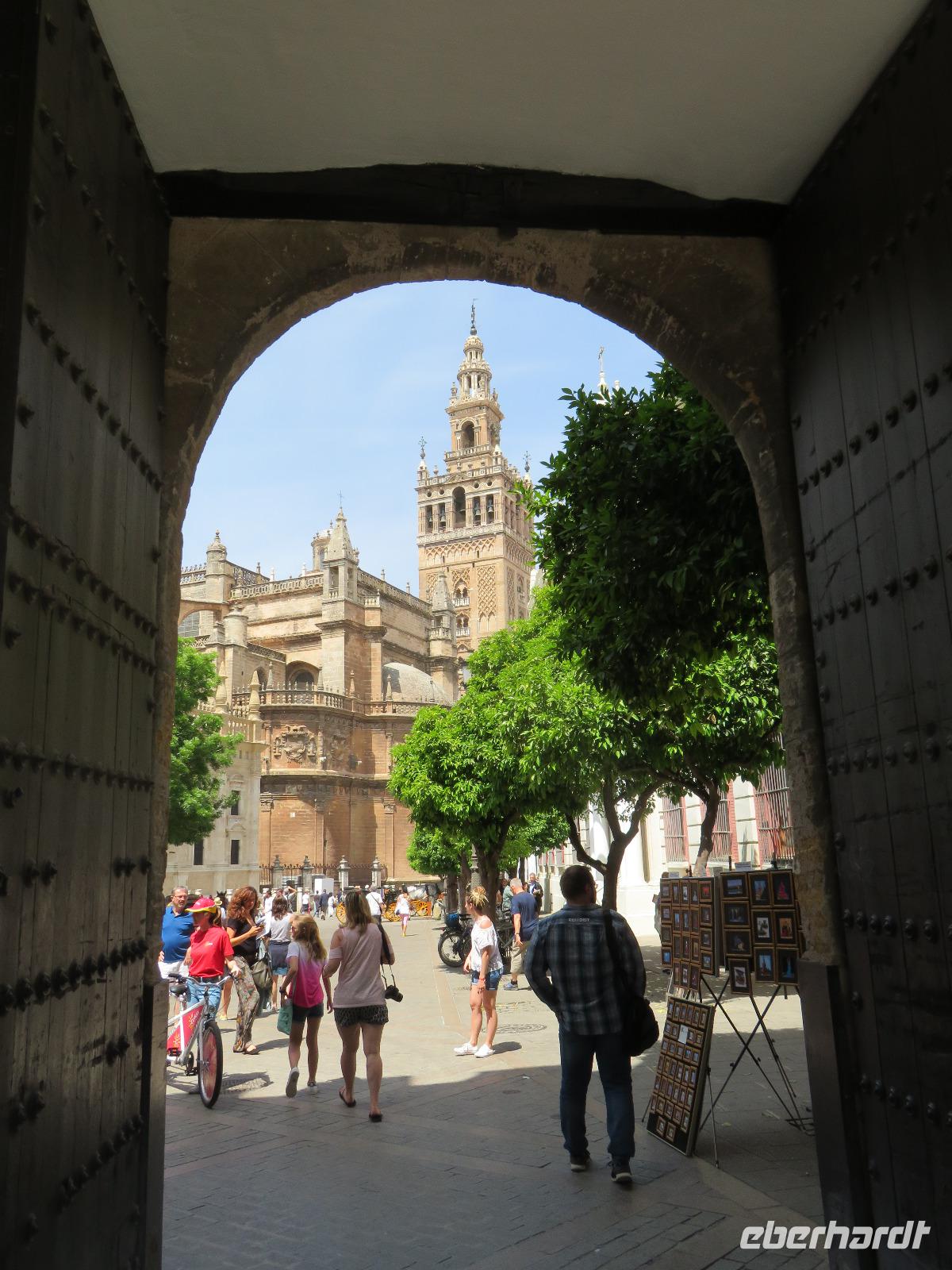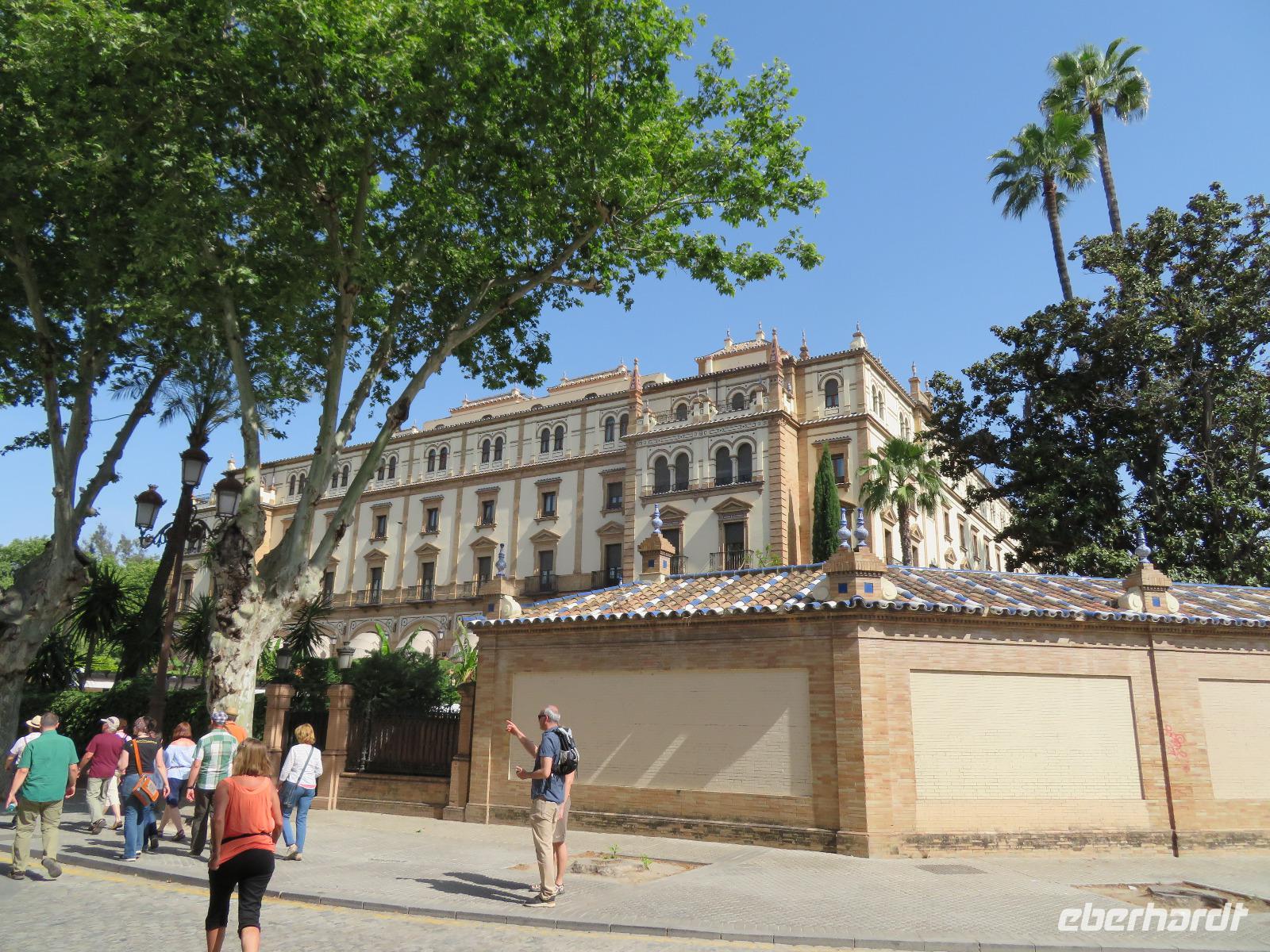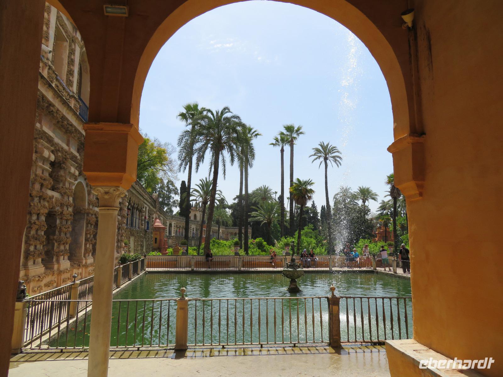 Heute blieben die Fahrradsachen im Koffer, denn es ging nach Sevilla. In Sevilla führte uns Carlos, unser örtlicher Reiseleiter durch die schicke Stadt. Zunächst starteten wir an der Plaza Espana, welche in unglaublichen 11 Jahren erbaut wurde. Anschließend bringt er uns mit musikalischem Charme die Stadt und den Palast Alcazar näher. Der mittelalterliche Königspalast ist beeindruckend und erinnert mich ein wenig an die Alhambra in Granada. Nach der Besichtigung hat jeder Freizeit und kann die vorgeschlagene Tapas Bar testen oder die Kathedrale Santa Maria de la Sede besuchen. Witzig sind hier die Straßenbahnen. An jeder Haltestelle fahren sie ihrer „Fühler" aus, um die Batterie aufzuladen. Daher können sie sich ohne Ober-oder Unterleitung fortbewegen. Nachdem wir die Stadt etwas näher kennen lernen durften, geht es mit dem Bus weiter nach Cordoba. Hier beziehen wir ein schickes, kleines Boutique Hotel, welches unmittelbar an der Mezquita und somit in der Innenstadt von Cordoba liegt. Gewöhnungsbedürftig, aber typisch für diese alten Gebäude, sind die Fenster zum Innenhof. Das Abendessen wird heute außerhalb eingenommen und so gewinnen wir automatisch schon ein paar Eindrücke von der Stadt. Beim Abendbrot geht es kurzzeitig Spanisch zu, da wir kein festes Menü haben und wir somit von der Karte uns etwas aussuchen dürfen. Nachdem aber alle bestellt haben, lassen wir uns unser Essen schmecken. Wie jeden Abend, steht irgendwo unsere Salmojero auf dem Tisch. Die ist aber auch lecker. Heute darf sie aber auch nicht fehlen, denn sie kommt ursprünglich aus Cordoba.