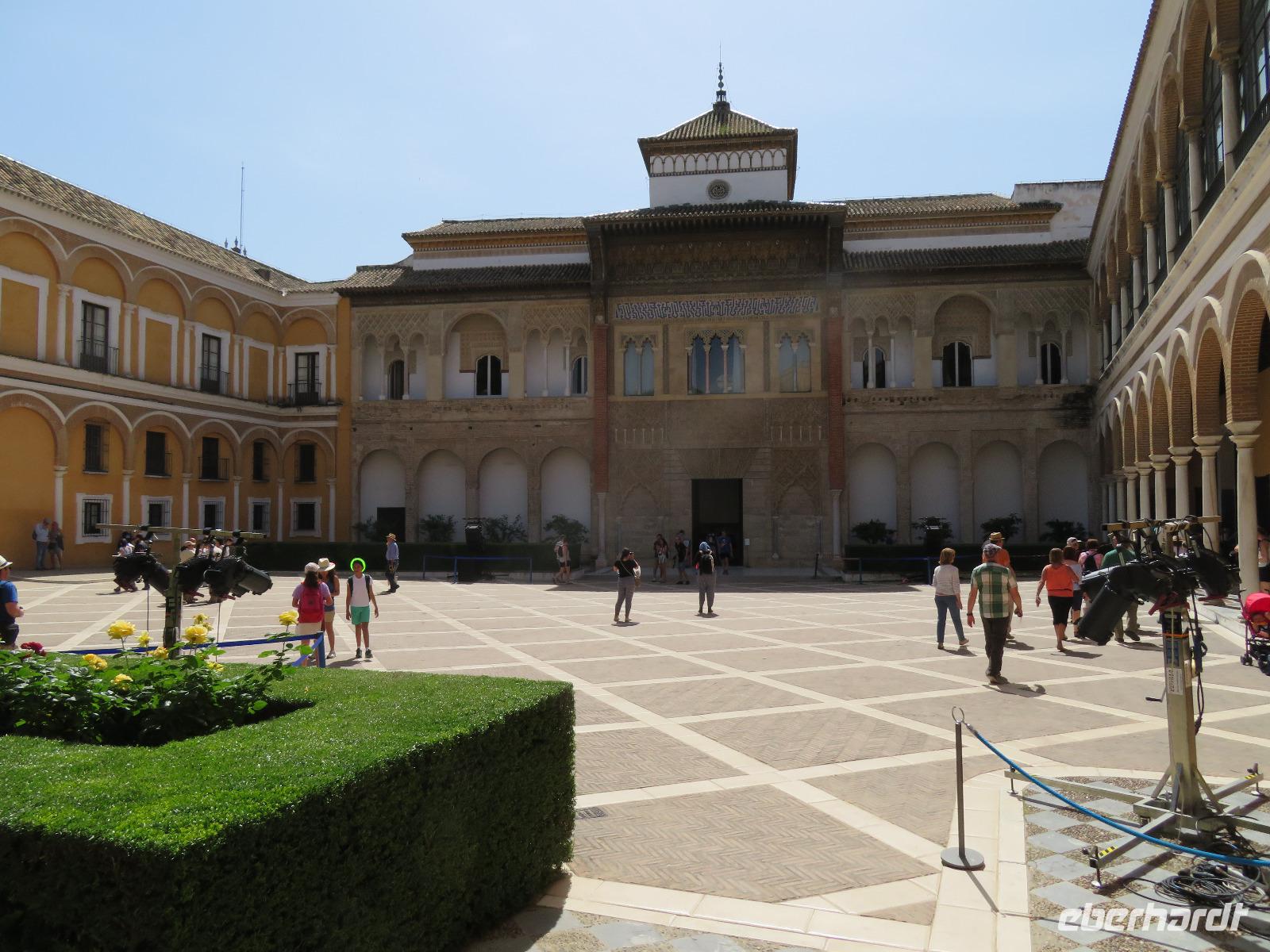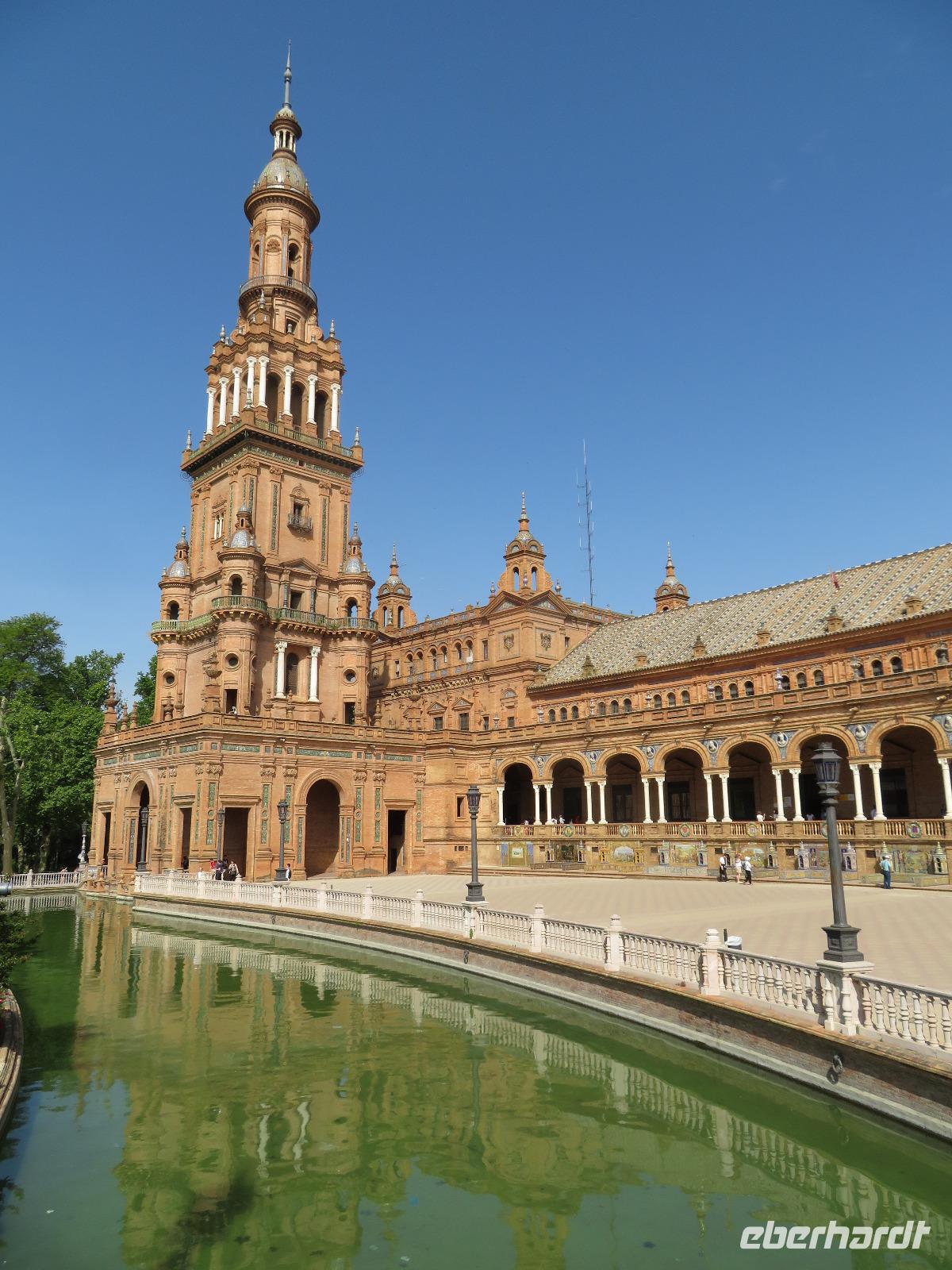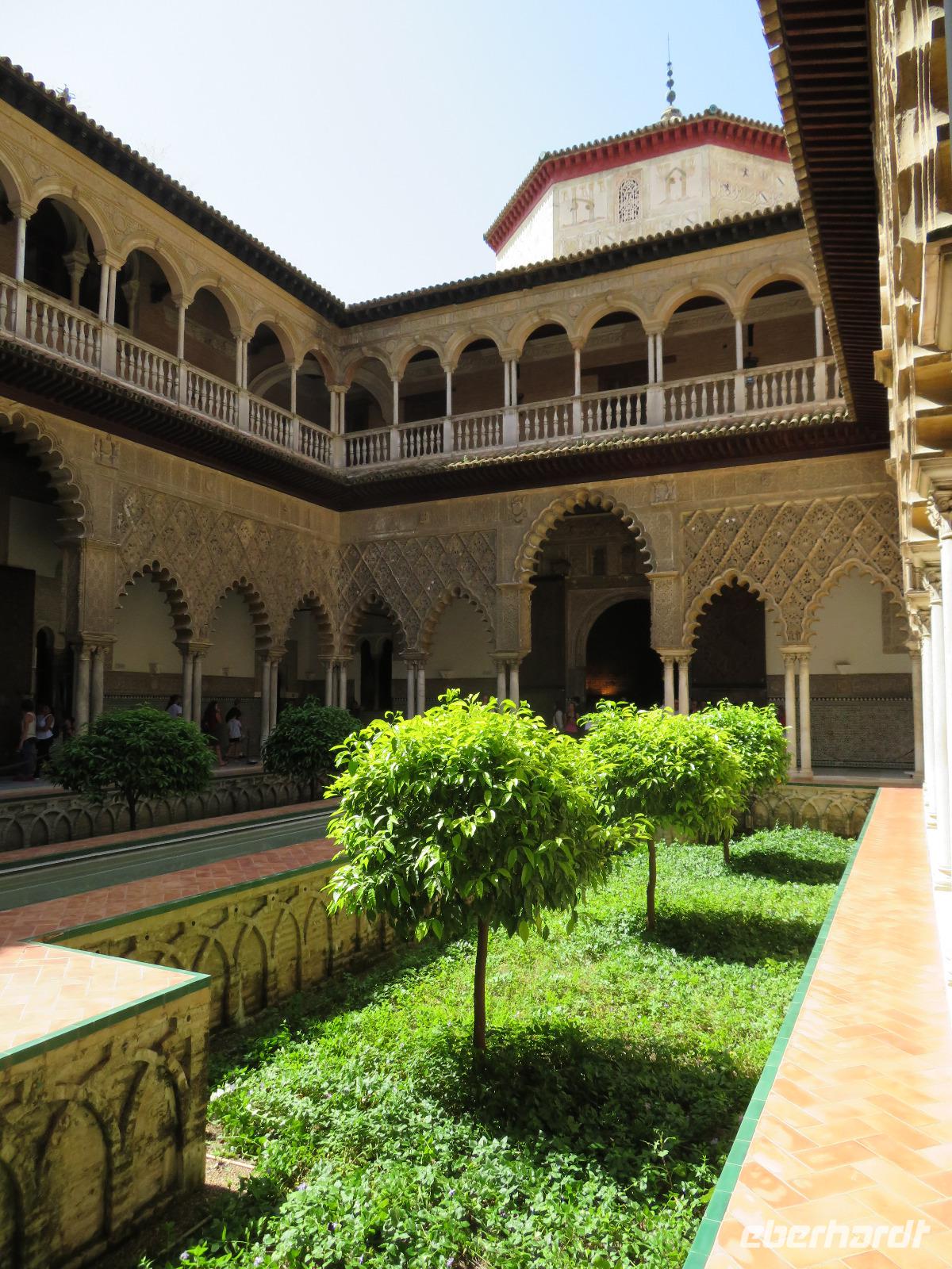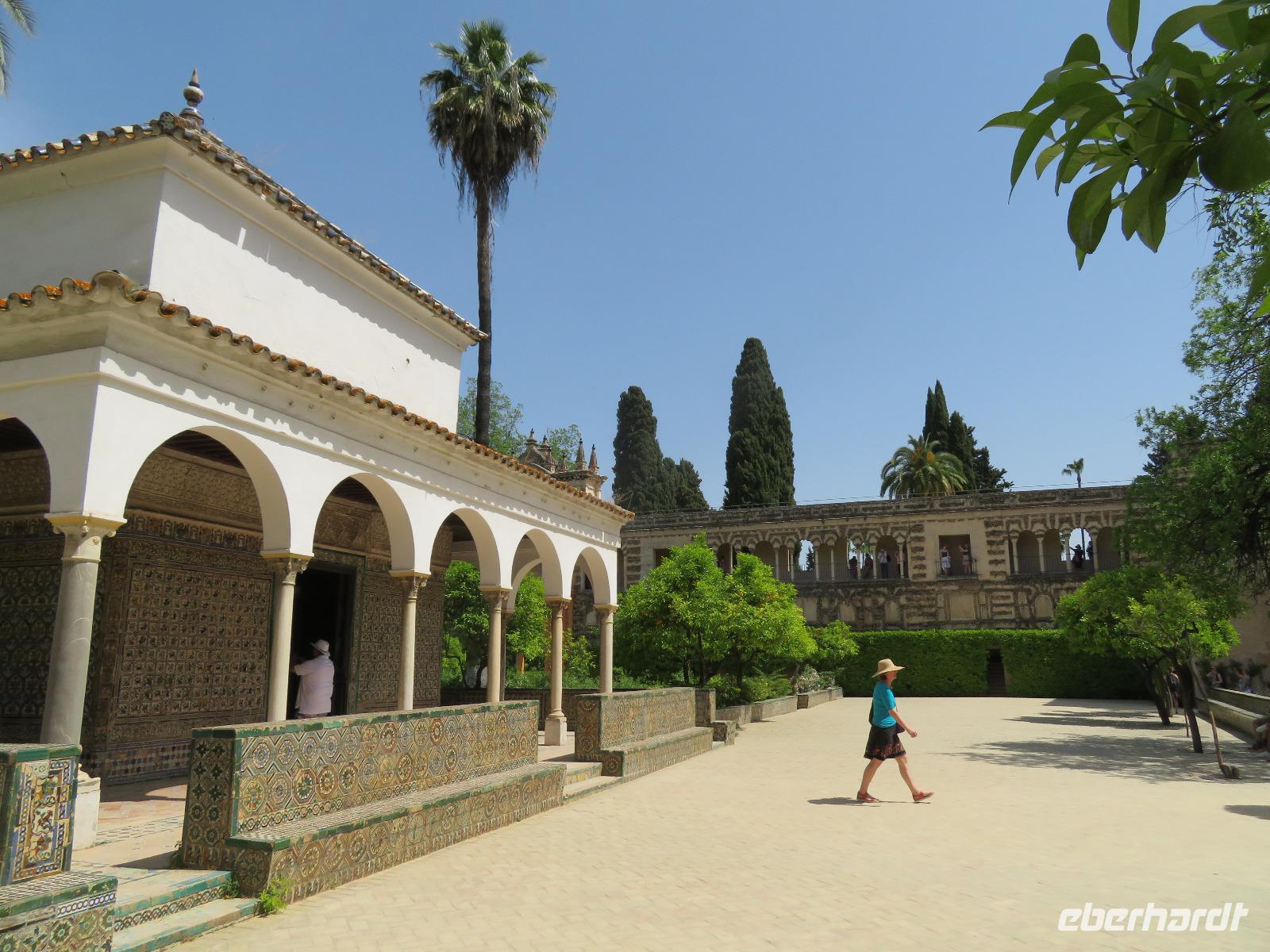 Heute blieben die Fahrradsachen im Koffer, denn es ging nach Sevilla. In Sevilla führte uns Carlos, unser örtlicher Reiseleiter durch die schicke Stadt. Zunächst starteten wir an der Plaza Espana, welche in unglaublichen 11 Jahren erbaut wurde. Anschließend bringt er uns mit musikalischem Charme die Stadt und den Palast Alcazar näher. Der mittelalterliche Königspalast ist beeindruckend und erinnert mich ein wenig an die Alhambra in Granada. Nach der Besichtigung hat jeder Freizeit und kann die vorgeschlagene Tapas Bar testen oder die Kathedrale Santa Maria de la Sede besuchen. Witzig sind hier die Straßenbahnen. An jeder Haltestelle fahren sie ihrer „Fühler" aus, um die Batterie aufzuladen. Daher können sie sich ohne Ober-oder Unterleitung fortbewegen. Nachdem wir die Stadt etwas näher kennen lernen durften, geht es mit dem Bus weiter nach Cordoba. Hier beziehen wir ein schickes, kleines Boutique Hotel, welches unmittelbar an der Mezquita und somit in der Innenstadt von Cordoba liegt. Gewöhnungsbedürftig, aber typisch für diese alten Gebäude, sind die Fenster zum Innenhof. Das Abendessen wird heute außerhalb eingenommen und so gewinnen wir automatisch schon ein paar Eindrücke von der Stadt. Beim Abendbrot geht es kurzzeitig Spanisch zu, da wir kein festes Menü haben und wir somit von der Karte uns etwas aussuchen dürfen. Nachdem aber alle bestellt haben, lassen wir uns unser Essen schmecken. Wie jeden Abend, steht irgendwo unsere Salmojero auf dem Tisch. Die ist aber auch lecker. Heute darf sie aber auch nicht fehlen, denn sie kommt ursprünglich aus Cordoba.