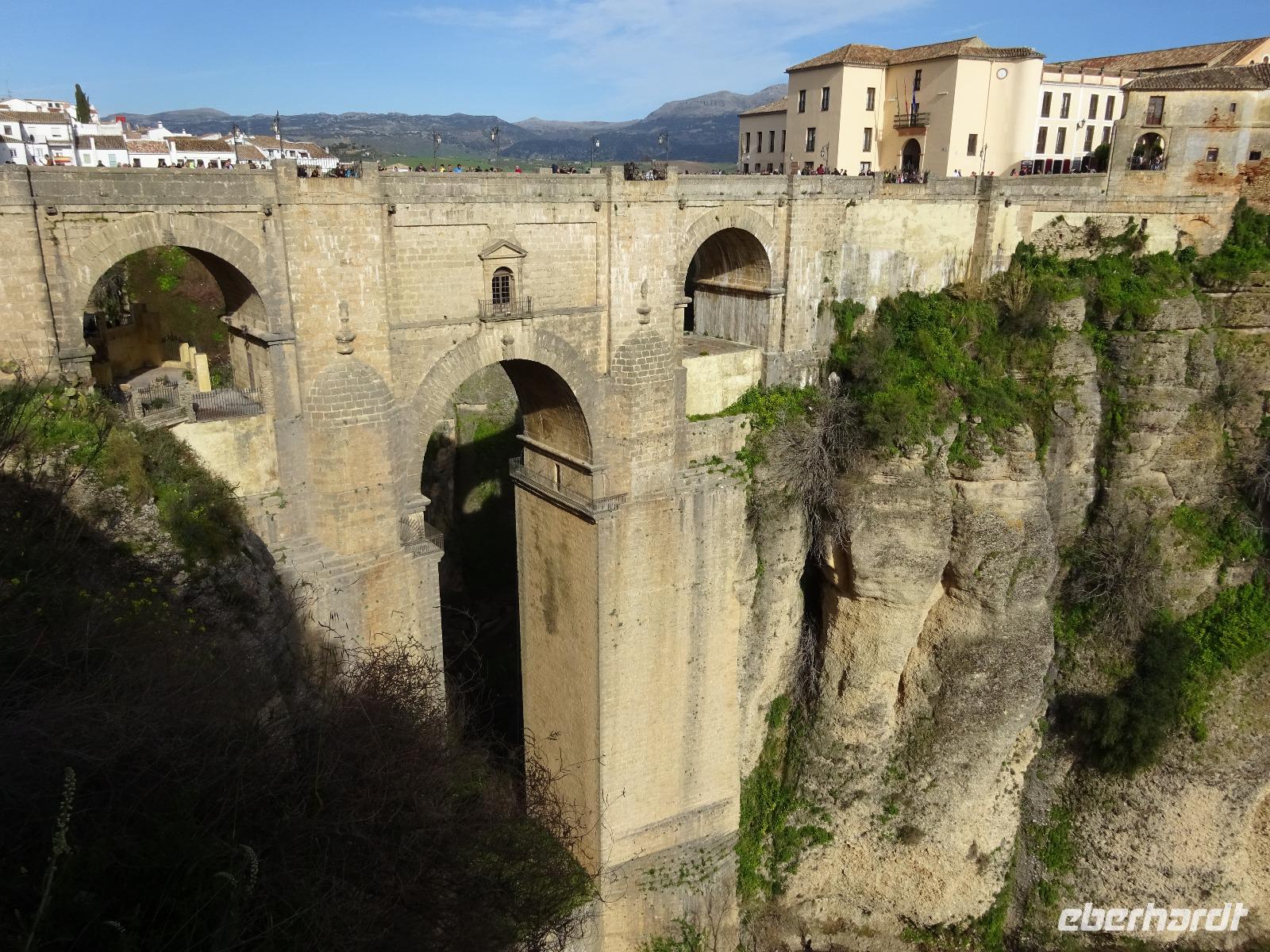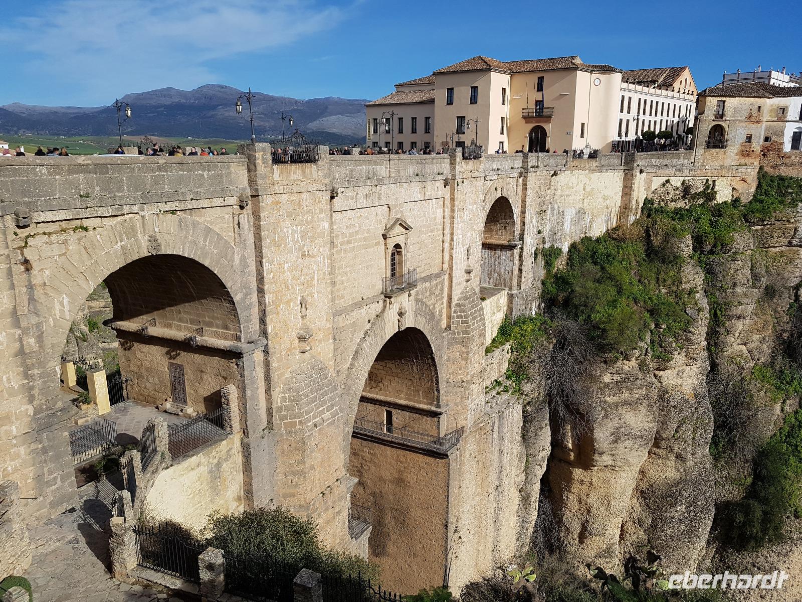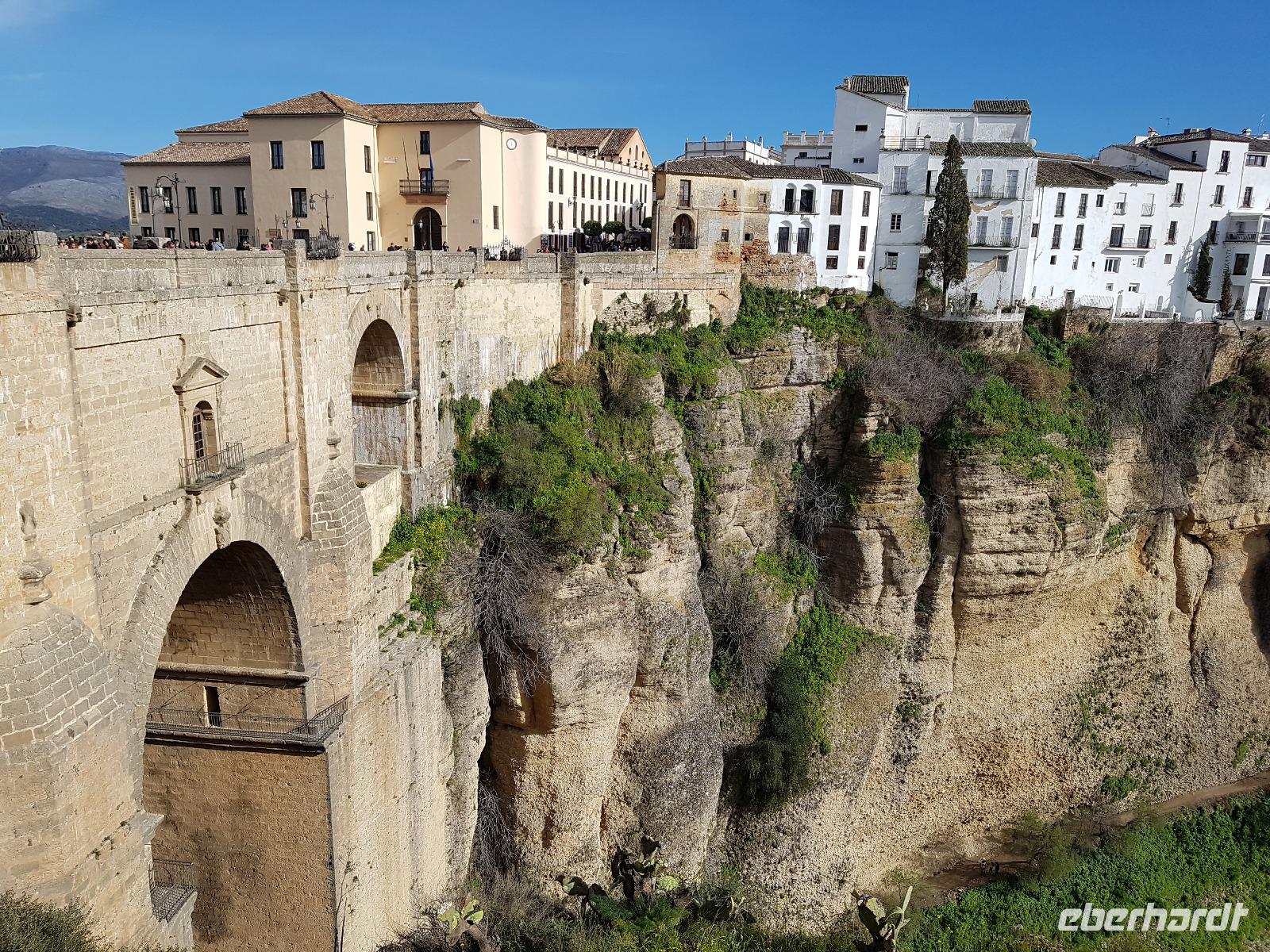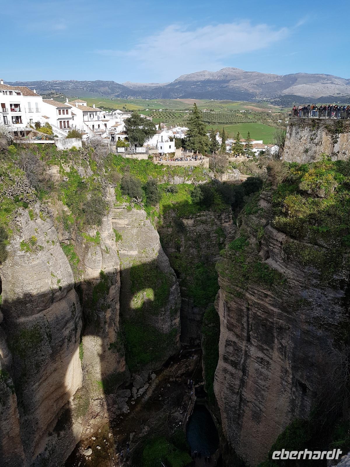 Die kleine Freizeit wurde heute nicht für einen Sprung in den kalten Pool genutzt, sondern eher um eine warme Dusche zu genießen und uns chic zu machen, da die wunderschöne Ronda auf uns wartete. Gemeinsam mit Granada und Sevilla, ist sie ein sehr beliebter Tagesausflug ab Malaga. Dort wartete Daniel,unser örtlicher Guide, schon auf uns. Er brachte uns die alte Stadt Ronda näher und erklärte uns auch viel über den Stierkampf, der in dieser Region einen besonderen Status hat. Wir spazieren gemeinsam über die Brücke mit atemberaubenden Blick auf die Schlucht und den Fluss. Daniel hat es sehr gut gemacht und wir bedankten uns bei ihm, bevor wir im Restaurant Alacena speisten. Wie es in Spanien typisch ist, ließen wir uns die Tapas und den dazugehörigen Rotwein sehr gut schmecken. Lecker. Auf der Rückfahrt im Bus mit Vollmond heute wurde gesungen und wir waren ganz zufrieden mit diesem zweiten tollen Tag.