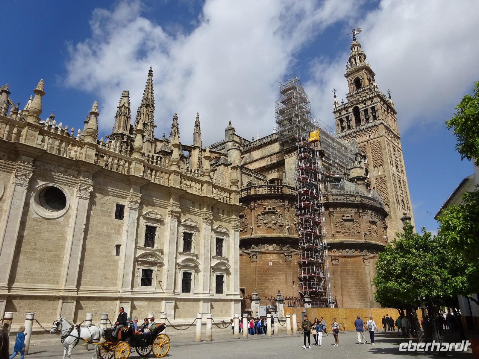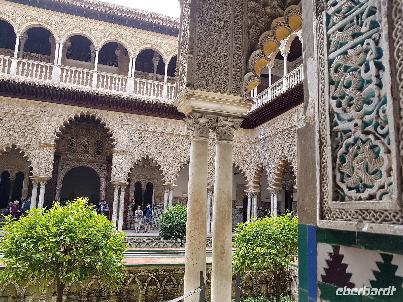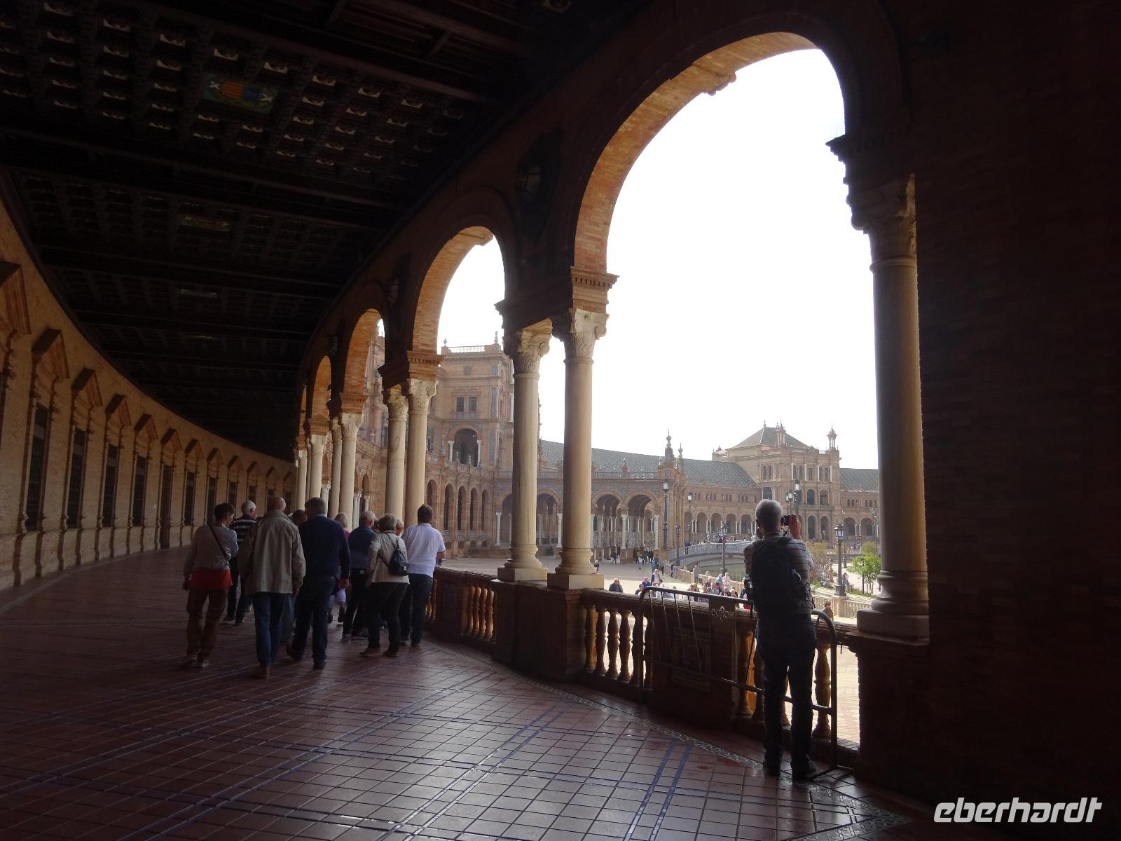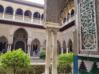 Heute geht es nach Sevilla - ohne Fahrräder. Die Fahrradsachen blieben im Koffer. Unsere örtliche Reiseleiterin Diana wartete schon auf uns auf dem Plaza de Espana, und führte uns sehr gut durch die alte, hünsche Stadt. Wir starteten zunächst am unglaublich schönen Plaza Espana. Hier wurden Filme wie Star Wars gedreht. Anschließend besuchten wir die Altstadt mit ihren kleinen Gassen und die Festung und den Palast Alcazar. Dieser mittelalterliche Königspalast ist richtig beeindruckend und erinnert uns von drinnen an die Alhambra in Granada. Nach der Besichtigung der Kathedrale Santa Maria de la Sede, hatten wir Freizeit, um die vorgeschlagene Tapas wieder zu testen. Um 16 Uhr trafen wir uns wieder und Benjamin brachte uns bis zum Torre del Oro, wo das Gold aus dem neu entdeckten Amerika gelagert wurde. Weiter ging es mit dem Bus nach Cordoba. Unser chickes Hotel, Posada de Vallina, liegt sehr gut in der Innenstadt, genau hinter derMezquita. Wir trafen uns um 19.30 Uhr, um gemeinsam am Fluss Guadalquivir bei der Taberna del Rio das Abendessen als Tapas zu genießen. Wir verkosteten die typische Salmojero oder Aubergine mit Honig und Ziegenkäse. Lecker. 6 Gäste wollten noch Flamenco hören und gingen zu einer Show, die um 22 Uhr stattfand, nicht weit vom Hotel.