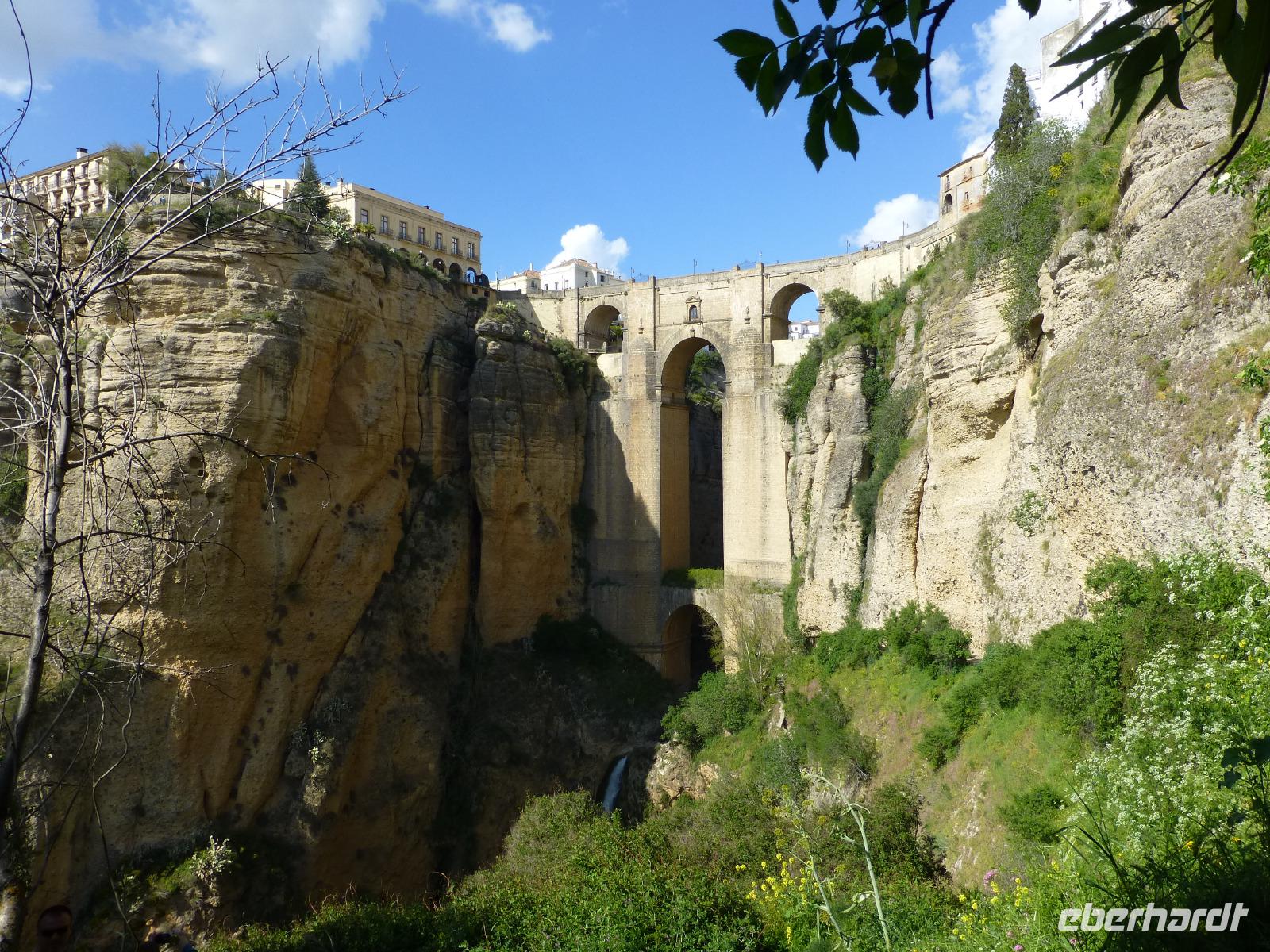 Nach dem Frühstück fahren wir Richtung Grazalema. Kurz vor dem Ort treffen wir unsere Wanderführerin Sue, sie stammt aus England, lebt aber schon lange in Spanien. Unsere Wanderung führt uns über blühende Wiesen, entlang eines Baches der mit zahlreichen Blümchen bedeckt ist. Sue kennt sehr viele Pflanzen, sie zeigt uns zahlreiche wilde Orchideen. Der Weg führt und weiter durch einen Korkeichenwald und Sue erklärt uns ausführlich was es mit diesen Bäumen und der begehrten Rinde auf sich hat. Erstmals nach 25 Jahren werden die Korkeichen alle 9 Jahre geschält. Den Bäumen macht das nichts aus, denn der Kork ist nur die äußere Schutzhülle der Bäume. Unser Mittag machen wir unter Bäumen, Sue hat für jeden ein Lunchpaket mitgebracht, dazu noch Oliven, Käse, Wurst und ein süßes Brot zum Probieren. Wir genießen es. Nach dem Ende der Wanderung fahren wir noch kurz nach Grazalema, genießen eine Kaffee und verabschieden uns von Sue. Nach einem kurzen Zwischenstopp im Hotel fahren wir nach Ronda zur Stadtbesichtigung. Am Busbahnhof treffen wir unseren Stadtführer Daniel. Mit ihm erkunden wir die schmucke Kleinstadt Ronda. Getrennt durch eine Schlucht gibt es eine Alt- und Neustadt, die imposante Brücke, welche beide Stadtteile verbindet, ist sicher das bekannteste Bild der Stadt. Ronda ist auch bekannt für den Stierkampf und heute wird nach den in Ronda festgelegten Regeln Stierkampf betrieben.