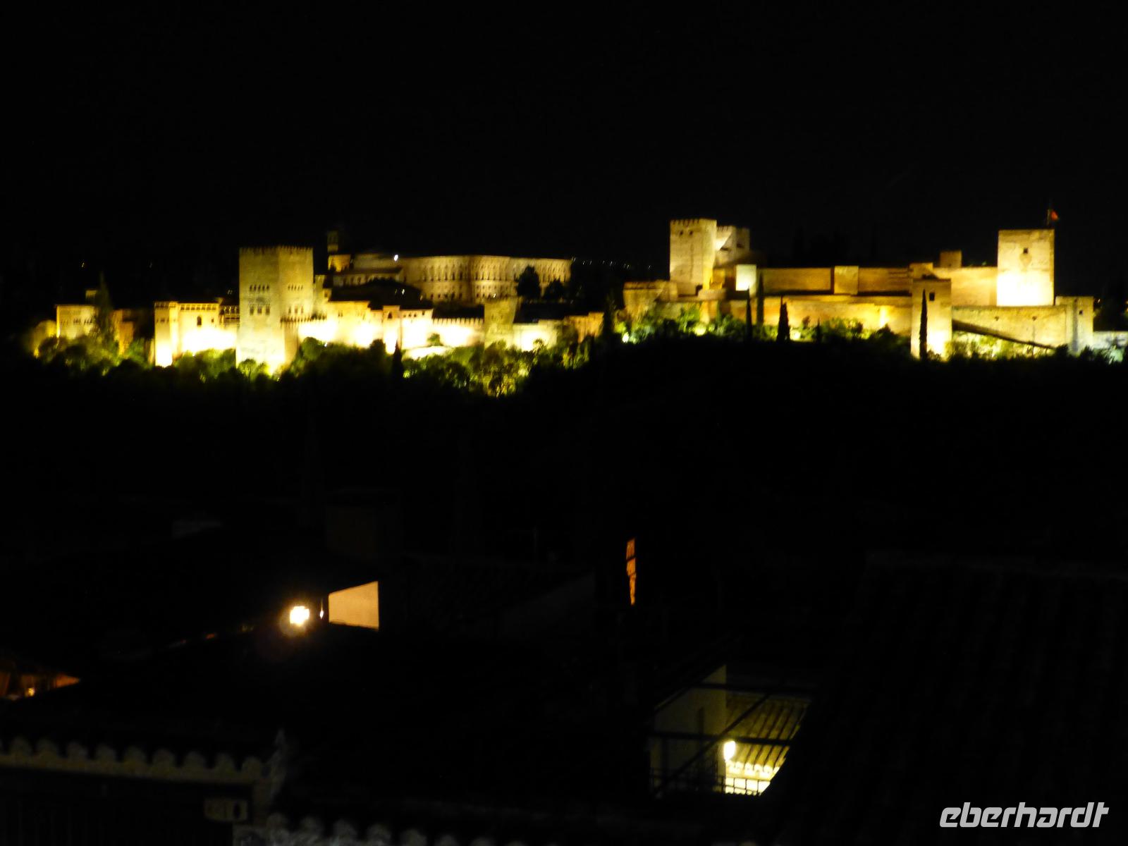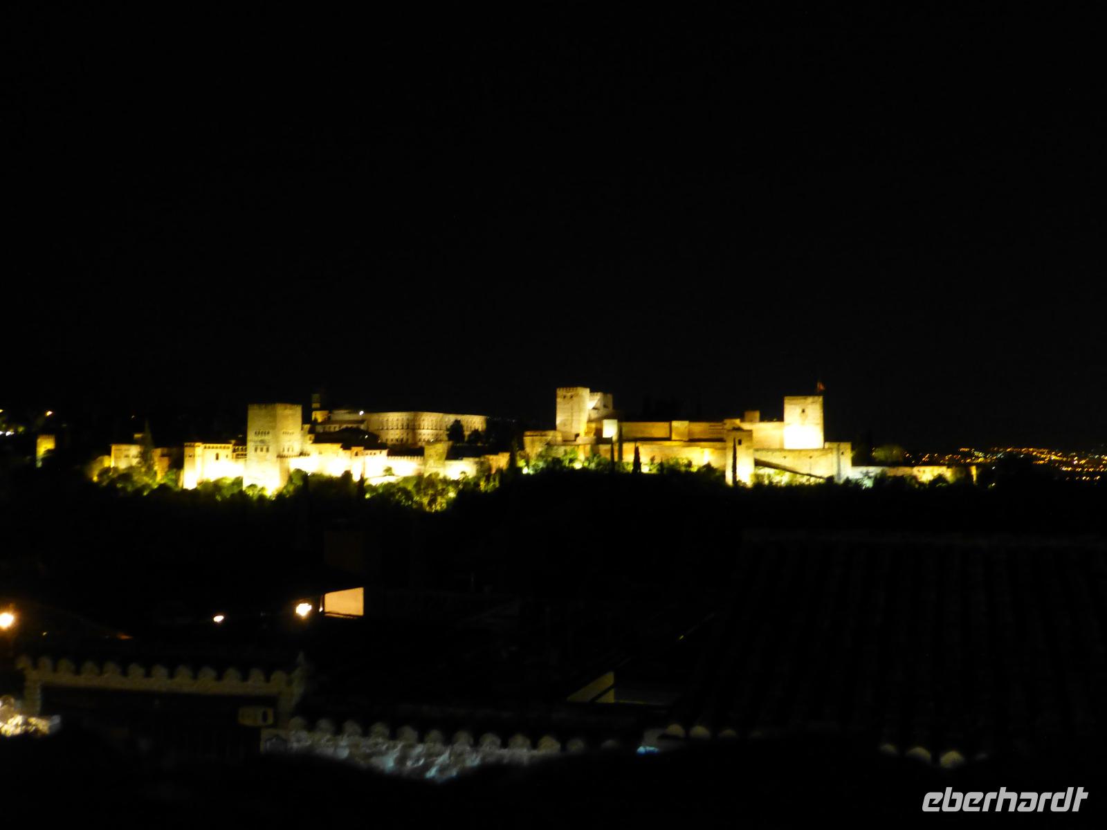Heute ist wieder Feiertag in Spanien. Heute am 02.05. feiern wir den 01.05., denn zwei Feiertage an einem Tag das geht nicht. Wir verlassen nach dem Frühstück die Gegend von Grazalema. Nach 1,5 h fahrt erreichen wir den Nationalpark El Torcal. Es handelt sich um ein Kalksteingebiet, welches durch die natürliche Verwitterung teilweise bizarre Felsformationen hervorgebracht hat. Ein ähnliches Gebiet gibt es auch in Irland, den Burren. Manchmal sieht es auch wie in der Sächsischen Schweiz, was auch nicht verkehrt ist, denn die Verwitterung sieht ähnlich aus, nur das Gestein ist ein anderes. Nach zwei Stunden sind wir schon fertig mit unserer Tour. Am Nachmittag besuchen wir das nahe Antequera, bummeln von oben nach unten durch die Stadt, genießen Tapas, Kaffee, Bier und Eis. Zum Ende des Weges können wir sogar noch ungehindert einen Blick in die Stierkampfarena des Ortes nehmen. Unsere Fahrt geht weiter nach Granada. In der Stadt, vielleicht eine der schönsten von Spanien, herrscht ausgelassene Feiertagsstimmung. Vor allem die schicken traditionellen Kleider der Frauen begeistern uns immer wieder. Wir wohnen im Hotel Carmen, direkt im Stadtzentrum. Nach dem Abendessen begeben wir uns pralle Leben, fahren mit einem Kleinbus zum Mirador de San Nicolás und haben dort einen tollen Blick auf die beleuchtete Alhambra und die Stadt unter uns.