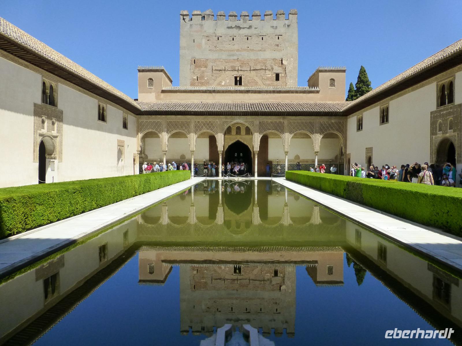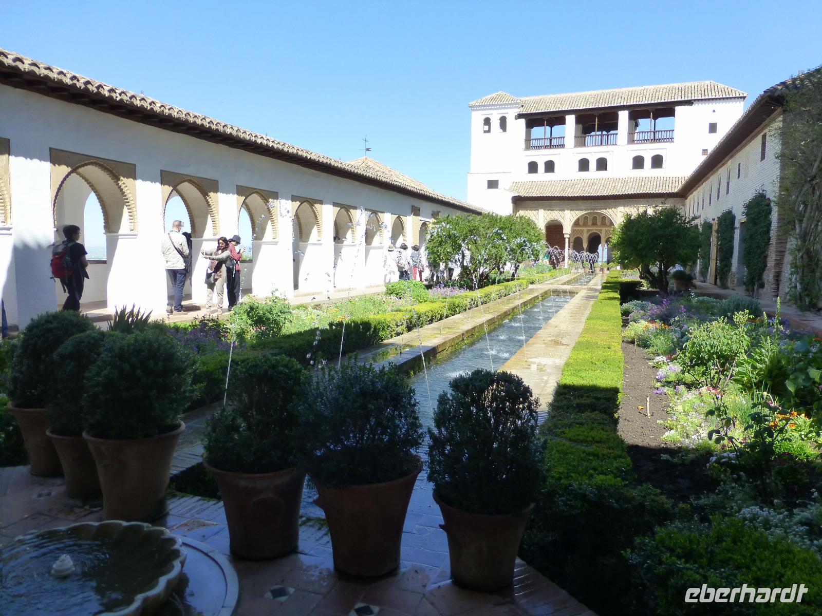 Nach dem Frühstück werden wir im Hotel von unserm Stadtführer Alfonso abgeholt. Gemeinsam spazieren wir durch die Gassen von Granada, sehen u.a. das letzte maurische Gebäude in der Innenstadt, eine alte Krarwanserei. Durch enge Gassen, welche einem arabischen Suk ähneln kommen wir zur „Capilla Real", der Grabeskirche von Königin Isabella und König Ferdinand. Neben den Gräbern ist vor allem der Altar mit seinen lebendigen Darstellungen beeindruckend. Mit einem Kleinbus fahren wir hinauf zur Alhambra. Wir besuchen zuerst die Gärten, welche zurzeit üppig blühen. Dann sehen wir die Palastgebäude, welche mit einer von einer überwältigenden leichten Architektur sind. Es ist beeindruckend. Nach der Besichtigung bleibt Zeit für ein Mittagessen in der Stadt und das eine oder andere Souvenir findet auch den Weg zu den Gästen. Am Nachmittag fahren wir weiter in die Bergwelt der Sierra Nevada. Wir wohnen die nächsten Tage in Capileira, welches zum Landschaftsgebiet Alpujarra gehört. Unser Hotel „Finca Los Llanos" liegt auf 1500 m Höhe. Und zum Abendessen genießen wir die gute Küche des Hotels.