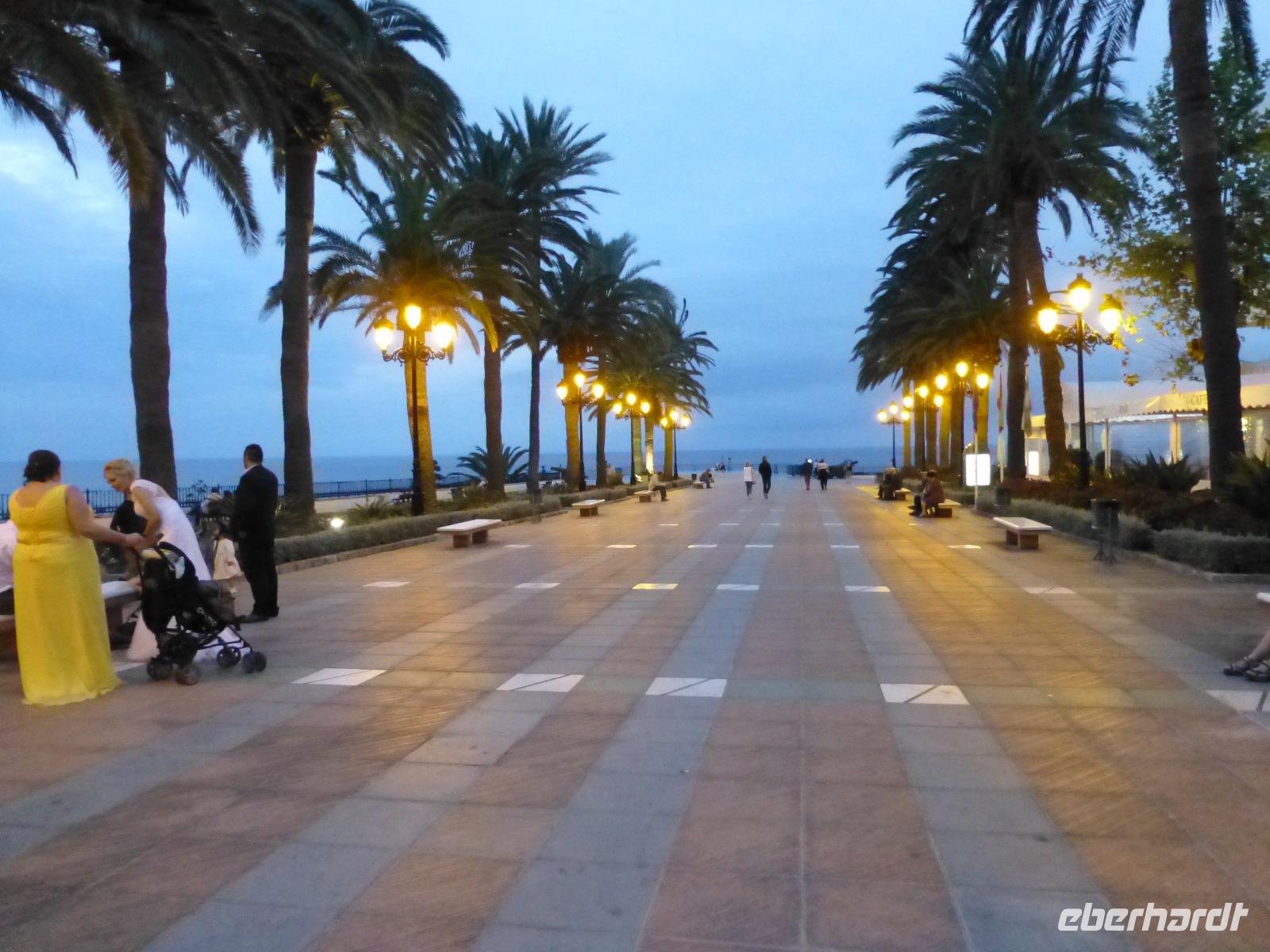 Heute heißt vom Gebirge Abschied zu nehmen. Wir fahren hinunter an die Küste des Mittelmeeres. Bei Almuñecar treffen wir unsere Wanderführerin Elisa und Francisco. Beide begeben sich mit uns auf eine schöne Küstenwanderung. Wir sehen zutrauliche Steinböcke, zahlreiche Pflanzen und alte Signaltürme welche früher dem Küstenschutz dienten. Am Cantarrijal - Strand endete unsere Wanderung und wir nutzten eines der Restaurants für eine Erfrischung. Unser Bus wartete an der Hauptstraße und so hieß es nochmal 20 Minuten bergan zu laufen. Nur wenige Minuten entfernt befindet sich die Tropfsteinhöhle von Nerja, welche eine der größten Europas gehört. Entdeckt wurde sie durch Zufall 1959. Staunend über die Größe laufen wir durch die Höhle, wissend dass es nur ein Drittel des gesamten Systems ist. Anschließend fahren wir zu unserem Hotel Perla Marina, welches direkt am Meer liegt. So bleibt am Nachmittag Zeit zum Baden oder spazieren gehen. Nach dem Abendessen spazieren wir noch gemeinsam zum „Balcon de Europa", stoßen noch einmal auf die schöne Reise an und genießen das Flair. Das Feuerwerk einer Hochzeit beschließt, wenn man so will, unsere Reise.