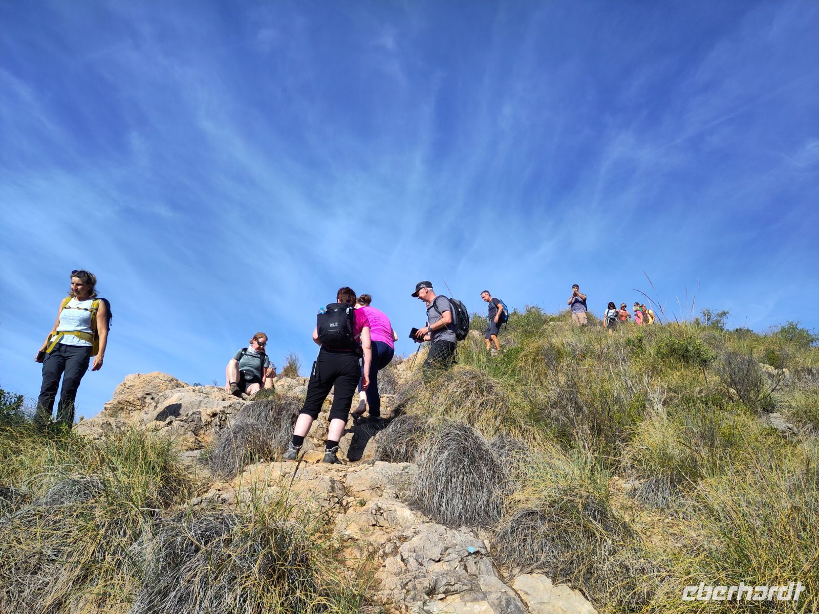 Am Morgen übergab ich den Wanderern den Proviant für das Picknick, den sie in ihren Rucksäcken verstauten, wir hatten Brot, Butter, Käse, Schinken, Äpfel, Bananen, Orangen und Oliven. Ca. 800 bis 900 Meter Anstieg waren zu überwinden. Das war eine ordentliche Strecke, die nicht alle gleich gut schafften. Aber, so wurde mir geschildert, Teile der Gruppe trugen mit ihren Worten die schwächeren Wanderer mit, so dass die ganze Gruppe den Anstieg - und natürlich auch den Abstieg - gemeinsam schaffte und, als sie nach ca. siebeneinhalb Stunden zurück waren, durchaus erschöpft, aber auch stolz und glücklich wirkten. Ein Mitwanderer war gestürzt und wies einige Hautabschürfungen auf, lächelte mich aber genau so an, wie der Rest der Truppe.