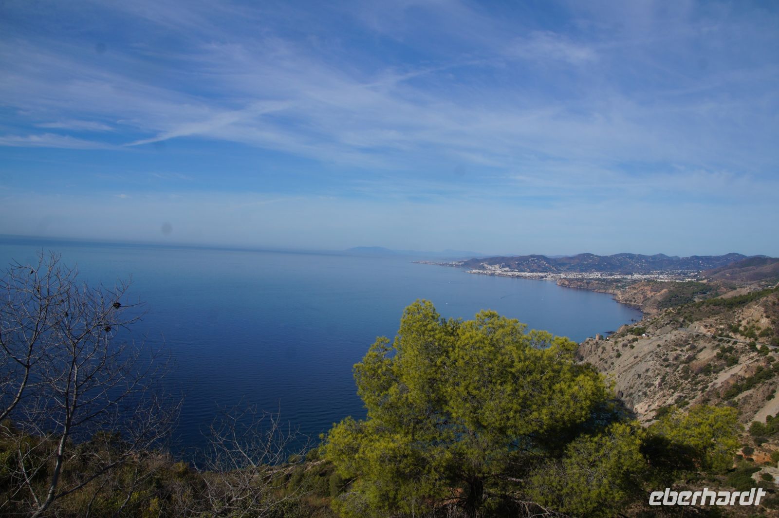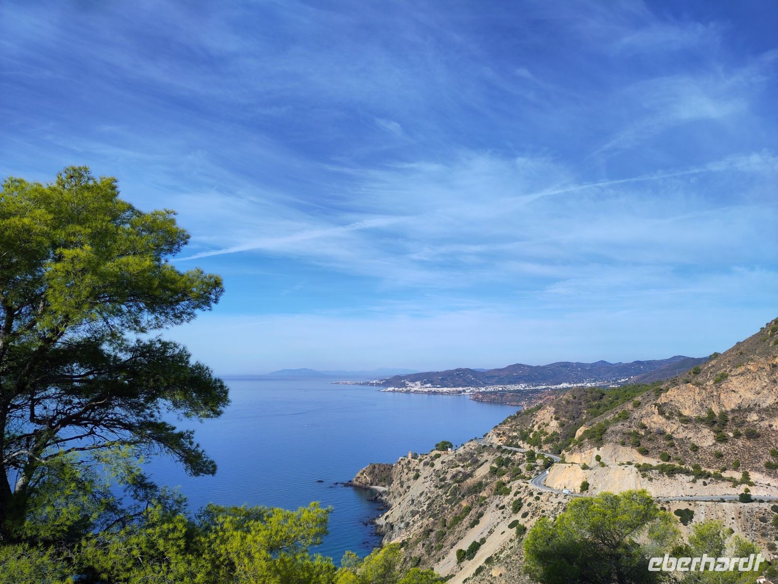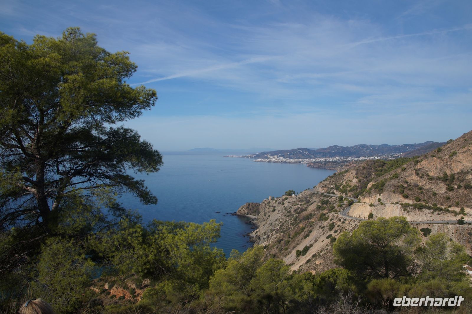 Am Morgen verlassen wir die Alpujarra und fahren in Richtung Küste. Wir folgen dem Lauf des Guadalfeo (in den der Poqueira fließt, an dem wir vorgestern entlang gewandert sind) in Richtung Küste. Wir verlassen die Alpujarra durch den Ort Orgiva, kommen am Rules-Stausee vorbei, der vom Guadalfeo gebildet wird, an der Küste passieren wir Salobreña und erreichen schließlich unseren Wanderparkplatz über den Stränden von Cantarriján und der Cala del Cañuelo. Der Plan ist, zum Cantarriján-Strand herunterzulaufen und von dort aus zur Cala del Cañuelo zu laufen. Der Wanderweg führt über einen Gebirgsgrad mit tollen Aussichten über die Küste. Ich, der ich gestern erkältungsbedingt, eine Wanderpause hatte, laufe voran, die anderen, 900 Höhenmeter in den Beinen, mir hinterher. Fehler. Irgendwann hört man einen spitzen Schrei von hinten. Ich drehe mich um und sehe zunächst nichts. Wo ist etwas passiert? Wem ist etwas passiert? Es stellt sich heraus, dass Simone mit dem Schuh an einem Stein hängen geblieben und infolgedessen gestürzt ist: Mit ihrem Oberschenkel prallt sie auf einen Stein, und fällt in einen Dornbusch.