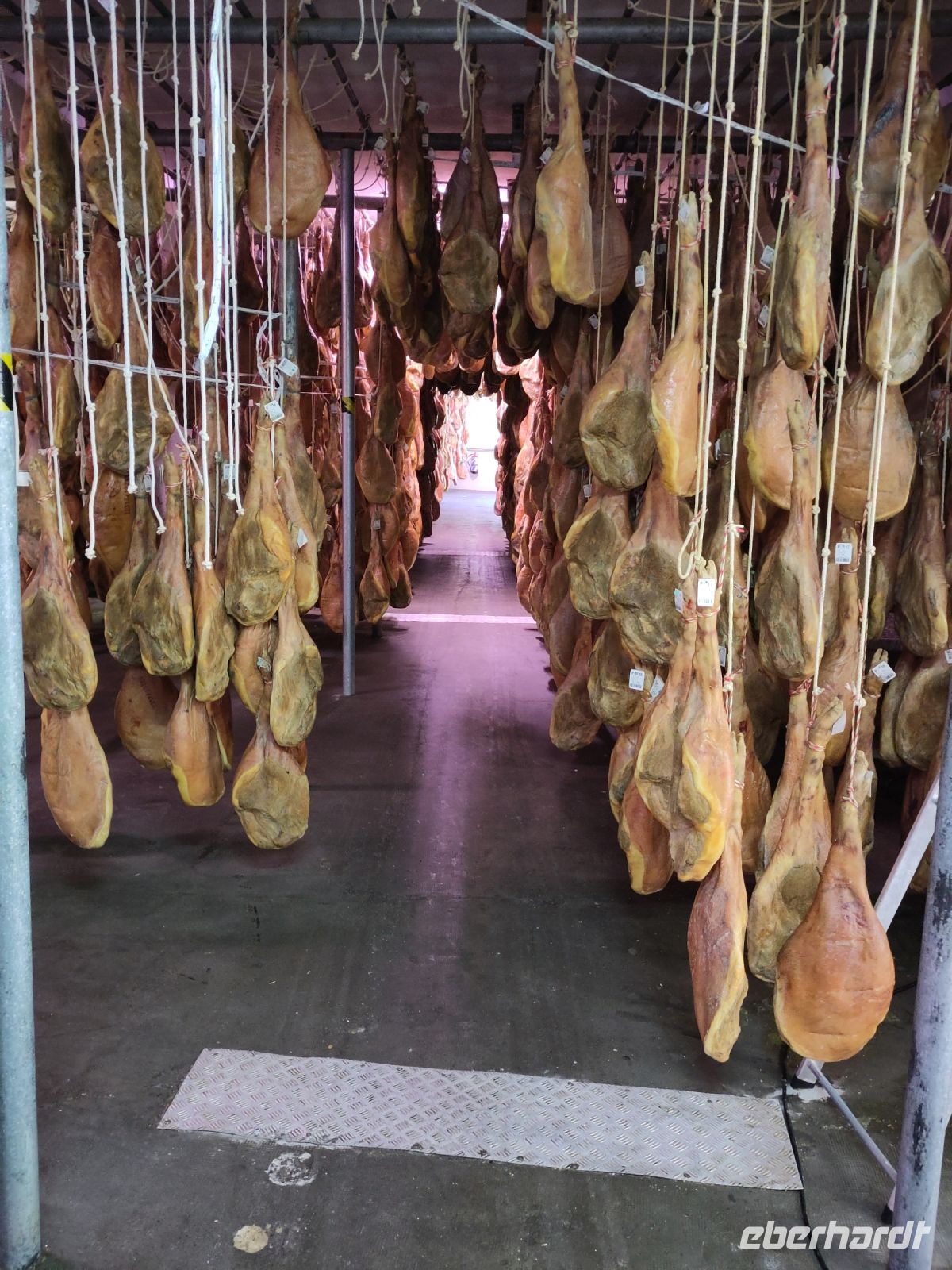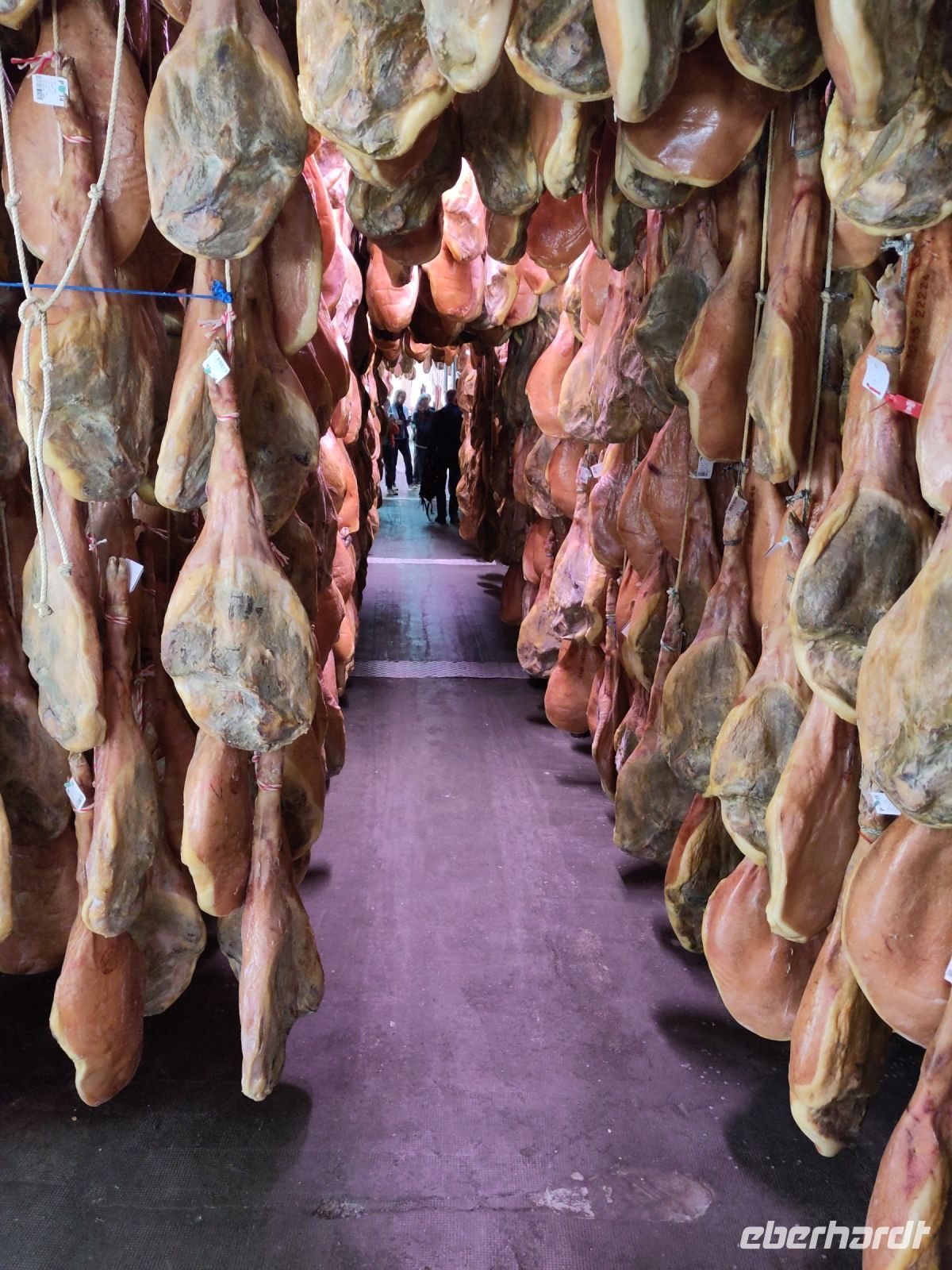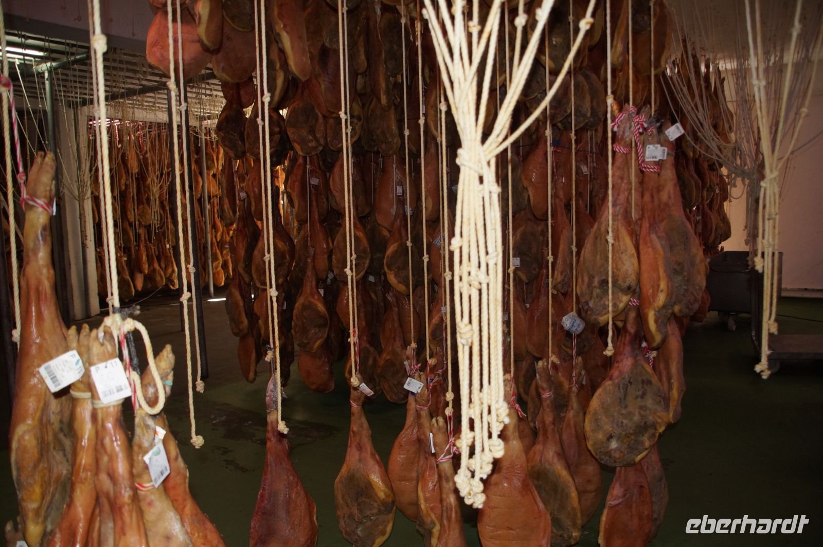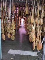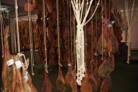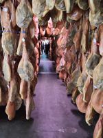 Manolillos Kollege fährt uns nach Trevélez, ins Schinkendorf, hier gibt es verschiedene Secaderos (seco = trocken), wo Schinken reift. In einem dieser Secaderos sind wir verabredet. Zunächst schauen wir uns das hauseigene Museum an, das durchaus informativ ist, aber natürlich auch Werbung für Schinken aus Trevélez macht und sehen schließlich das Allerheiligste des Secadero: hunderte von Schinken die hier reifen. Trevélez soll eben eine ganz besondere Luft haben, deshalb sind hier die Secaderos, die Schweine kommen hingegen nicht aus der Region, sondern aus anderen Teilen Andalusiens und der Extremadura. Im Anschluss gibt es eine Verkostung von Schinken und Wurst bei einem Glas Wein. Dann verabschieden wir uns von Ricardo, der hier heute für uns die Stellung gehalten und Überstunden gemacht hat, denn eigentlich steht das Dorffest an und der Secadero hat den Arbeitsbetrieb heute früher beendet.