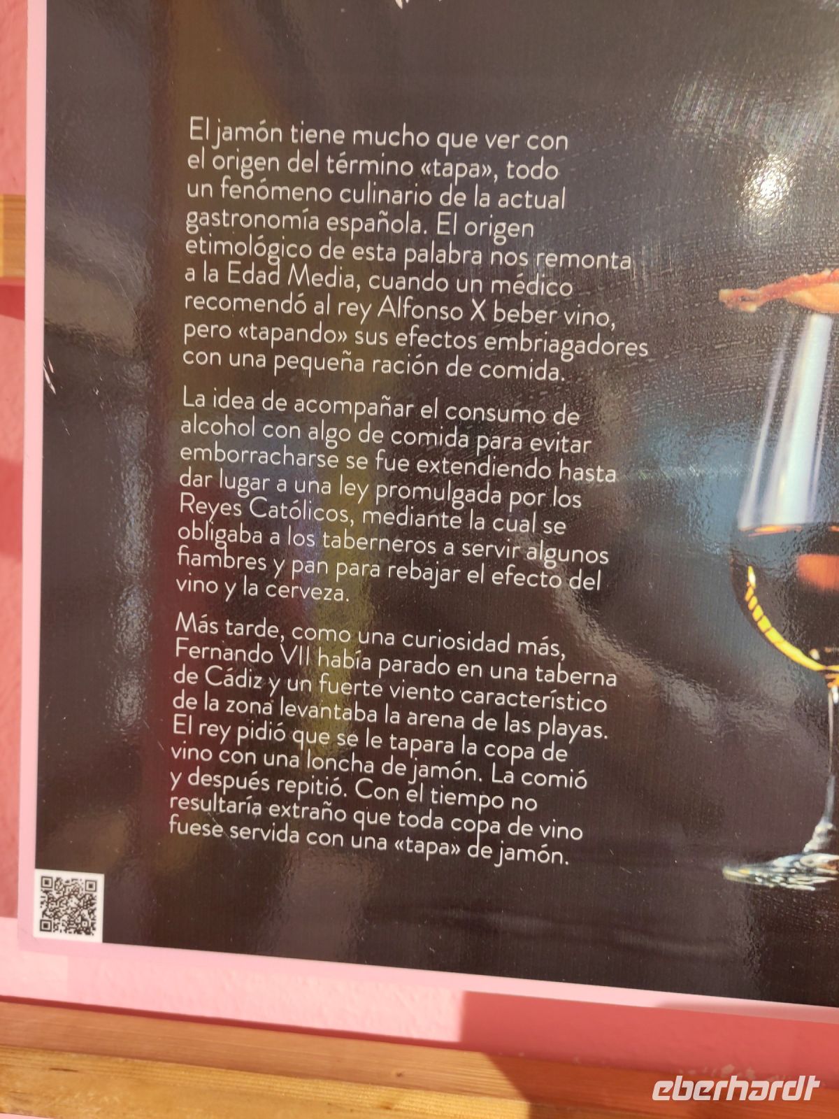 In einer benachbarten Bodega, die von Eberhardt Travel oft angefahren wird, wird auch hin und wieder Weißwein aus Rotweintrauben hergestellt, Miguel Àngel mache das nicht, er mache Weißwein nur aus grünen Trauben. Aber er erklärt uns, dass, um Rotwein zu erhalten, der Saft möglichst Lange in Kontakt mit der Haut der Trauben gehalten werden muss. und so entwickelt sich eine Kappe im Weintank, der sogenannte "Sombrero", während die Hefe Zucker in Alkohol verwandelt, die auf dem Saft schwimmt, von unten wird beständig Saft entnommen und von oben wieder auf den "Sombrero" ('Hut') laufen lassen, so, dass der Wein beständig durch den "Hut" läuft.