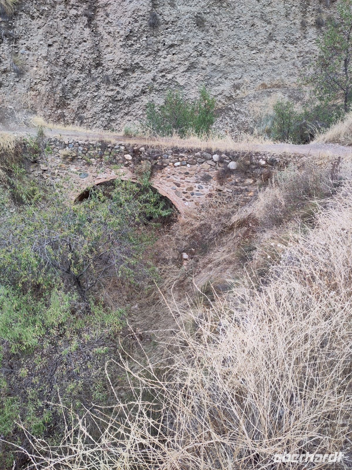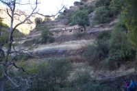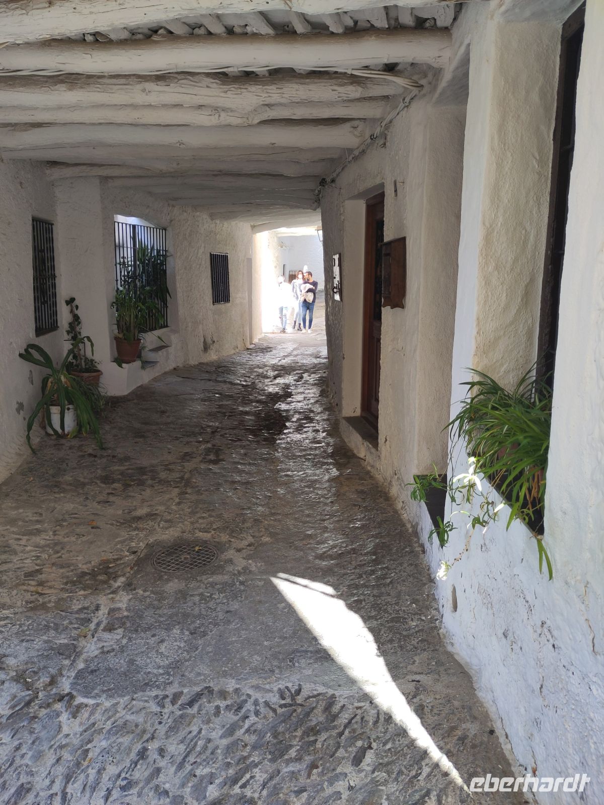 Irgendwann geht es - nach einigem Auf und Ab - relativ steil nach unten, wo wir den Poqueira bei einem beeidruckenden Fels überqueren. Auch einen hübschen Wasserfall gibt es hier. Unter uns liegt das alte Wasserkreftwerk von Pampaneira, wir müssen zu dem Ort ein wenig aufsteigen. laufen über die 'Bächle', die durch die Straßen des Dorfes fließen (daher auch die Anlehnung an den in Freiburg gebräuchlichen Begriff). An der Kirche machen wir Halt und packen unser Picknick aus.