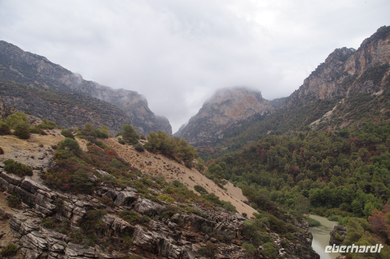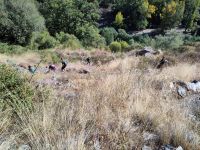 Nachdem wir zunächst hinter eine spanischen Gruppe festhingen, setzten sich bald die ersten ab, nachdem wir die spanische Gruppe überholt hatten. Am Ende teilten wir uns in etwa drei Gruppen die mit unterschiedlichen Geschwindigkeiten durch die Schlucht gingen. Über uns kreisten die Geier und Wolken kündeten von möglichem Regen, aber der fiel nicht, oder nur sehr gering dosiert, anders als die beiden Tage zuvor.