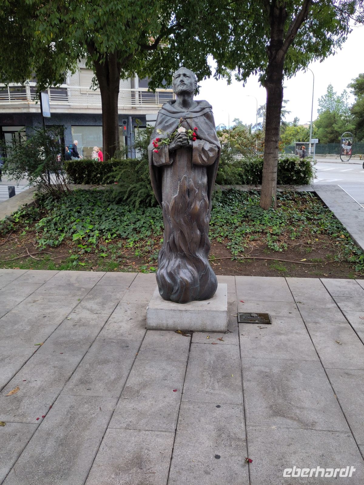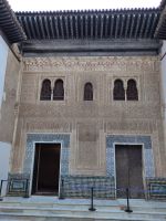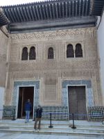 Wir verlassen die Alhambra durch das Justiztor und gehen durch den Alhambrawald, den wir durch das Granatapfeltor verlassen. Vorbei an der Plaza Nueva (die geschaffen wurde, weil man den Darro (< dat aurum > da oro 'gibt Gold') eintunnelte), zum Kolumbusdenkmal und durch den alten Seidenmarkt - die Seide war in al-Andalus das Monopol der Könige und ihre legale Möglichkeit, Geld zu erwirtschaften, da sie als Steuern außer der Kopfsteuer für Christen und Juden, nur die Zakat einnehmen durften und die Zakat ging nicht in den Staatshaushalt, sondern wurde an die Bedürftigen weiterverteilt.