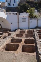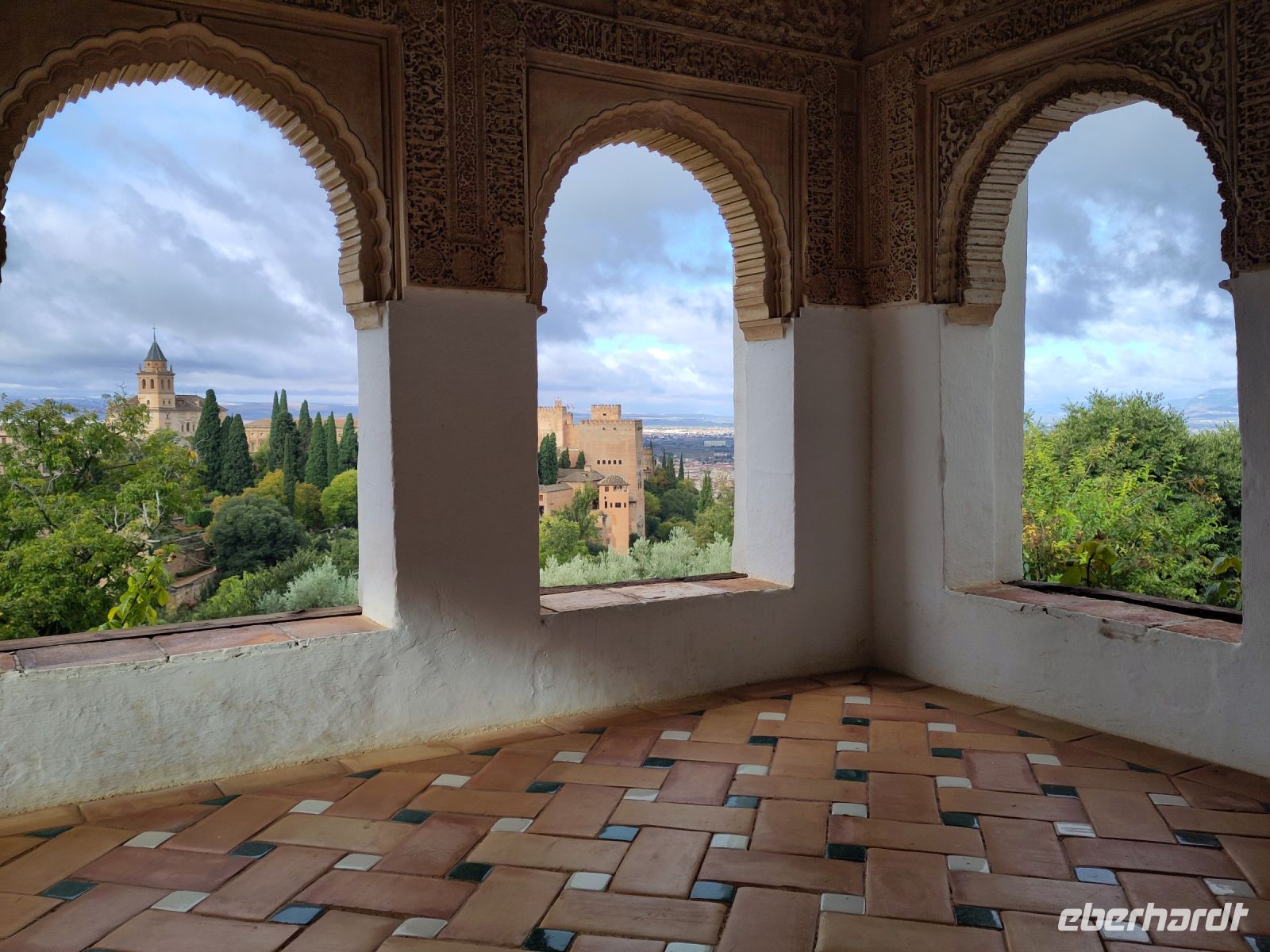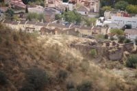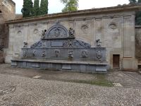 In Granada halten wir am Mirador San Cristobal, erhaschen einen ersten Blick auf den Albayzín und die dahinterliegende Alhambra. Wir gehen zur namensgebenden Kirche, sehen dort einen arabischen Brunnen (al-djubb > aljibe) und die arabischen Grabsteine im Mauerwerk der Kirche.