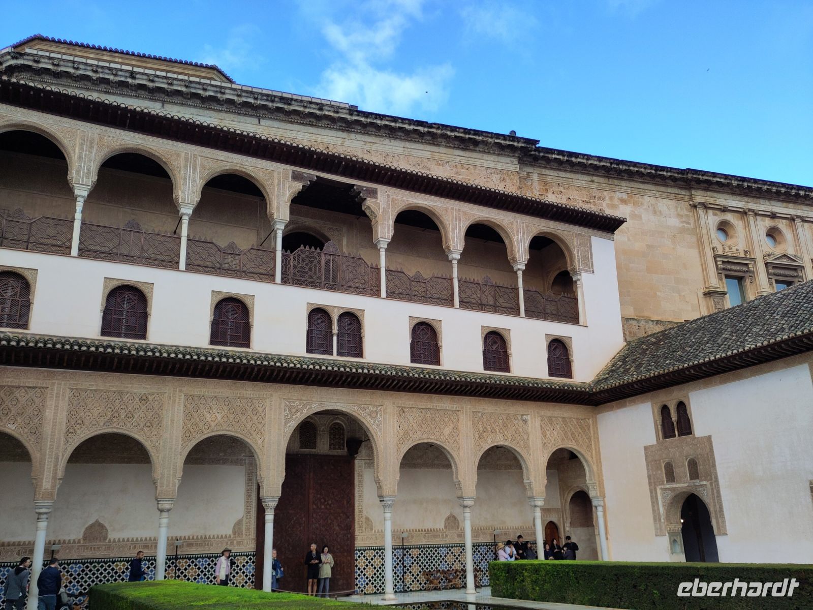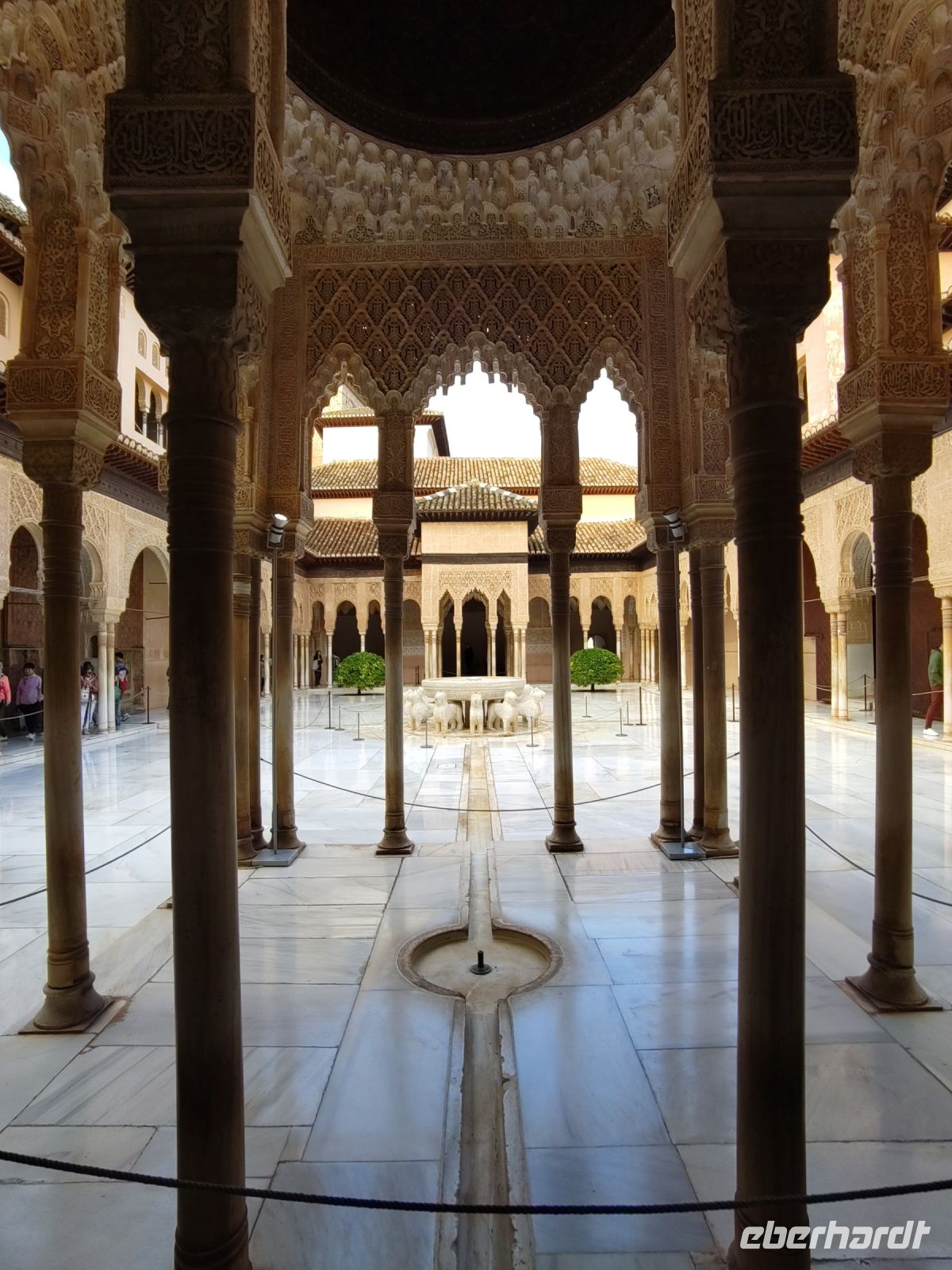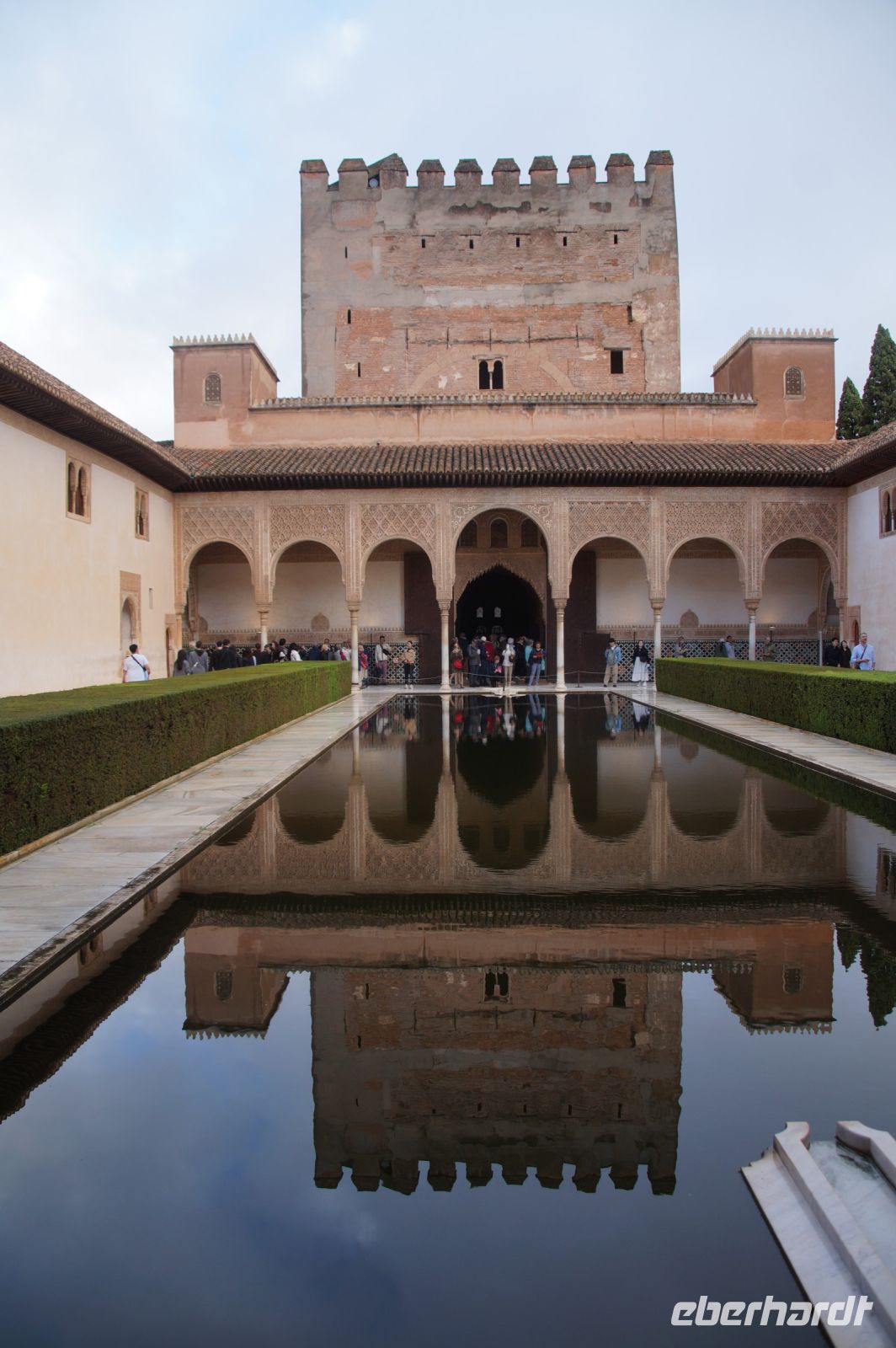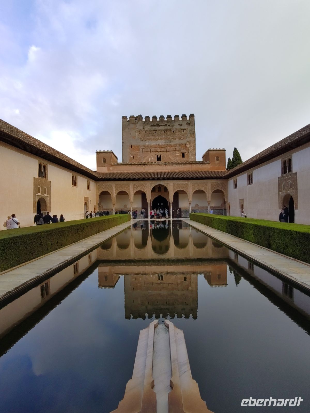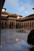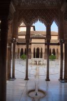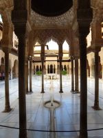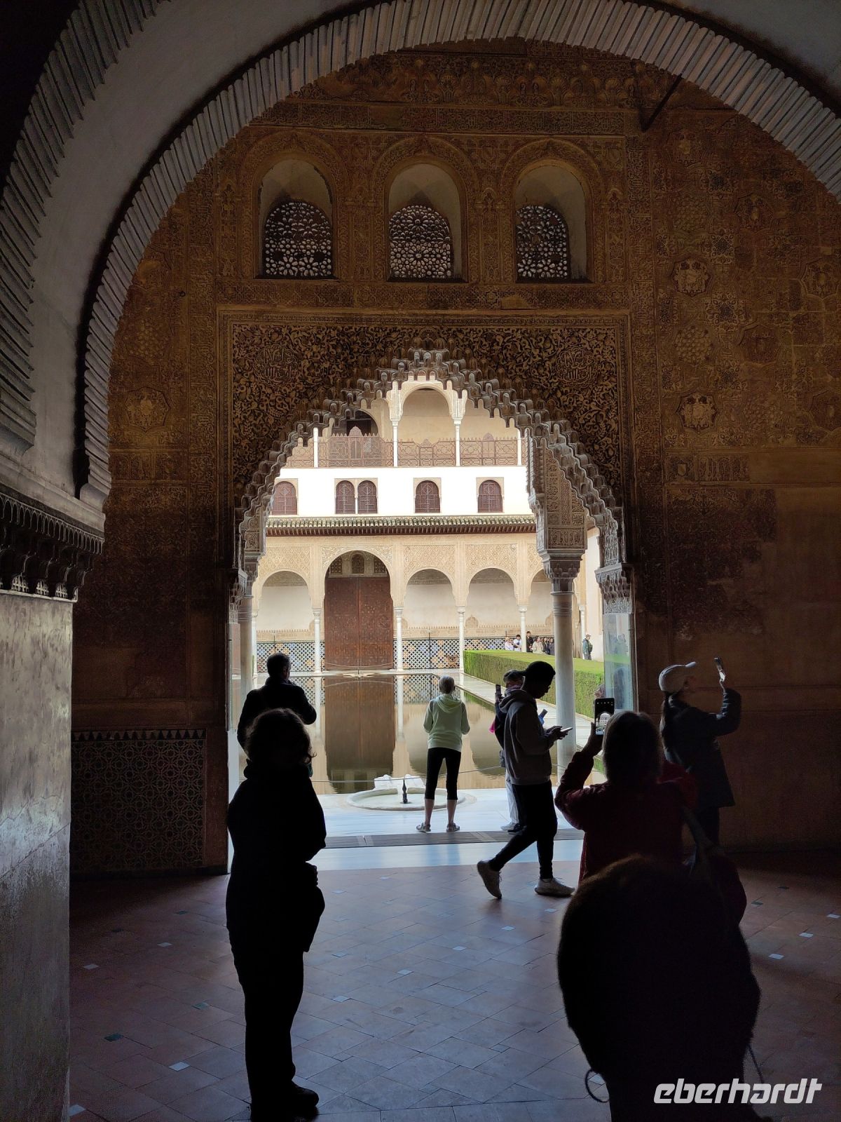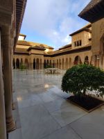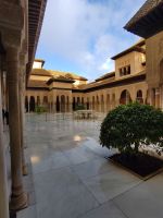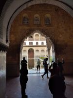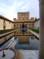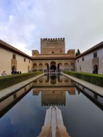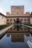 Dann gehen wir in die Paläste. Wir sehen den Mexuar, eigentlich eine Art Kanzlei, die aber in christlicher Zeit in eine Kapelle umgewandelt wurde und laufen nun von Hof zu Hof. Im Patio de Arrayanes (dem Myrtenhof) sehen wir natürlich die Spiegelung des Torre de Comares im Wasserbecken, Pedro fordert uns auf, das perfekte Foto zu schießen.