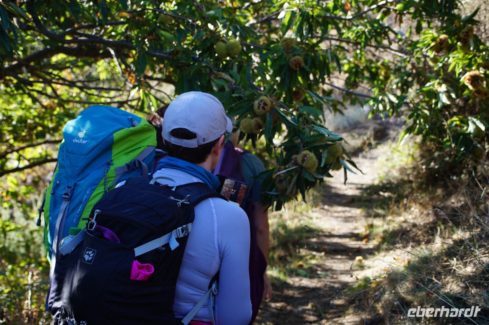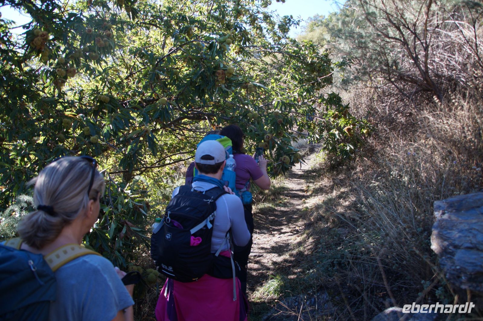 Immer wieder kommen wir auch jetzt an Maronen vorbei. José erklärt uns, dass die Maronen hier nicht endemisch seien, sich aber gut angepasst hätten. Die Römer, sagt er, hätten die Maronen hier als Nahrungslieferanten eingeführt, denn für sie seine die Alpujarras aufgrund vieler Erzadern ein interessantes Minengebiet gewesen. Sie wüchsen besonders an schattigen Stellen, in der Nähe von Wasserläufen.