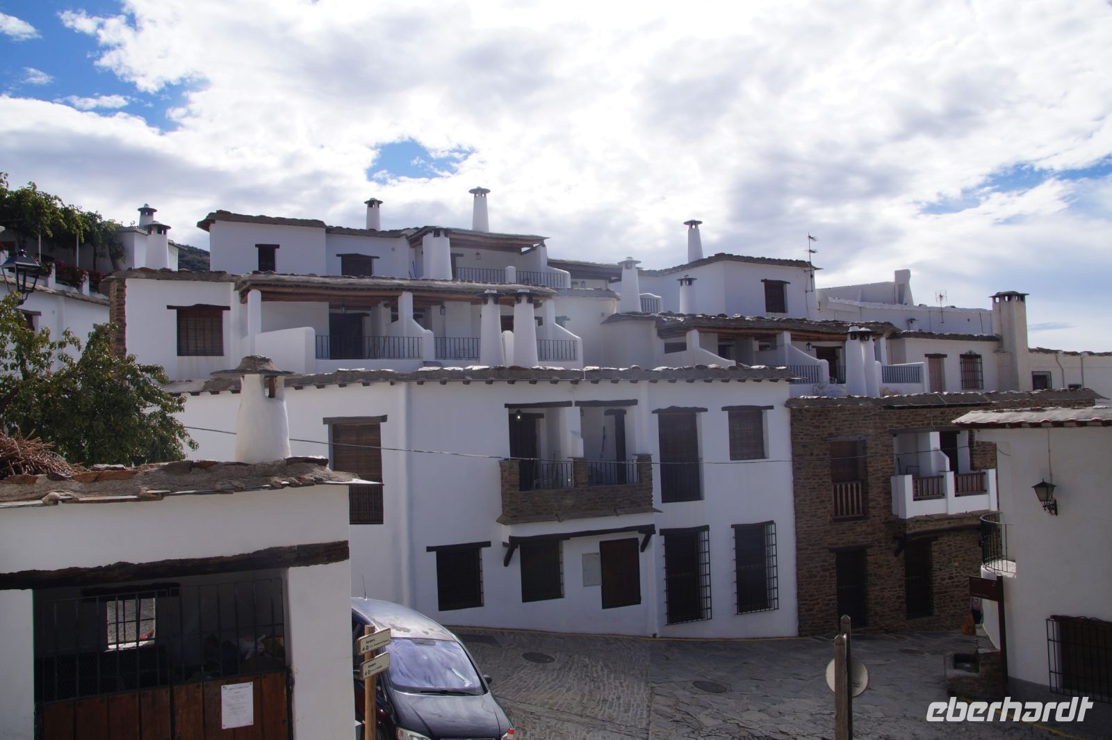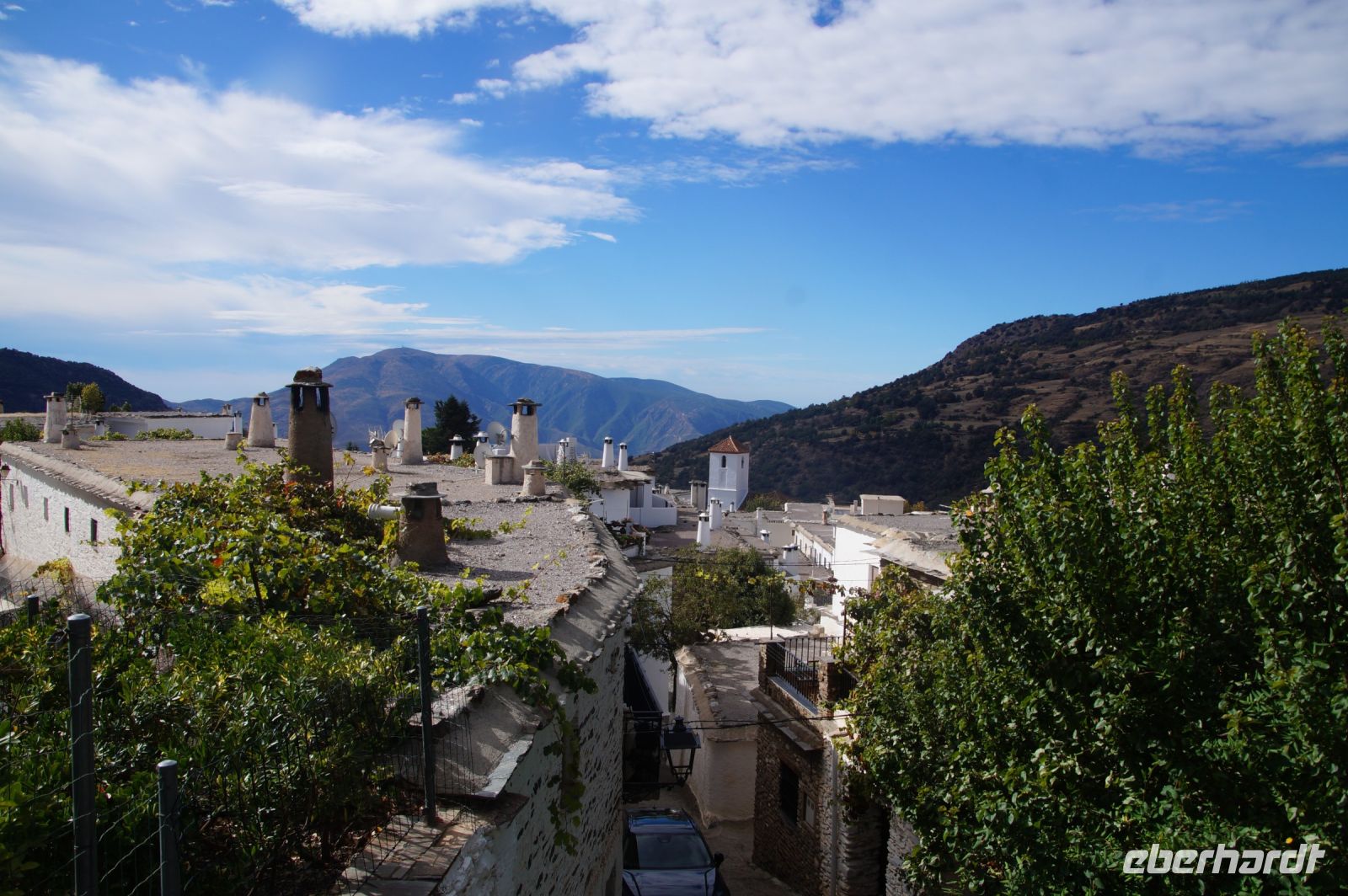 Eine kurze Verschnaufpause machen wir an der Kirche von Bubión, dann geht es weiter und schließlich erreichen wir Capileira. Uns erwartet schon ein Kollege von Manolillo, der extra mit dem Auto aus Granada gekommen ist, denn Manolillo muss heute pausieren und darf den Bus nicht bewegen.