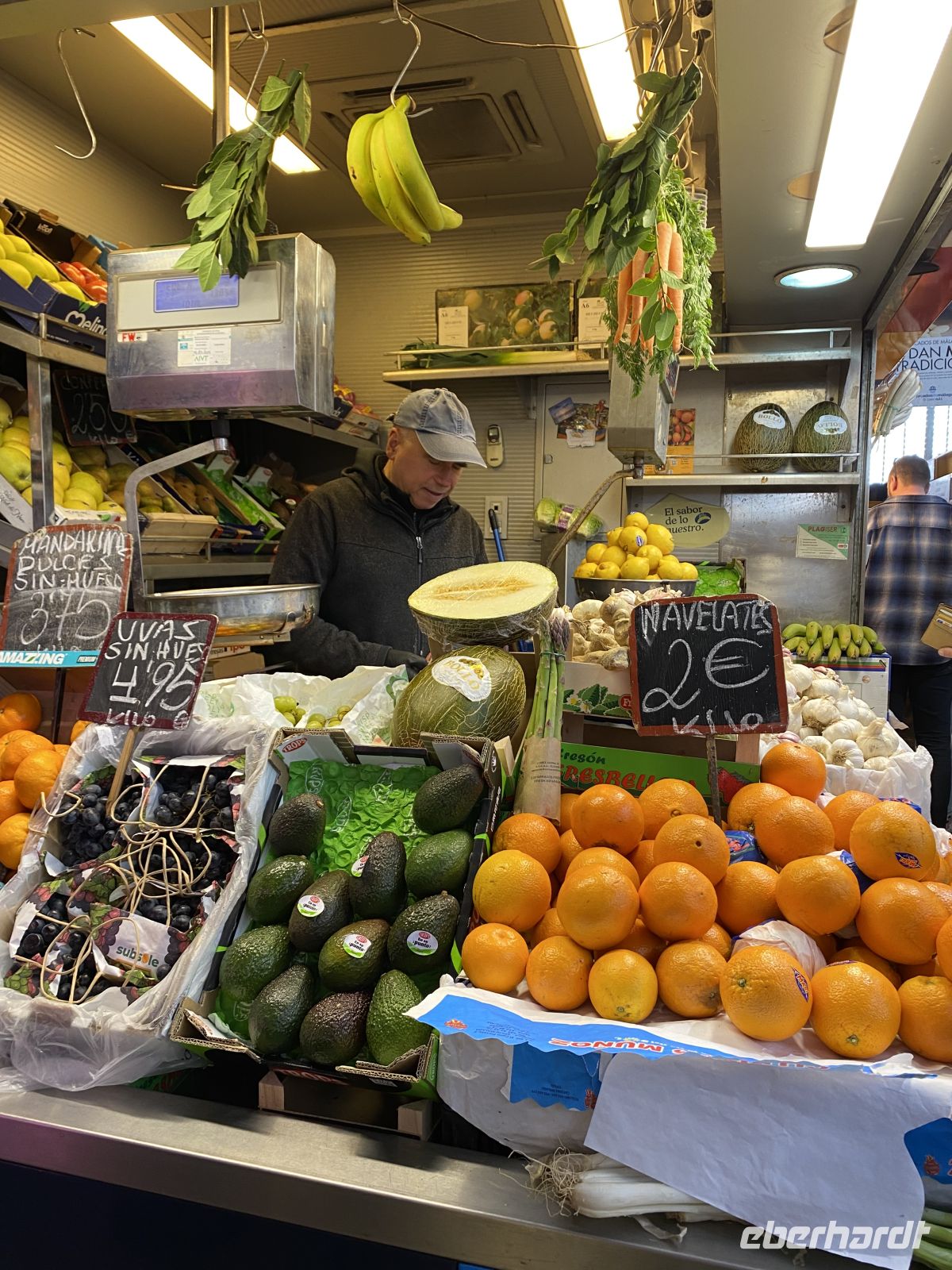 Nun ist etwas Stärkung angezeigt - wir gehen zur Markthalle Atarazanas, die im Neomudejarstil gebaut wurde. . Das Angebot an Fisch ist groß, man könnte als Binnenländer wirklich neidisch werden. Wir überwinden jedoch den Neid und machen uns auf zum Besuch einer ökologisch geführten Orangenplantage. In der Finca Juanito Orange erwartet uns zunächst eine umfangreiche Paella, der wir auch alle Ehre antun. Anschließend zeigt uns der Sohn des Besitzers seine Plantage mit unterschiedlichen Zitrussorten. Er demonstriert die Philosophie der Finca - mit Nützlingen die Schädlinge zu bekämpfen und den Einsatz chemischer Mittel zu vermeiden. Wir kosten die Orangen frisch vom Baum, da kann keine Supermarkt-Apfelsine mithalten.