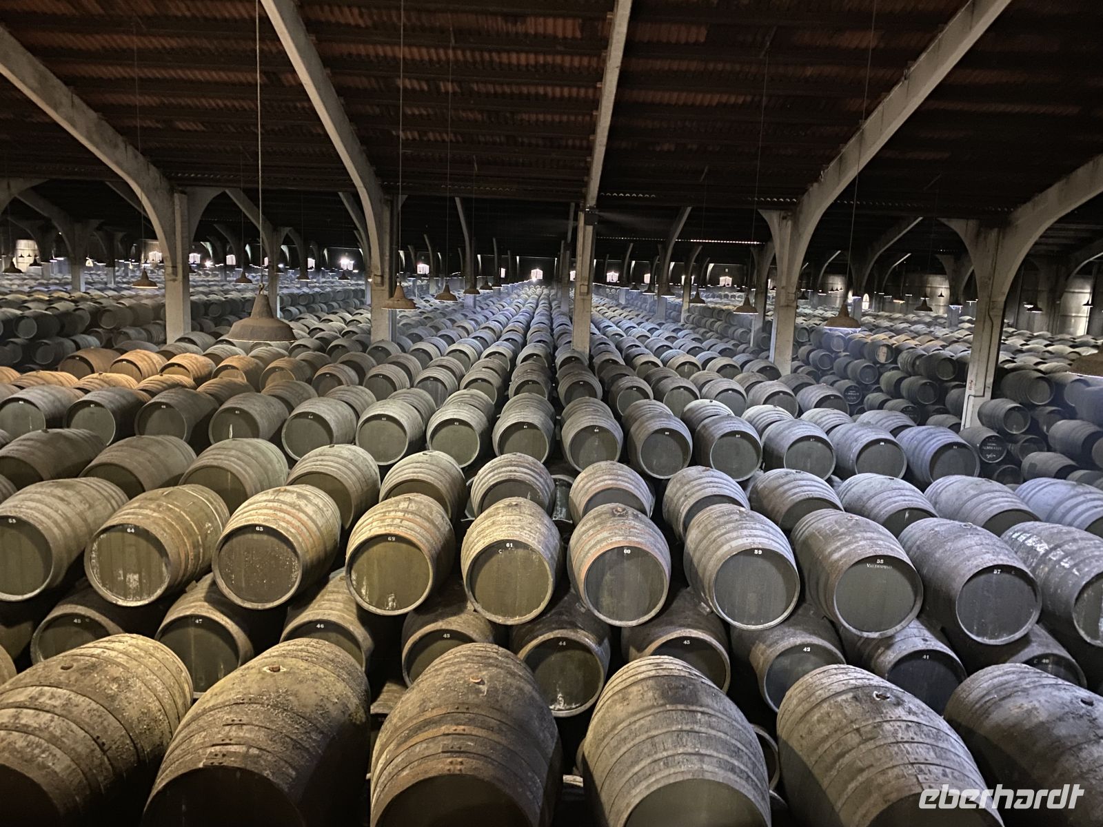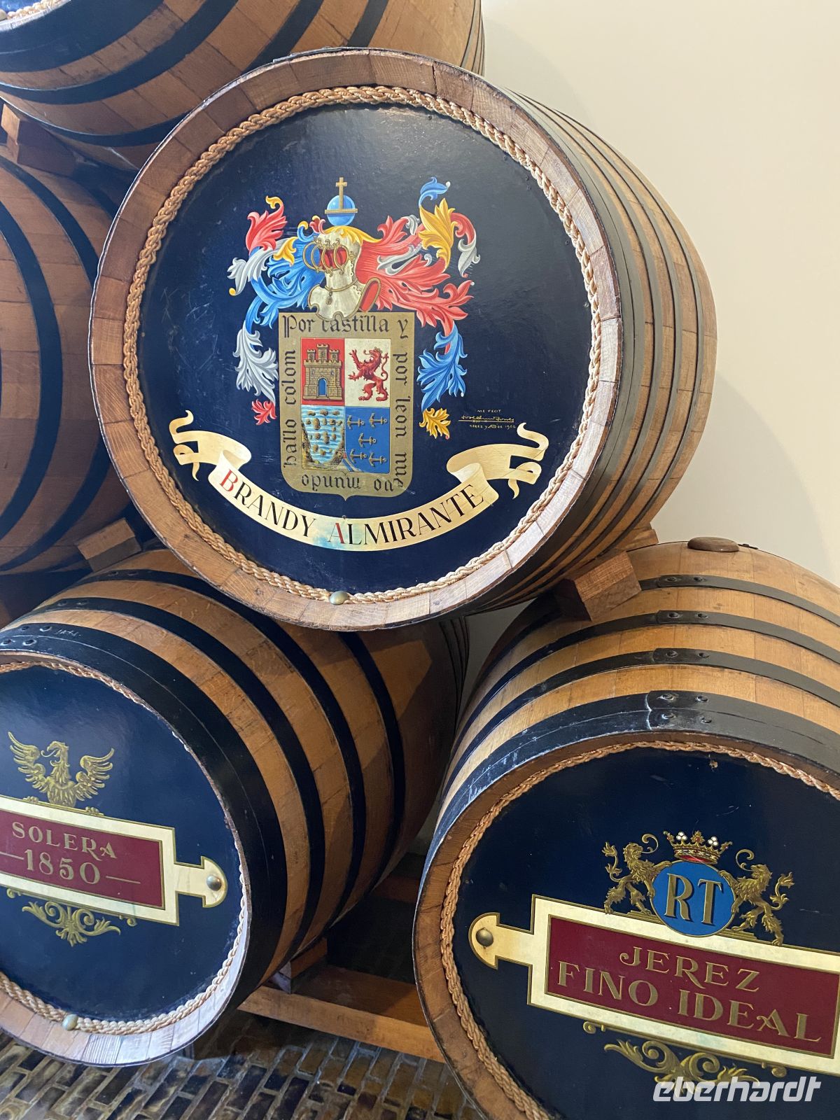 Gestärkt geht es nun in die Sherry Kelterei Tesoro Real der Familie Estevez. Außer den großen Lagerhallen für die Sherryfässer sehen wir auch die edlen andalusischen Pferde des Hausherren, seine Kutschensammlung und die Kunstsammlung, die auch einige Picassos umfasst.