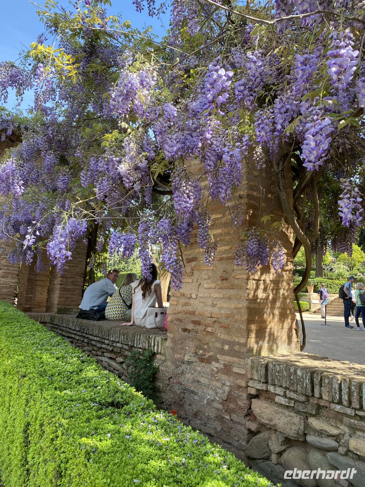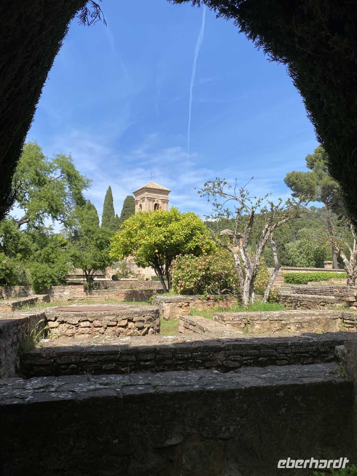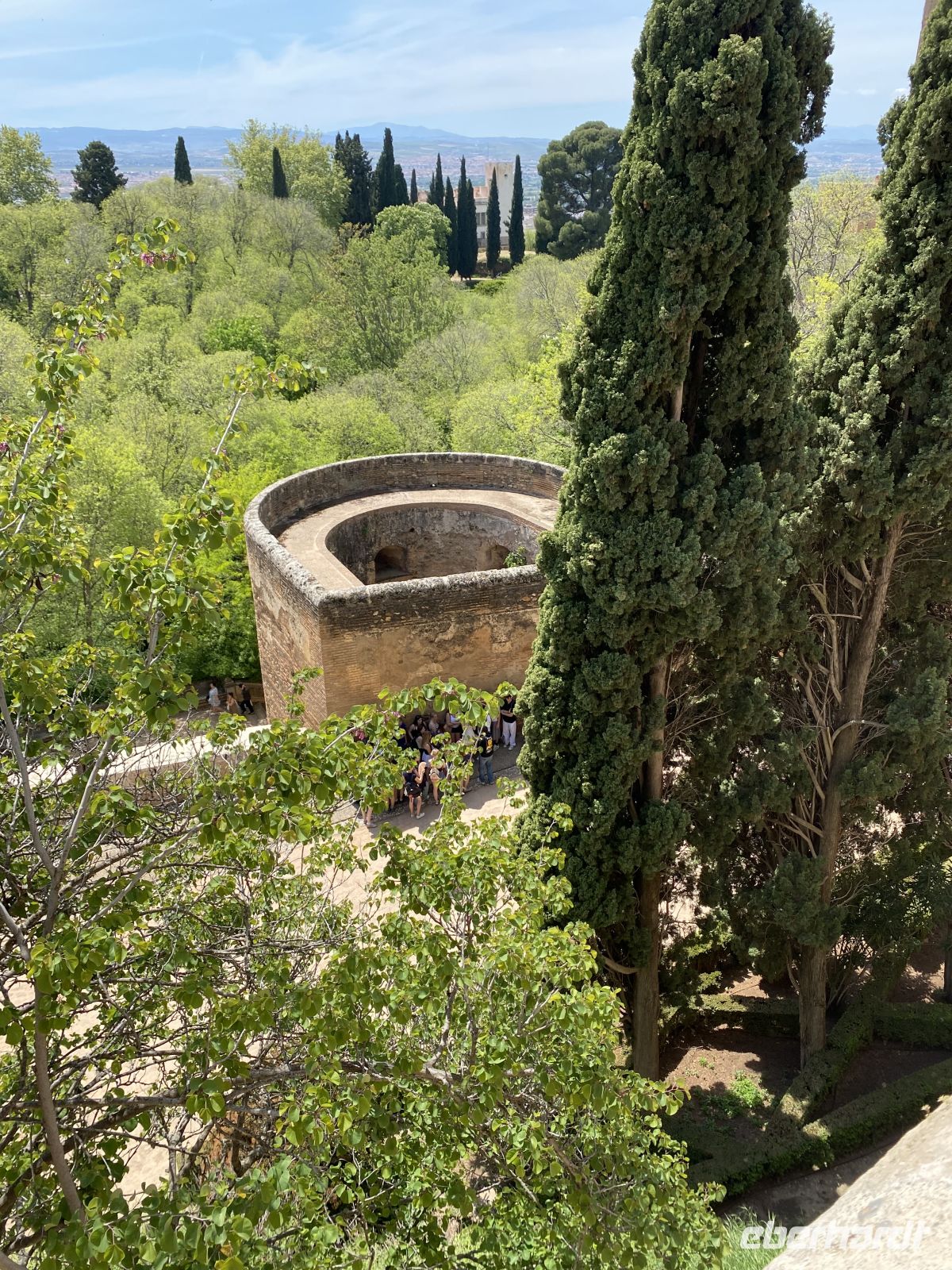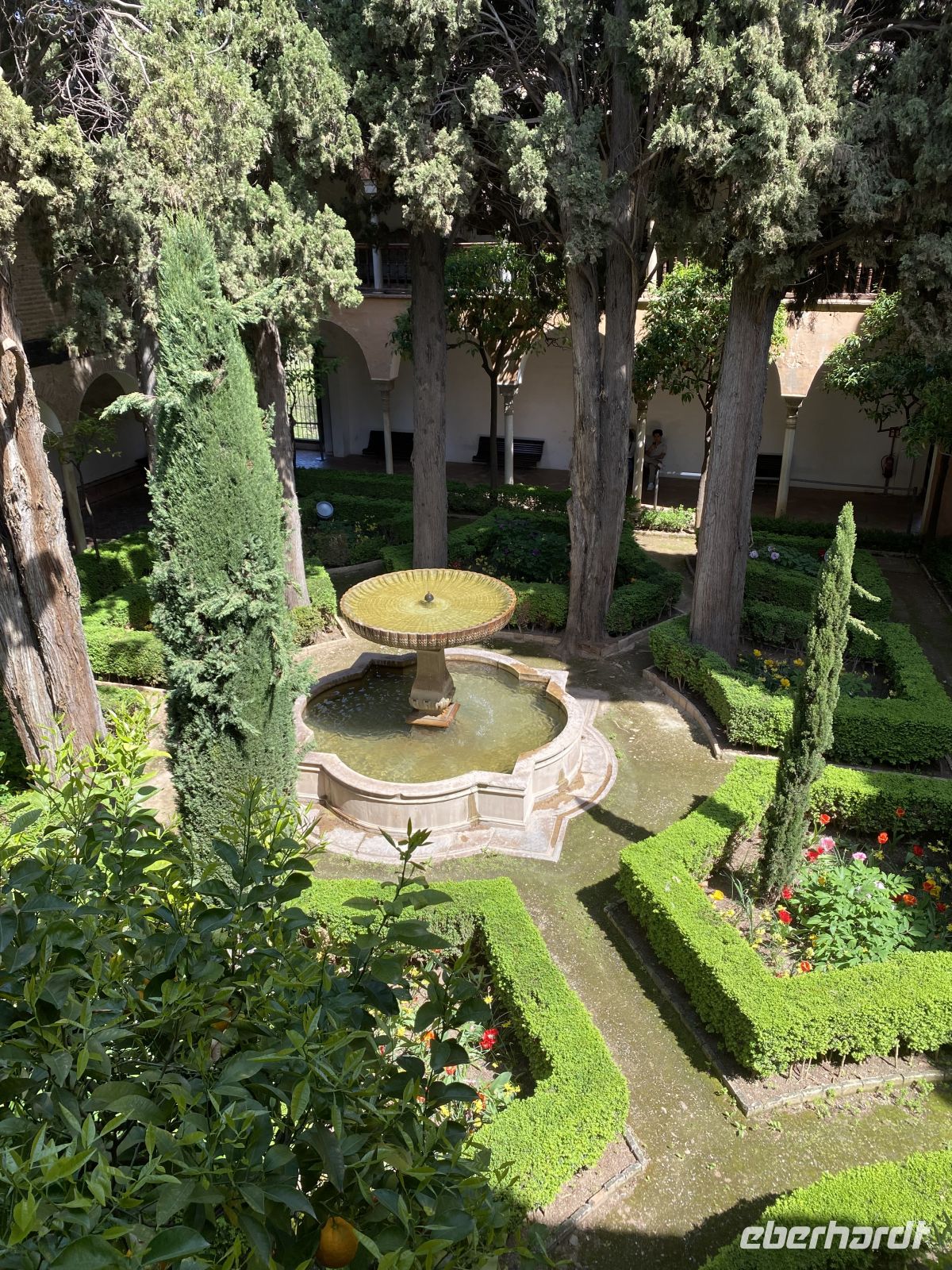 Sehr entspannend war der Besuch des östlich der Alhambra gelegenen Generalife, des Gartens des Architekten. Hier sind Gebäude, Pflanzen und Waserspiele harmonisch vereint und geben den Blick zur Alhambra und zur Sierra Nevada frei.