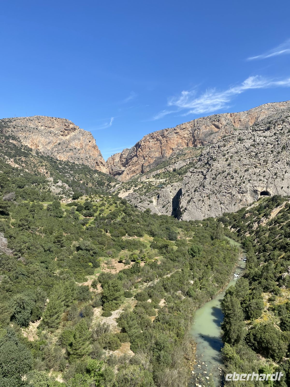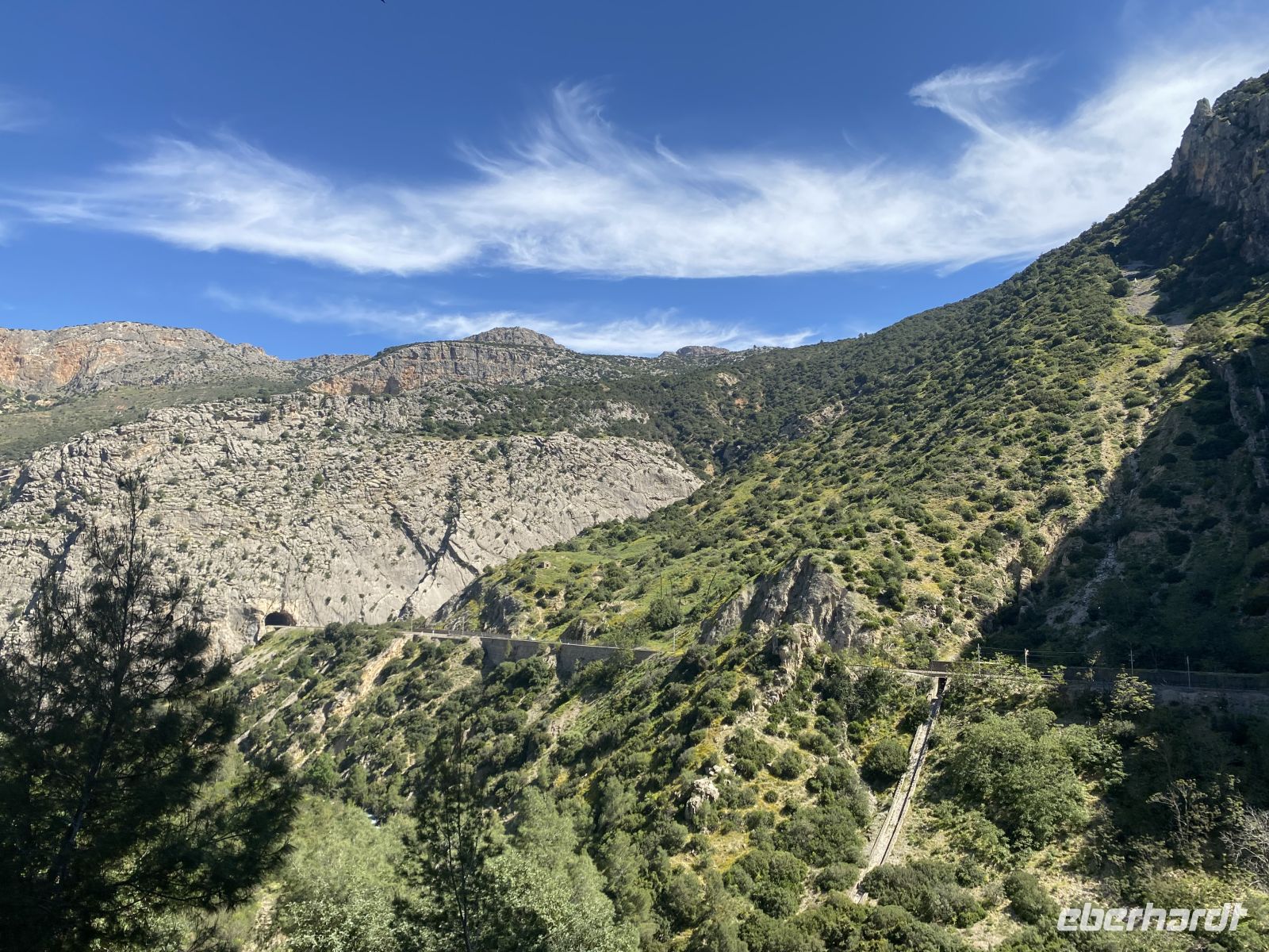 Unsere ca. 7 km lange Wanderung führt uns durch den Naturpark "Desfiladero de los Gaitanes", es geht mal eng am Felsen entlang, mal über eine Brücke und tief unten sieht man den Fluss. Weit über uns kreisen die Geier und etwas tiefer jagen die Mauersegler.
