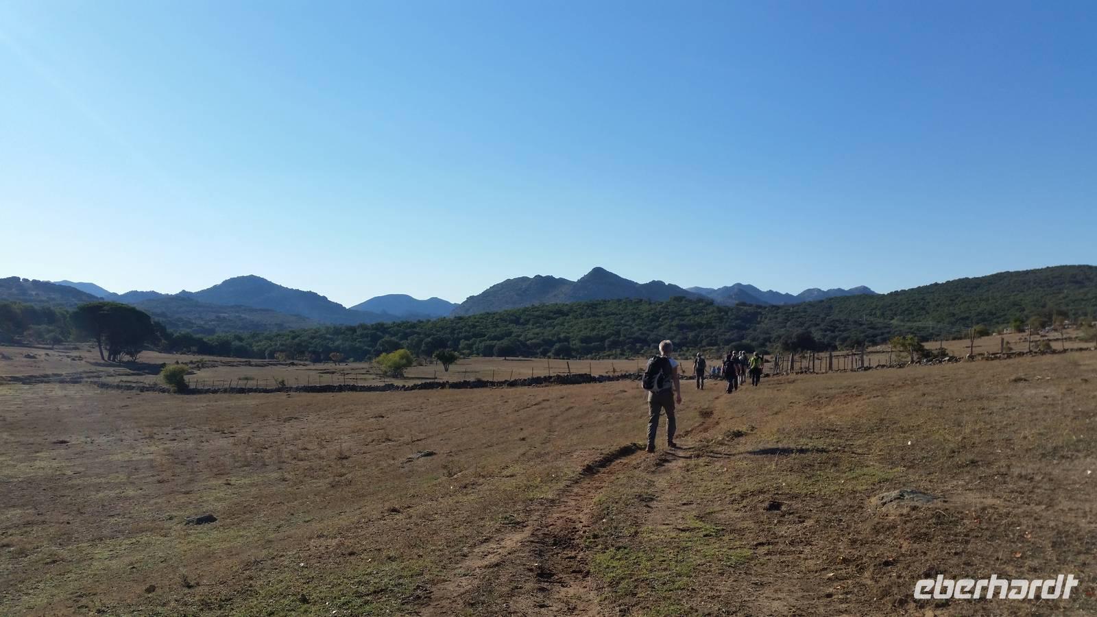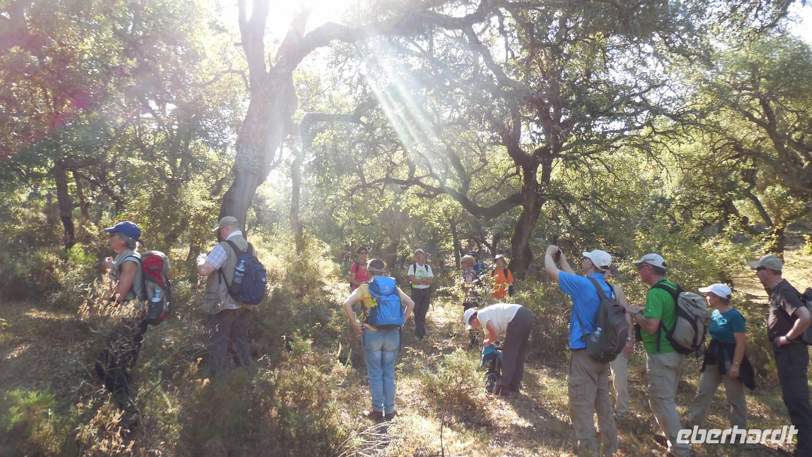 Wir machten heute eine wunderschöne Wanderung über Blumenfelder, Wiesen und durch einen dichten Korkeichenwald, mit den berühmten Korkeichenbäumen. Zum Frühling hätten wir mehr Blumen gesehen. Nun im Herbst ist es nicht mehr so sondern trocken nach dem Sommer aber immerhin die Berge und Sonne machen es alles herrlich. Namensgebend sind die mächtigen Korkschichten des Stammes, die zur Korkgewinnung genutzt werden. Ein einzelner Baum kann sogar während seines Lebens 100 bis 200 Kilogramm Kork liefern. Auf dem Weg zur Wanderung haben wir uns gewundert, warum die Bäume so komisch geschnitten waren. Aber jetzt mit Jo haben wir es verstanden. Alle neun Jahre werden Sie geschnitten, um Kork zu gewinnen. Es schadet den Bäumen nicht, weil es nur die äußerste Schutzhülle ist.