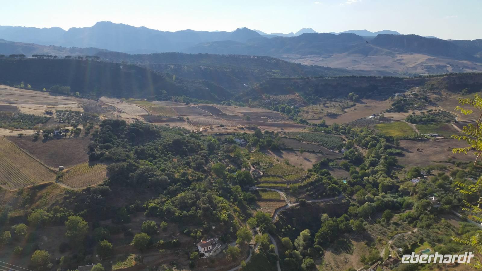 Richtung Ronda fuhren wir durch eine herrliche und wunderschöne Landschaft. Rechts und links sieht man oft Zitronen- oder Olivenbäume, die typisch für diese Region sind. Viele dachten, Südspanien ist überall flach und trocken, aber in den nächsten Tagen werden wir erfahren, dass der Gegenteil der Fall ist. „Warum ist alles so grün?" fragten wir uns. Wir werden in den nächsten Tagen erkunden, dass das Grazalema-Gebirge, der regenreichste Ort Spaniens ist. Eine bemerkenswerte Besonderheit ist das Klima des Ortes. Grazalema weist mit 2132 l/m² die höchste jährliche Niederschlagsmenge Spaniens auf und selbst wenige Kilometer entfernte Nachbarorte erreichen nur knapp ein Viertel dieser Menge. Deswegen ist das Gebiet durch eine für Andalusien außerordentliche grüne und reiche Vegetation gekennzeichnet.