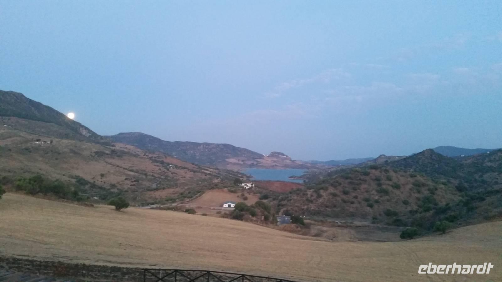 Wir erstaunen über unserem romantisch gelegenem Hotel und nach dem Check-in trafen wir uns zum Abendessen bei einem herrlichem Sonnenuntergang mit Gewitter und Blitze ganz weit weg von uns an einem See mitten in den Bergen. Das Hotel liegt auf einem Hügel mit einem herrlichen Blick auf einen Stausee. Bevor wir ins Bett gingen, bestaunten wir auch den Himmel voller Sterne.