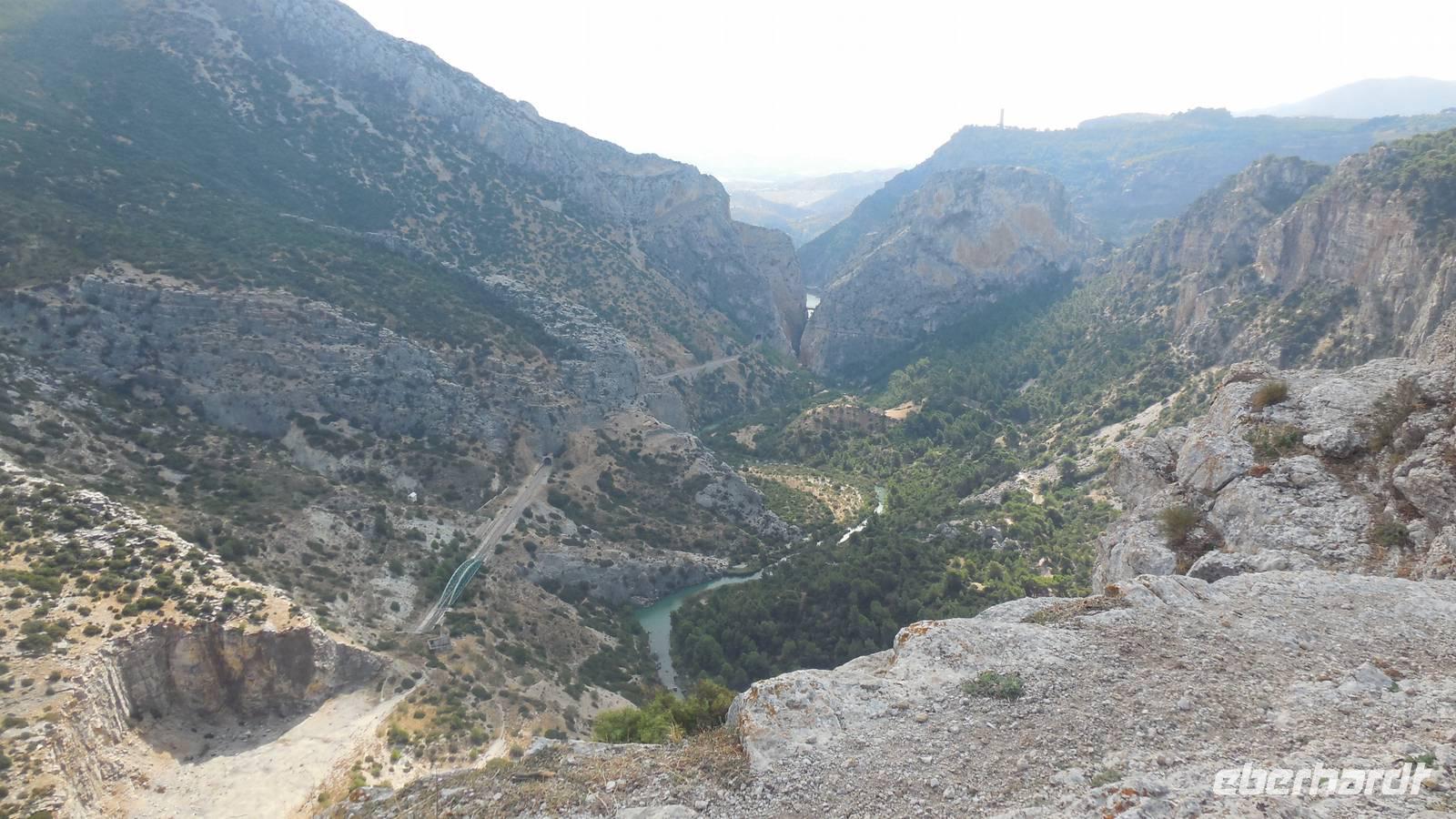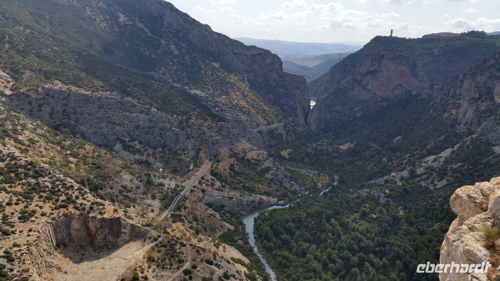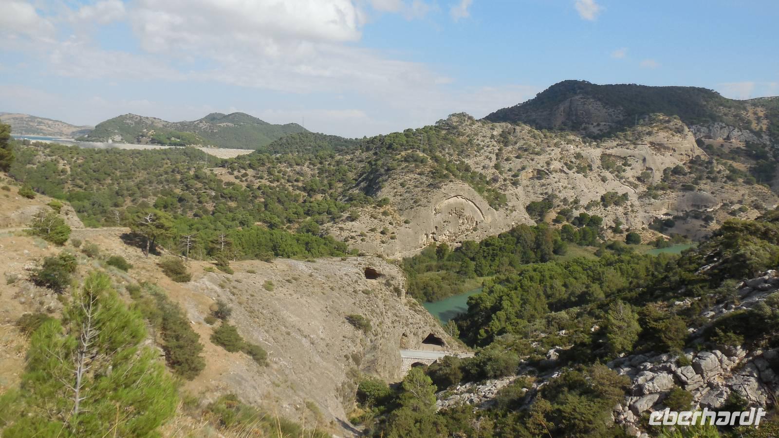 Wir fangen in El Chorro an, einst eine winzige Siedlung für die Arbeiter, die das Wasserkraftwerk Conde del Guadalhorce am Anfang des vergangenen Jahrhunderts bauten. Wir wandern um die Talsperren und Stauseen von Conde del Guadalhorce und Guadalteba und erstaunen atemberaubende Blicke in tiefe Schluchten wie „Desfiladero de los Gaitanes".