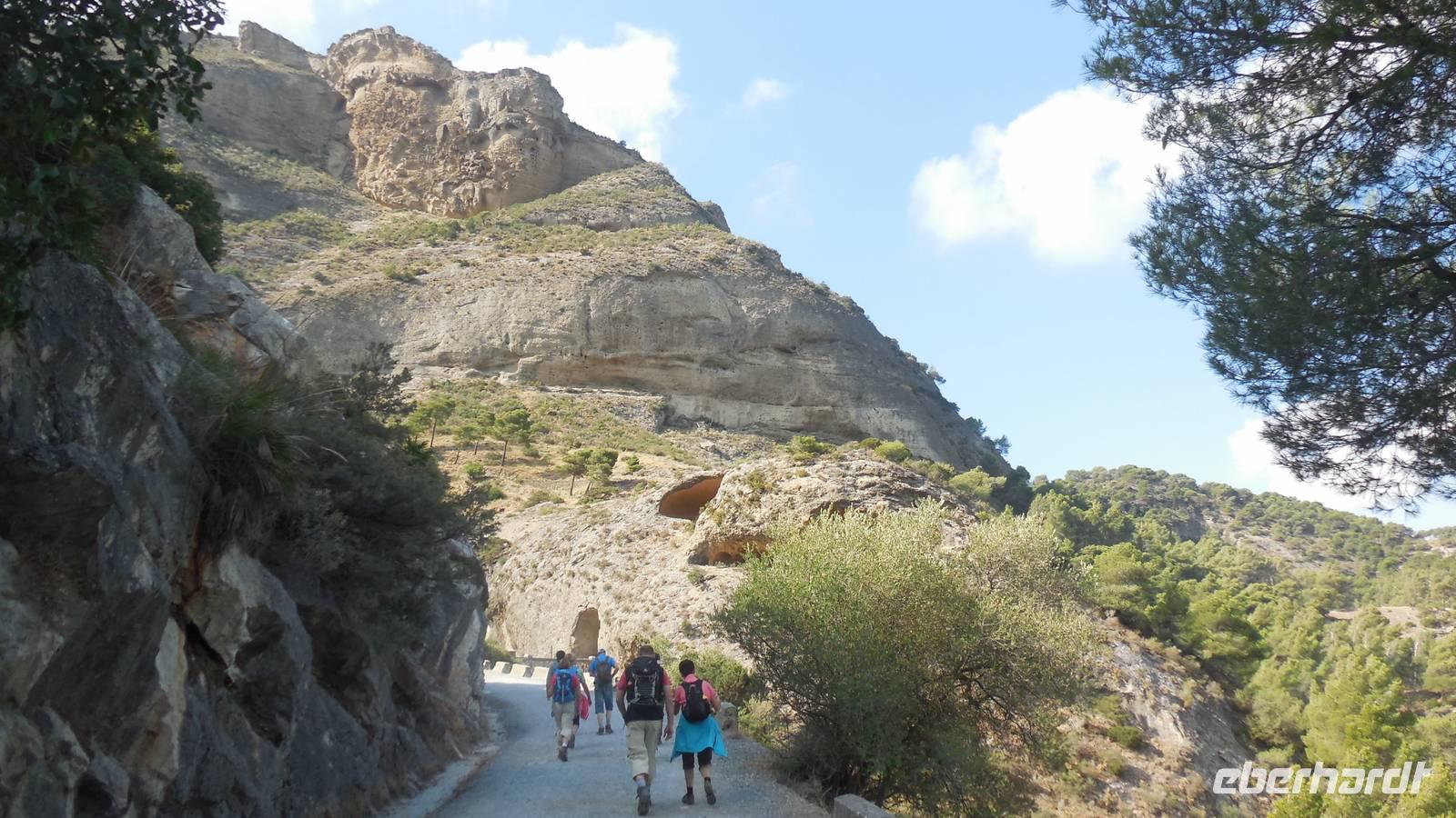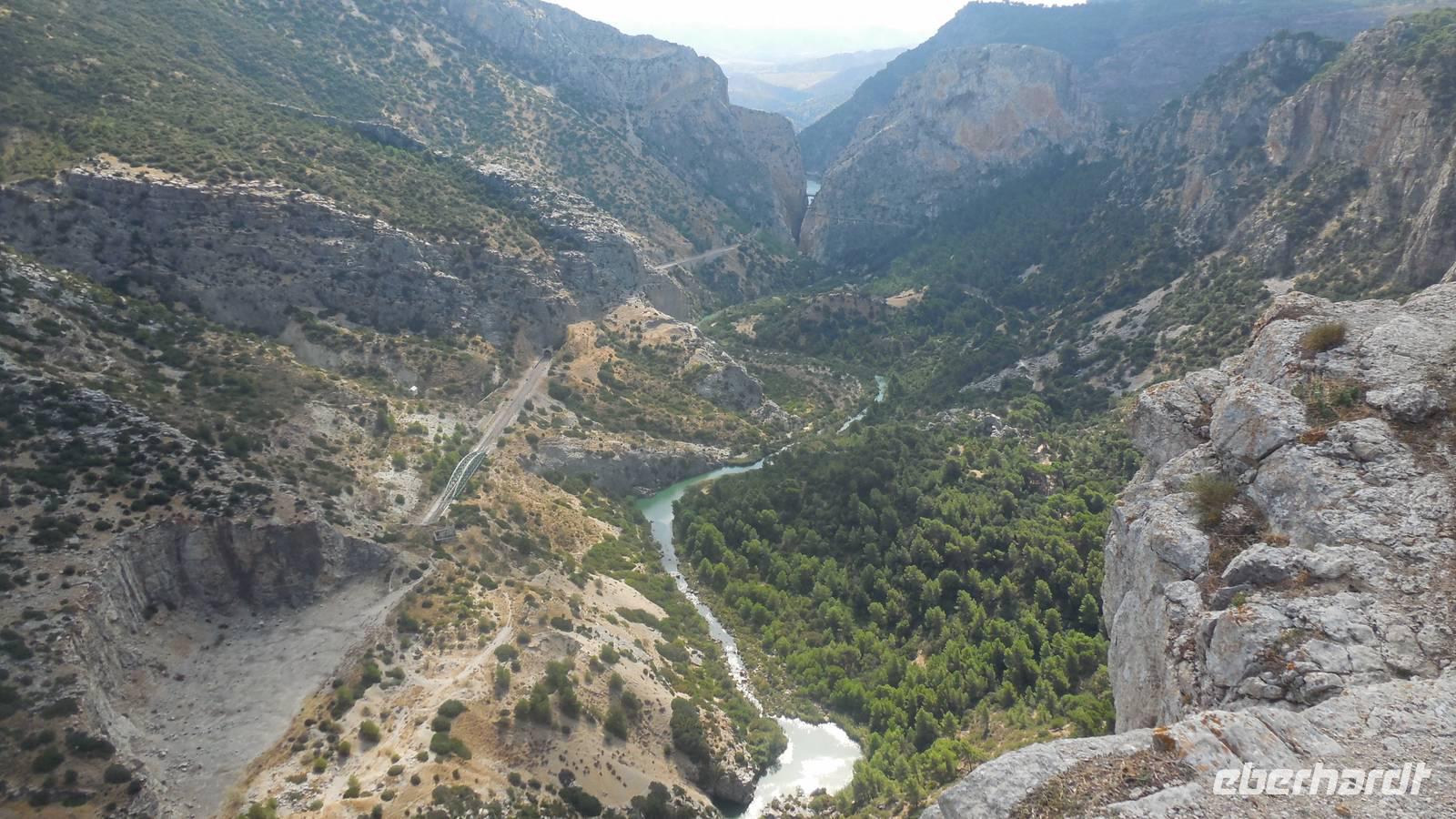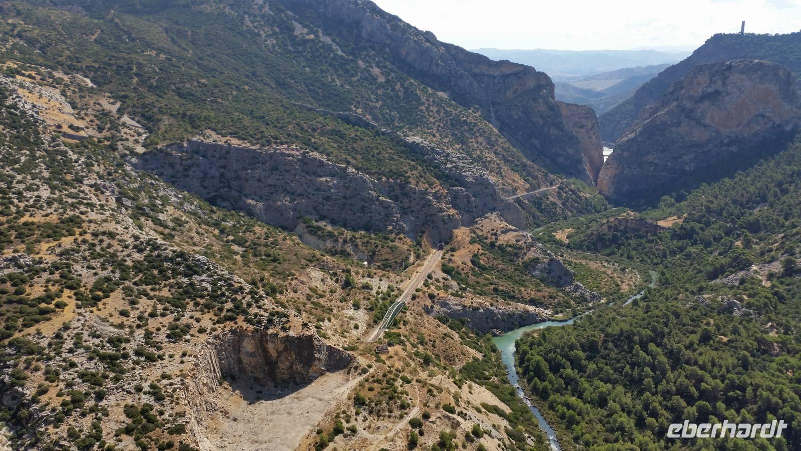 Wir fangen in El Chorro an, einst eine winzige Siedlung für die Arbeiter, die das Wasserkraftwerk Conde del Guadalhorce am Anfang des vergangenen Jahrhunderts bauten. Wir wandern um die Talsperren und Stauseen von Conde del Guadalhorce und Guadalteba und erstaunen atemberaubende Blicke in tiefe Schluchten wie „Desfiladero de los Gaitanes".