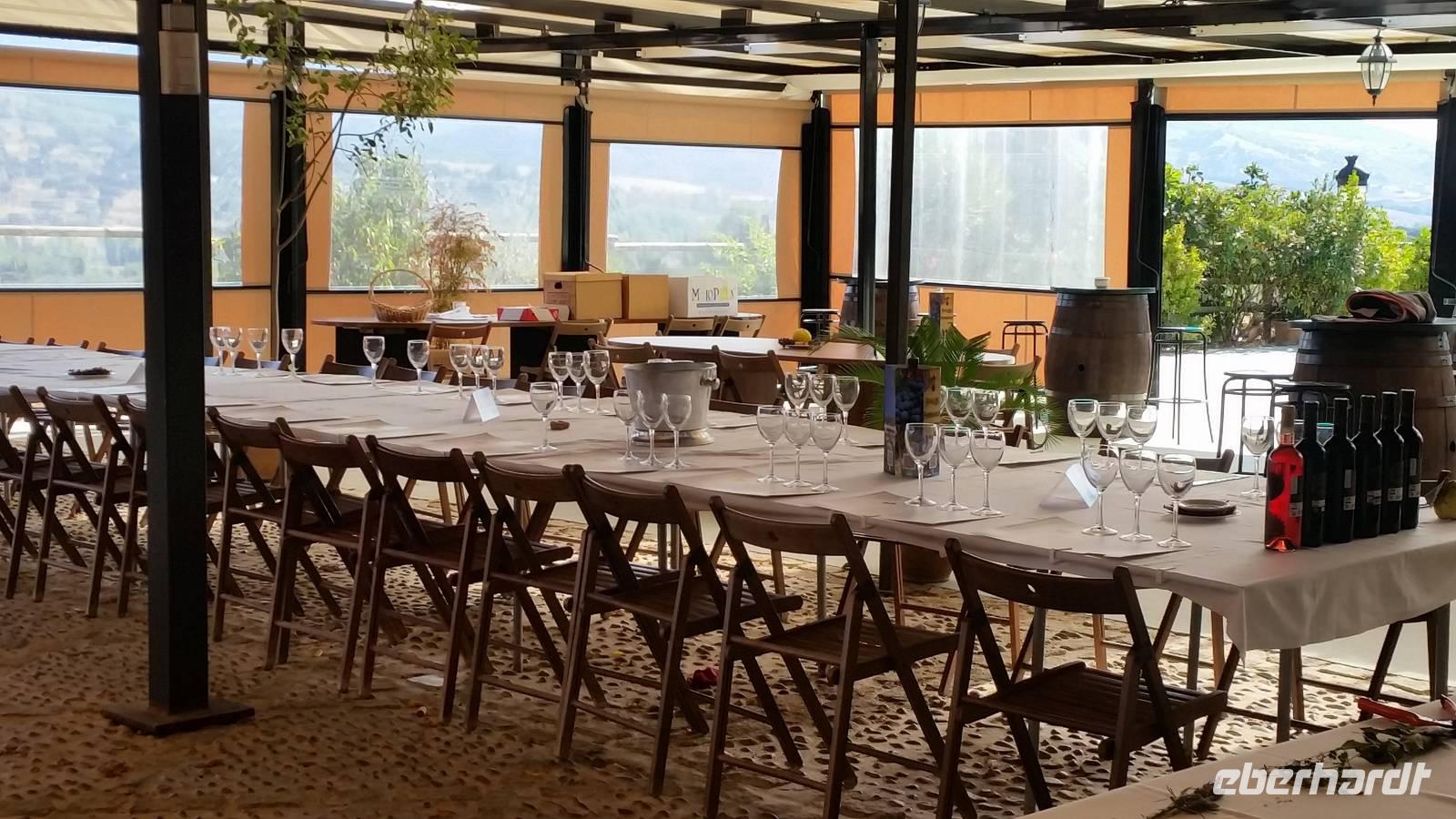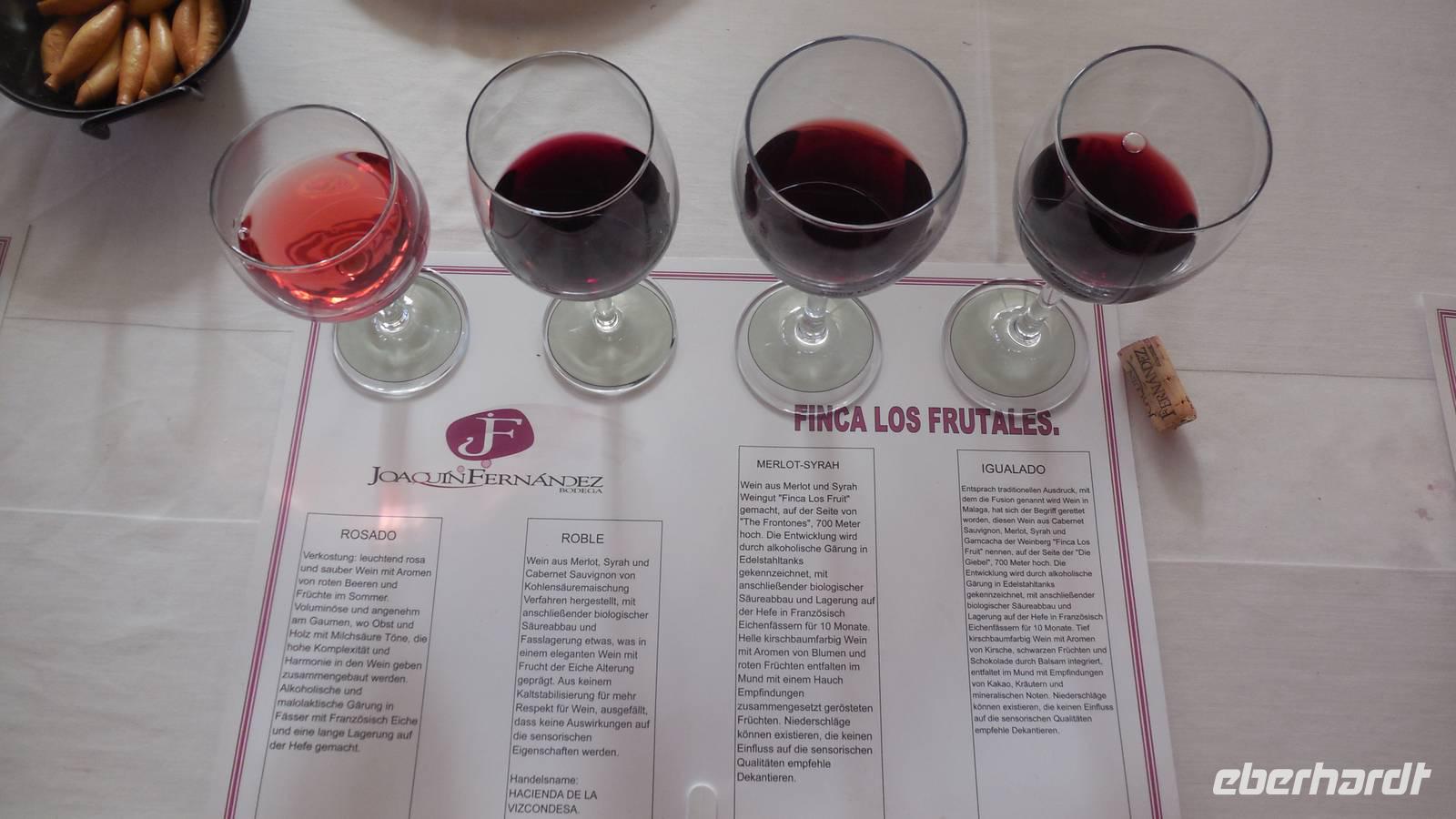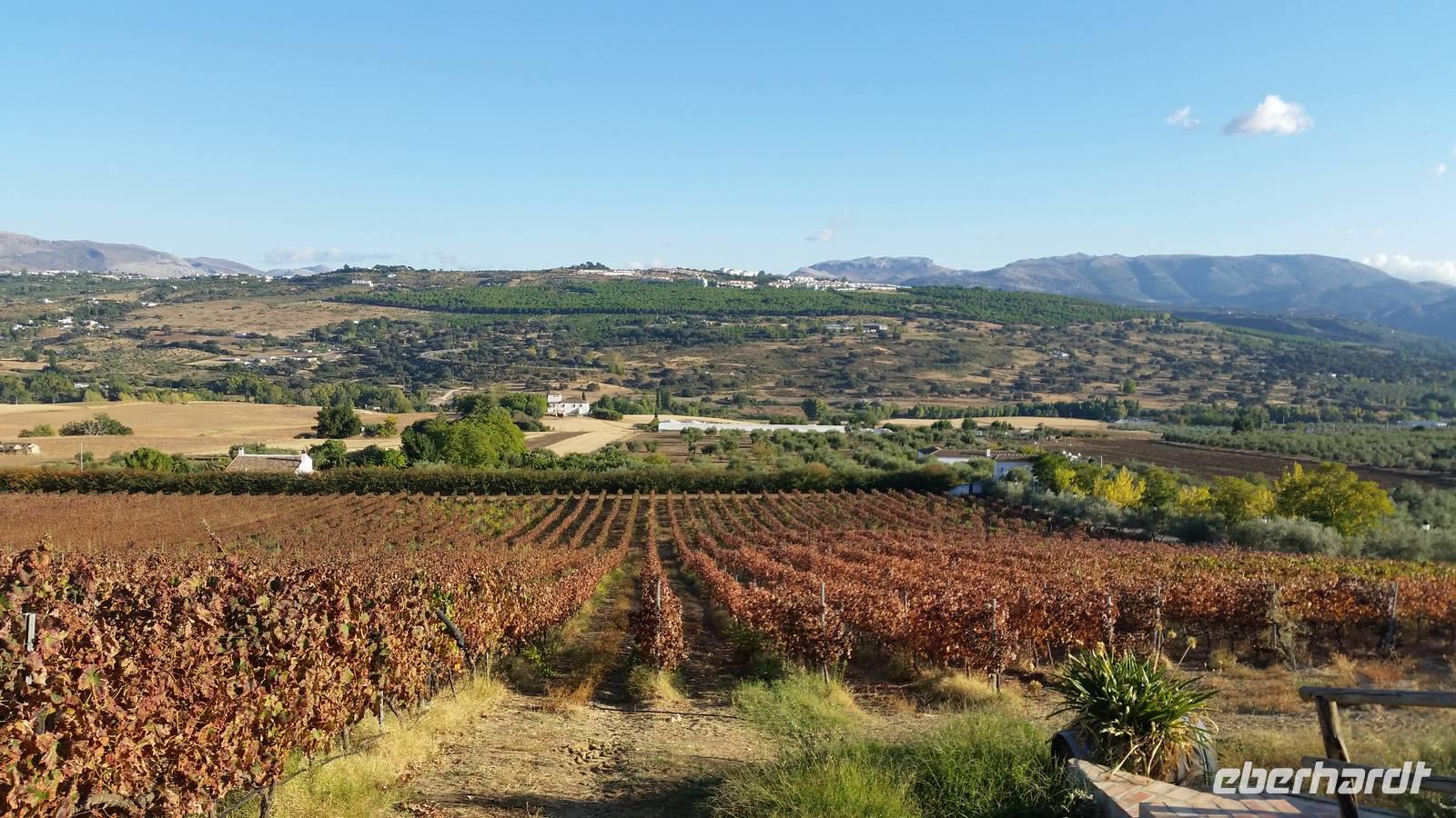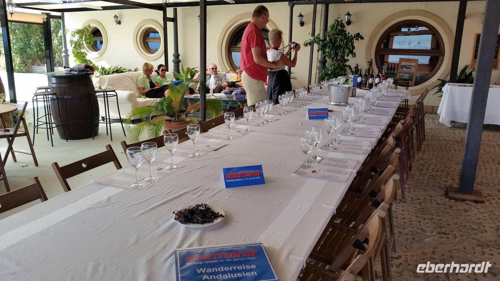 Auf unserem Rückweg zum Hotel legen wir einen Zwischenstopp in der Bodega „Los Frutales" von Julian Fernandez ein. Nach einer Führung, verkosten wir vier leckere regionale Weine mit Tapas. Ich habe einige typische spanische Lieder ausgedruckt, damit wir alle singen können (Porrompomero, Cielito Lindo, Guantanamera, usw...). Auf eine schöne Terrasse mit Blick nach Ronda haben wir Wanderlieder gesungen und einige Witze erzählt. Herr Müller oder Herr Richter kannten die besten Witzen von uns allen, oder? Aber der Benjamin hatte auch eine Überraschung mit dem Witz von Rotkäppchen und der Wolf wie er sagt „Hau ab. Ich k.... gerade". Auf dem Weg wurde dann weiter gesungen, da der Wein einfach zu gut war.