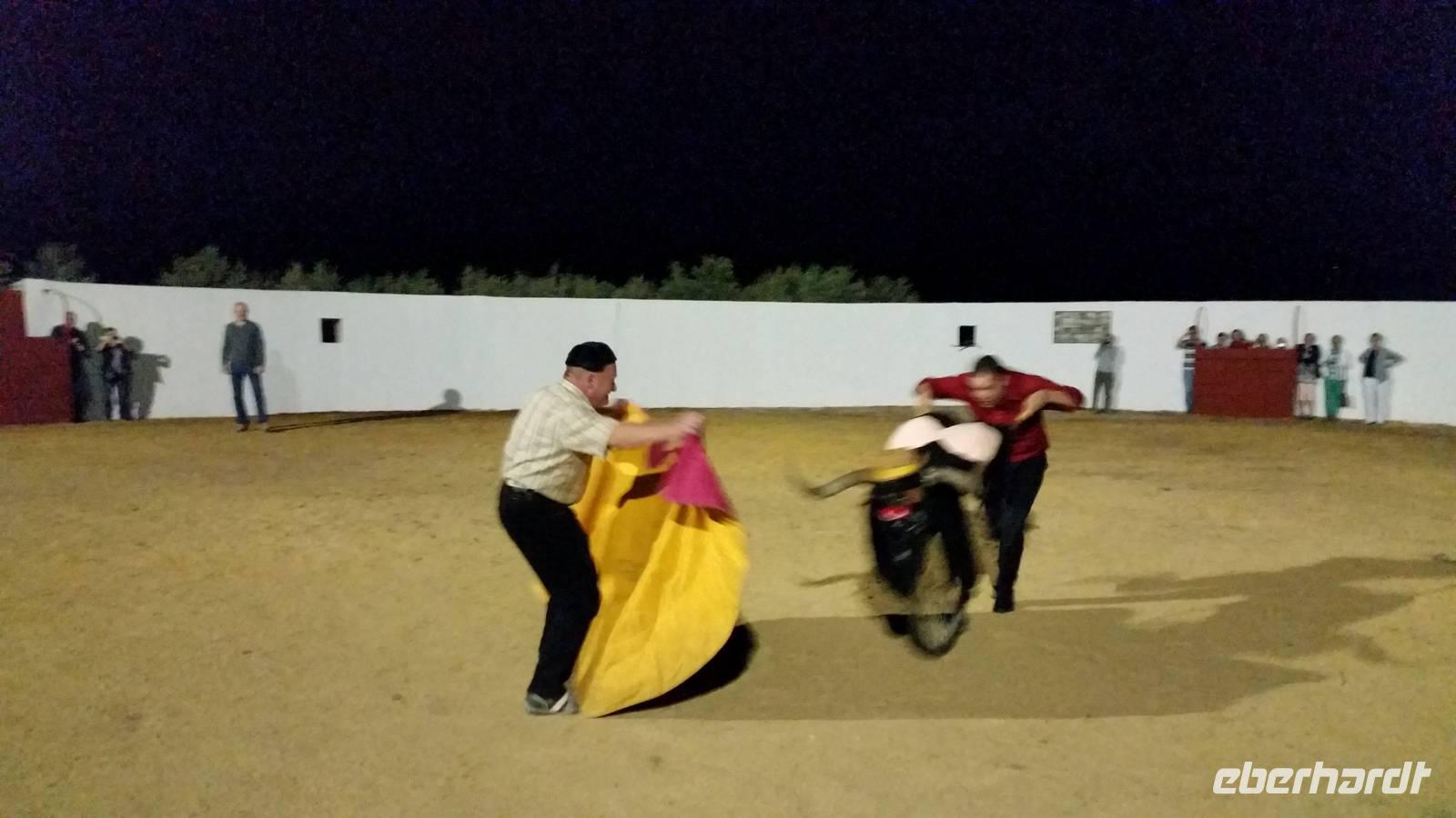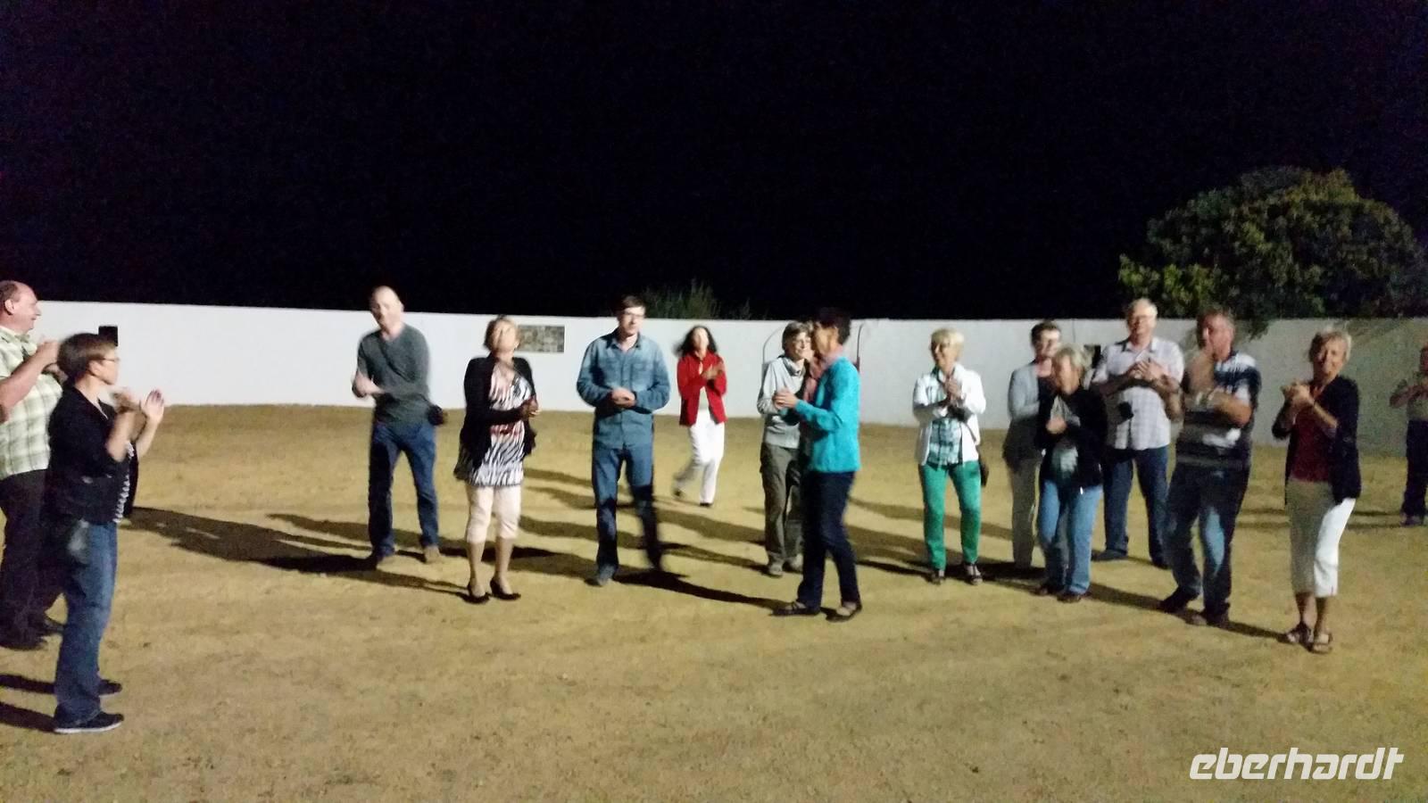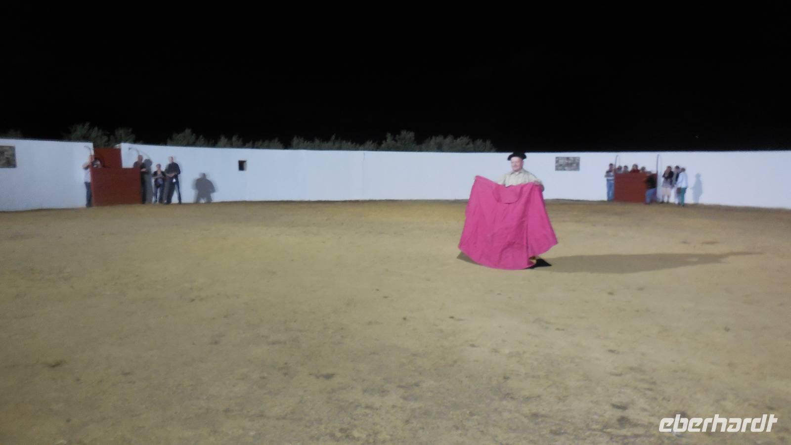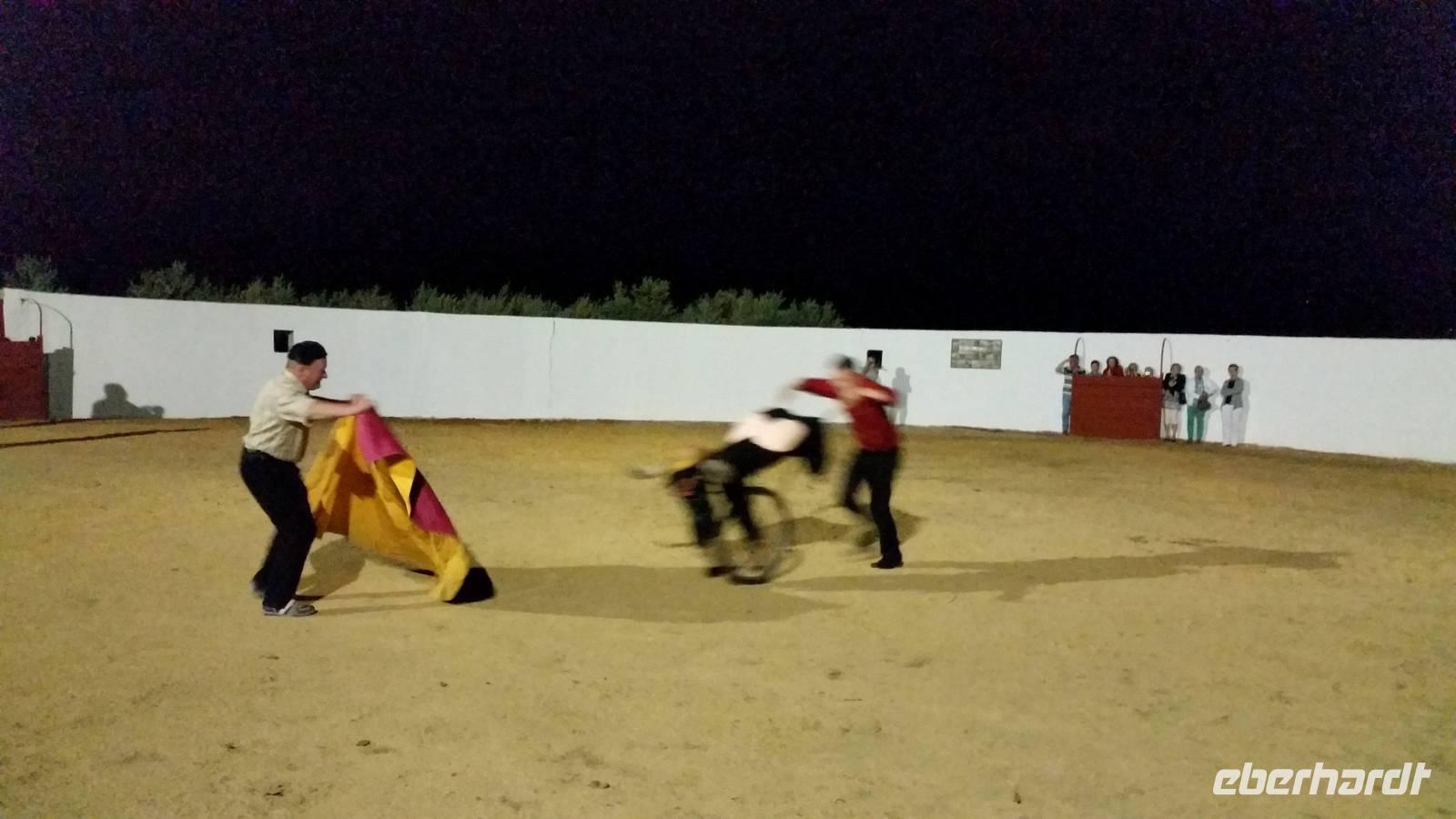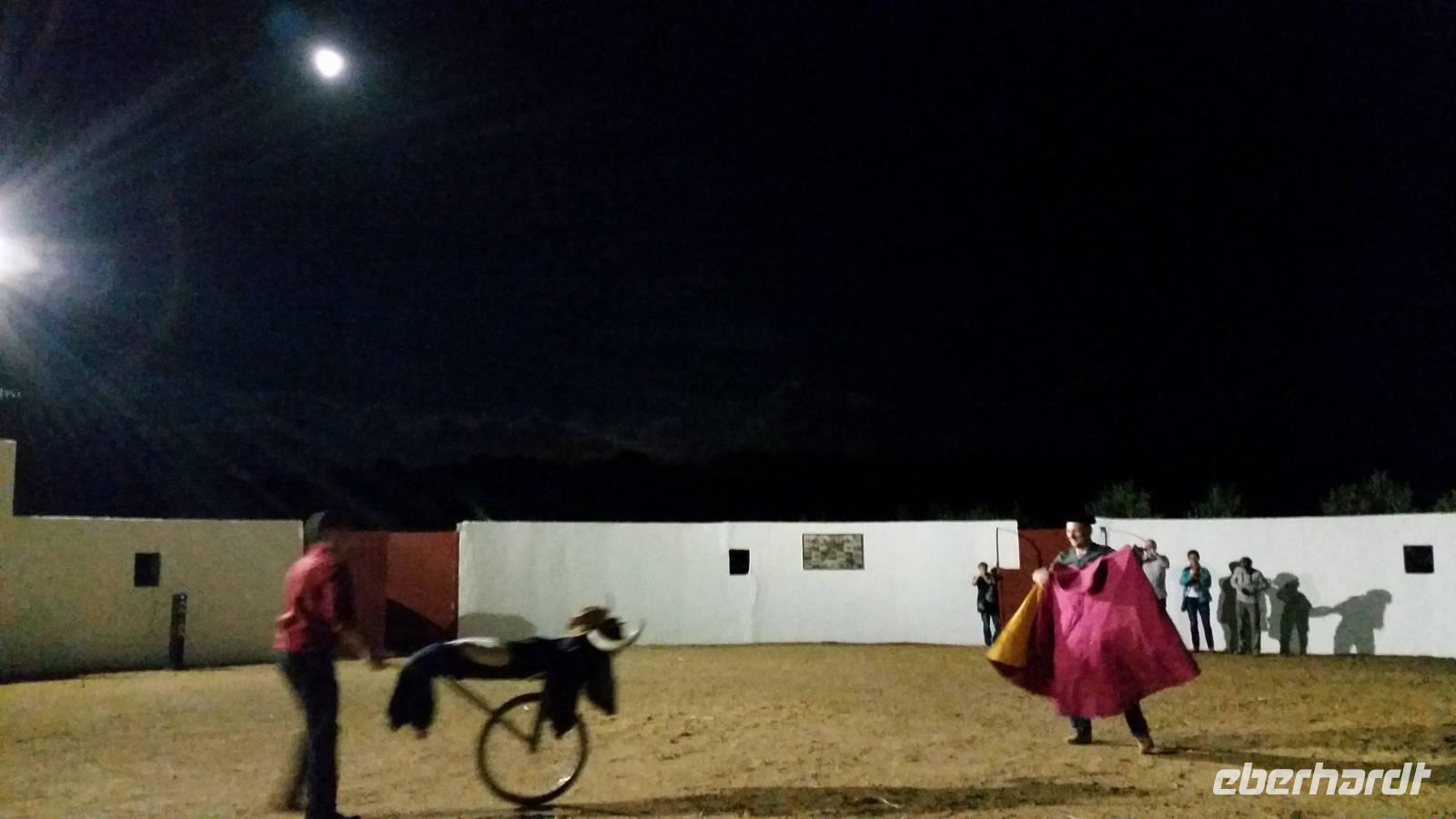 Am Abend erwartet uns ein typisch andalusisches Grill-Abendessen im Ring einer ehemaligen Stierkampfarena direkt an unserem Hotel. Anschließend gab es eine Überraschung: eine falsche Stierpuppe fordert uns „Toreros" heraus. Berühmte spanische Volksmusik wurde gespielt, wir alle tanzten und hatten eine unvergessliche Nacht. Bevor wir schlafen gingen, besuchten einige von uns die Kapelle, die unser „Cortijo" hat.