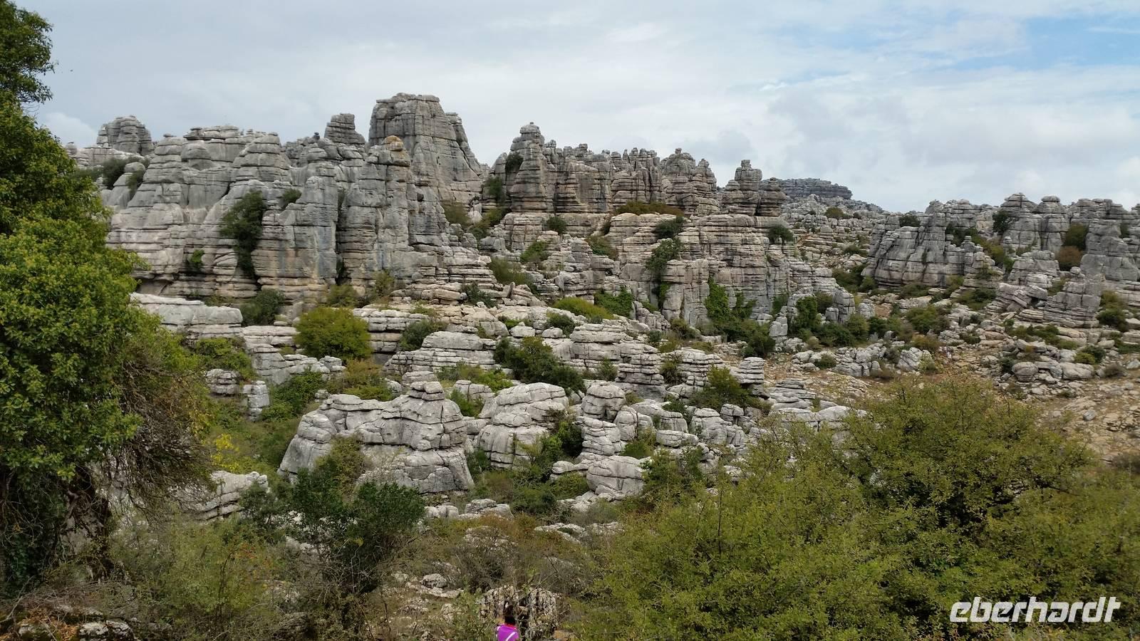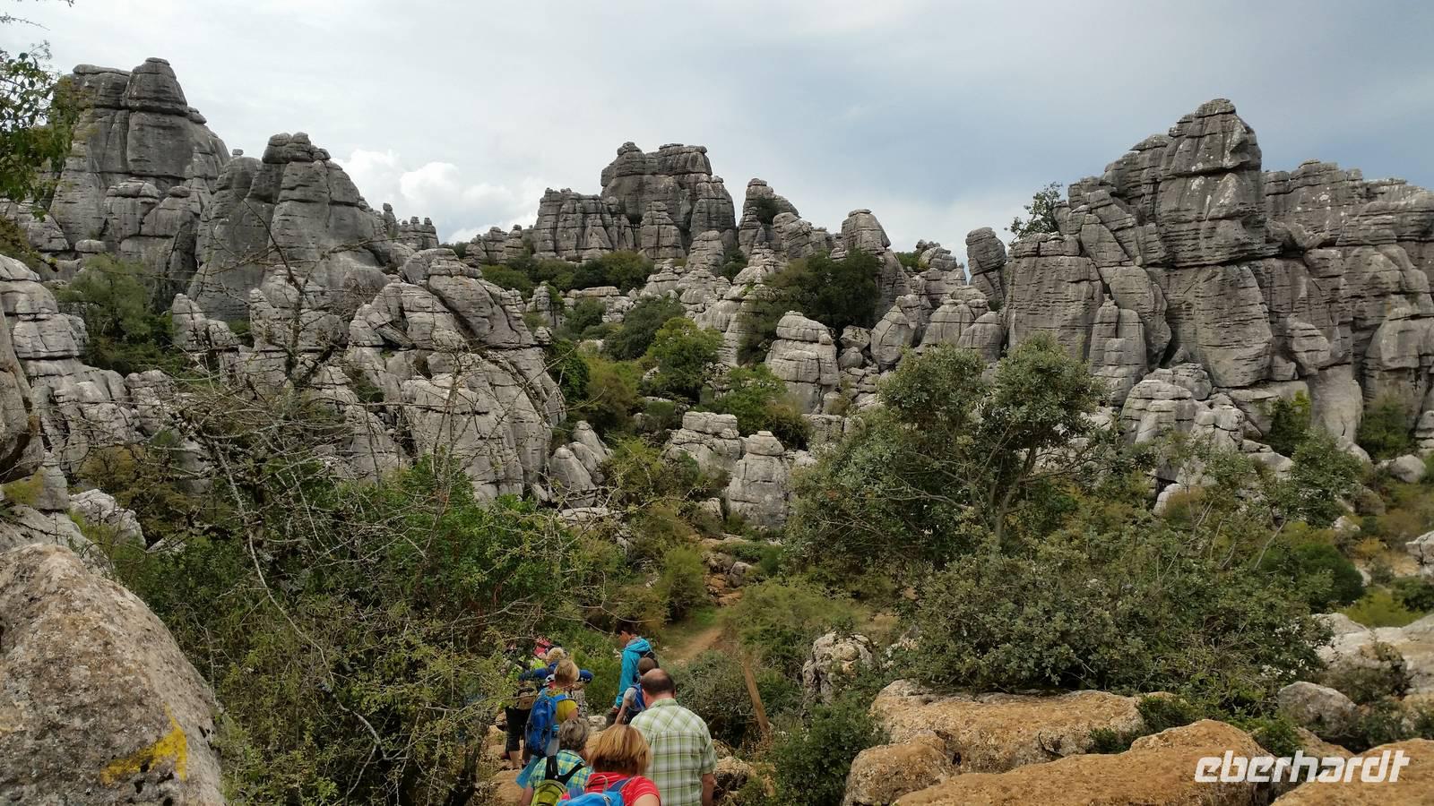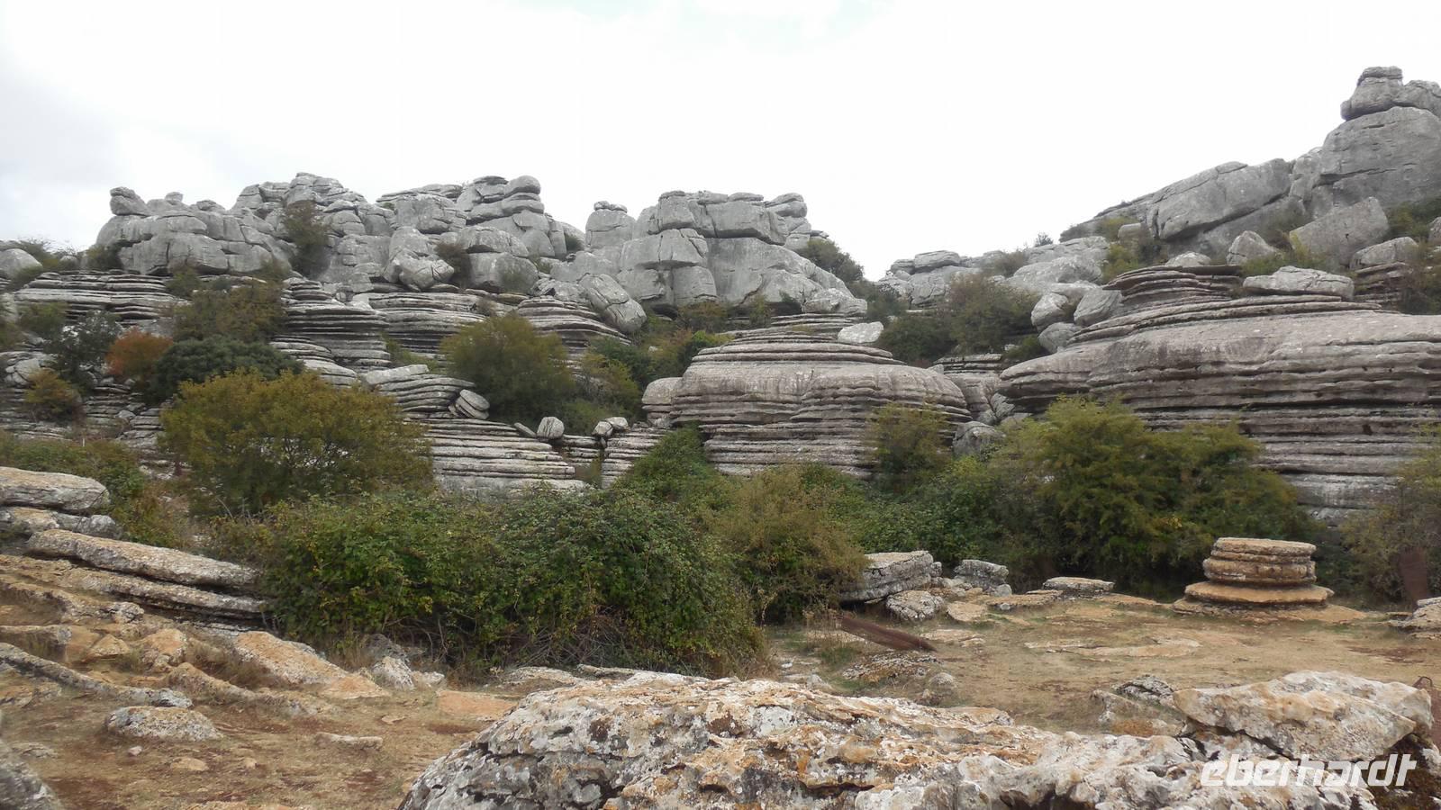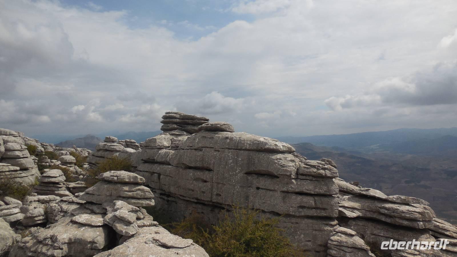 Wieder eine wunderschöne Landschaft, die für viele sehr große Ähnlichkeiten mit der „sächsischen Schweiz" hat. El Torcal ist ein 1171 ha großes Naturschutzgebiet, das mit seinen außergewöhnlichen Karst Formationen zu den beeindruckendsten Landschaften Spaniens gehört. Im Jahr 1989 wurde es sogar zum „Naturschutzgebiet" erklärt. Zerklüftete Felsen und Schluchten wechseln in stets neuer Gestalt einander ab. Hohe Säulen aus Steinplatten unterschiedlicher Größe sehen aus, als wären sie künstlich aufeinander gestapelt worden. Ganz unvermittelt sieht man ausgespülte Becken in ebenen Felsplatten. Wir machten hier eine zweistündige Wanderung entlang des „gelben Weges"-Tour. Mittagsessen hatten wir da oben. Wir verkosteten „Migas" typisch von Spanien, die uns geschmeckt hat.