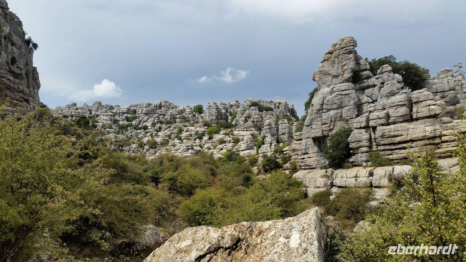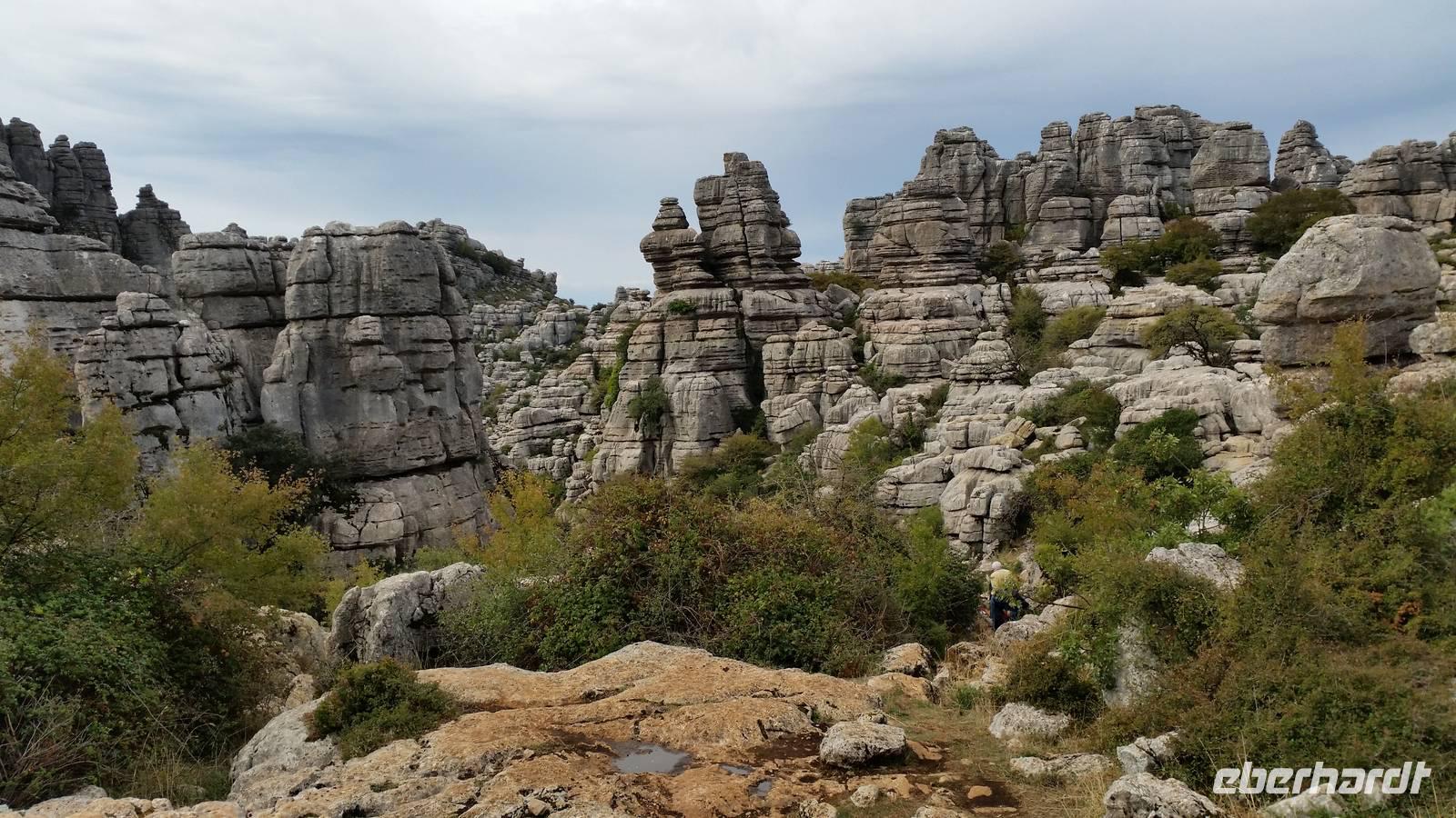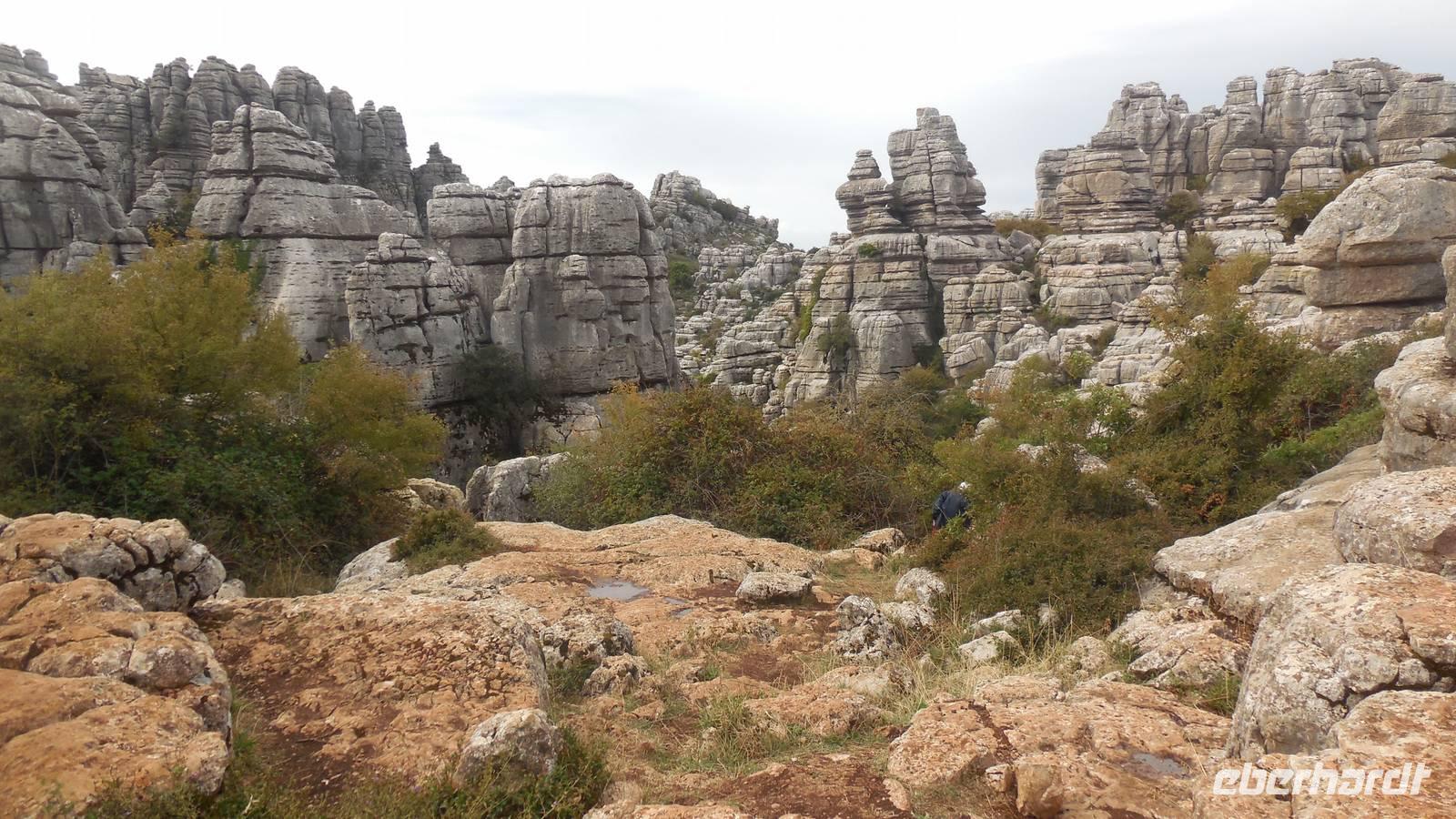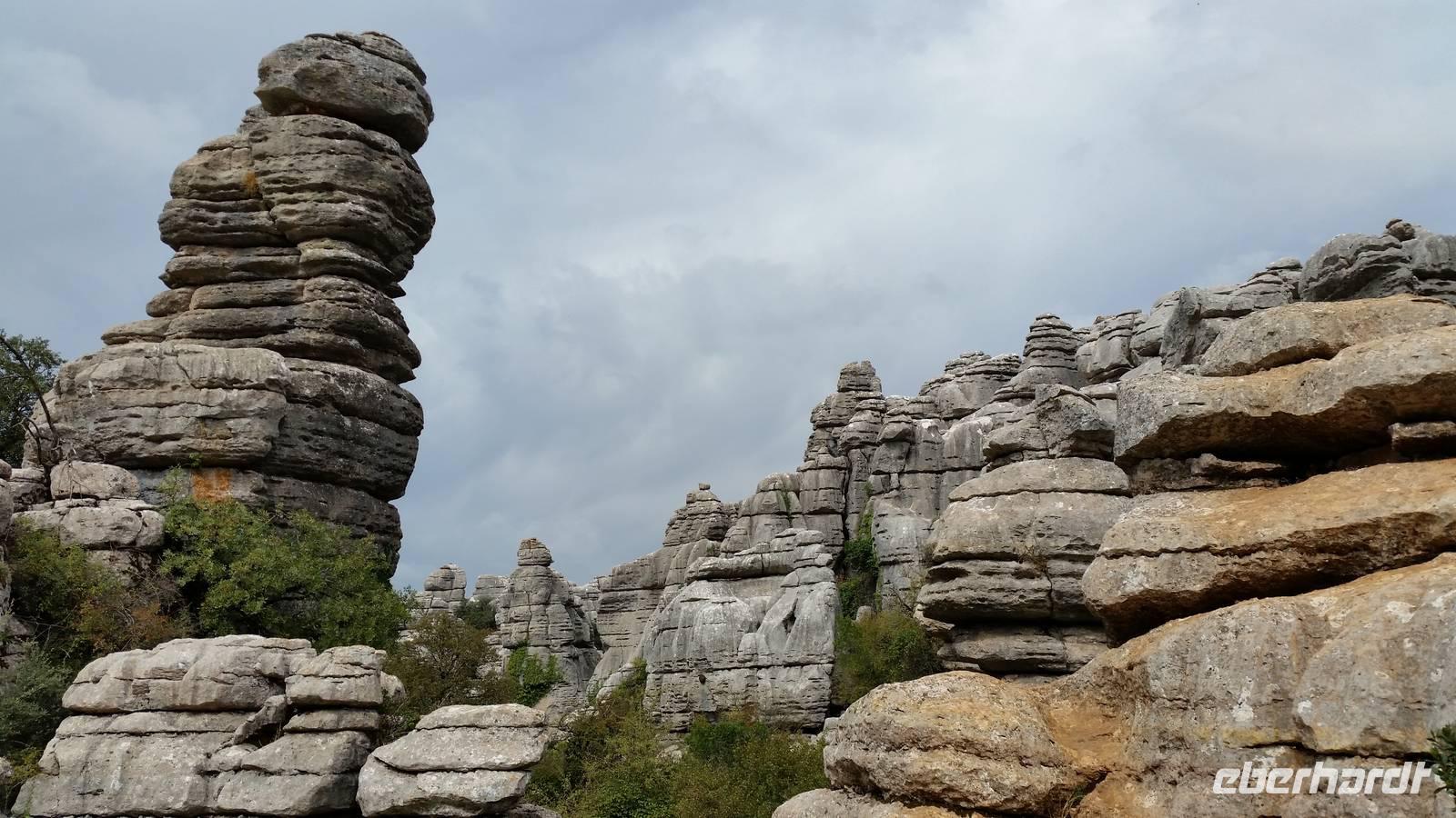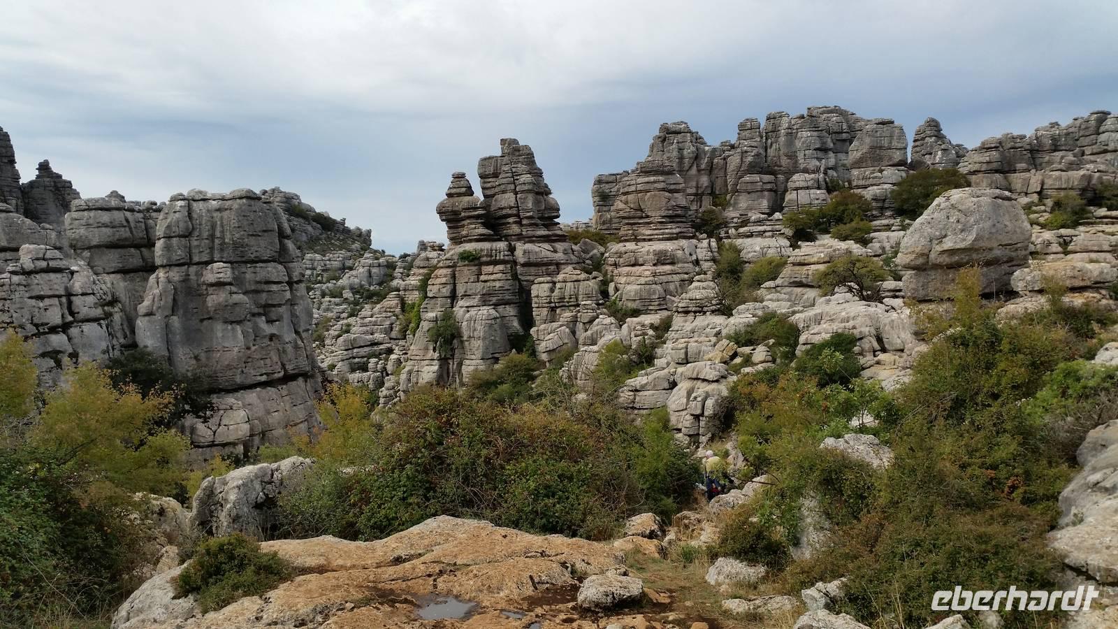 Wieder eine wunderschöne Landschaft, die für viele sehr große Ähnlichkeiten mit der „sächsischen Schweiz" hat. El Torcal ist ein 1171 ha großes Naturschutzgebiet, das mit seinen außergewöhnlichen Karst Formationen zu den beeindruckendsten Landschaften Spaniens gehört. Im Jahr 1989 wurde es sogar zum „Naturschutzgebiet" erklärt. Zerklüftete Felsen und Schluchten wechseln in stets neuer Gestalt einander ab. Hohe Säulen aus Steinplatten unterschiedlicher Größe sehen aus, als wären sie künstlich aufeinander gestapelt worden. Ganz unvermittelt sieht man ausgespülte Becken in ebenen Felsplatten. Wir machten hier eine zweistündige Wanderung entlang des „gelben Weges"-Tour. Mittagsessen hatten wir da oben. Wir verkosteten „Migas" typisch von Spanien, die uns geschmeckt hat.