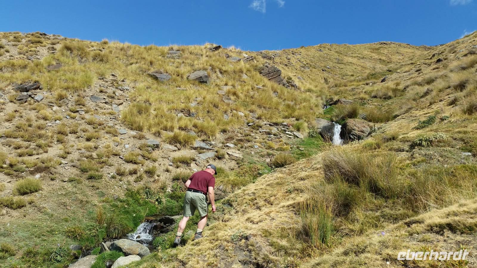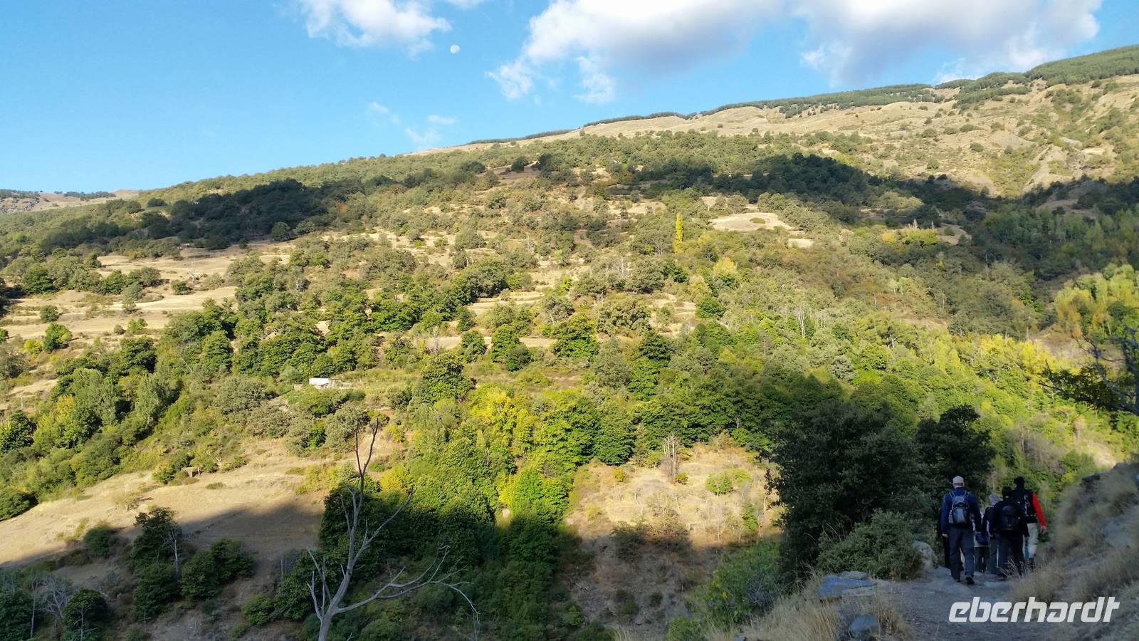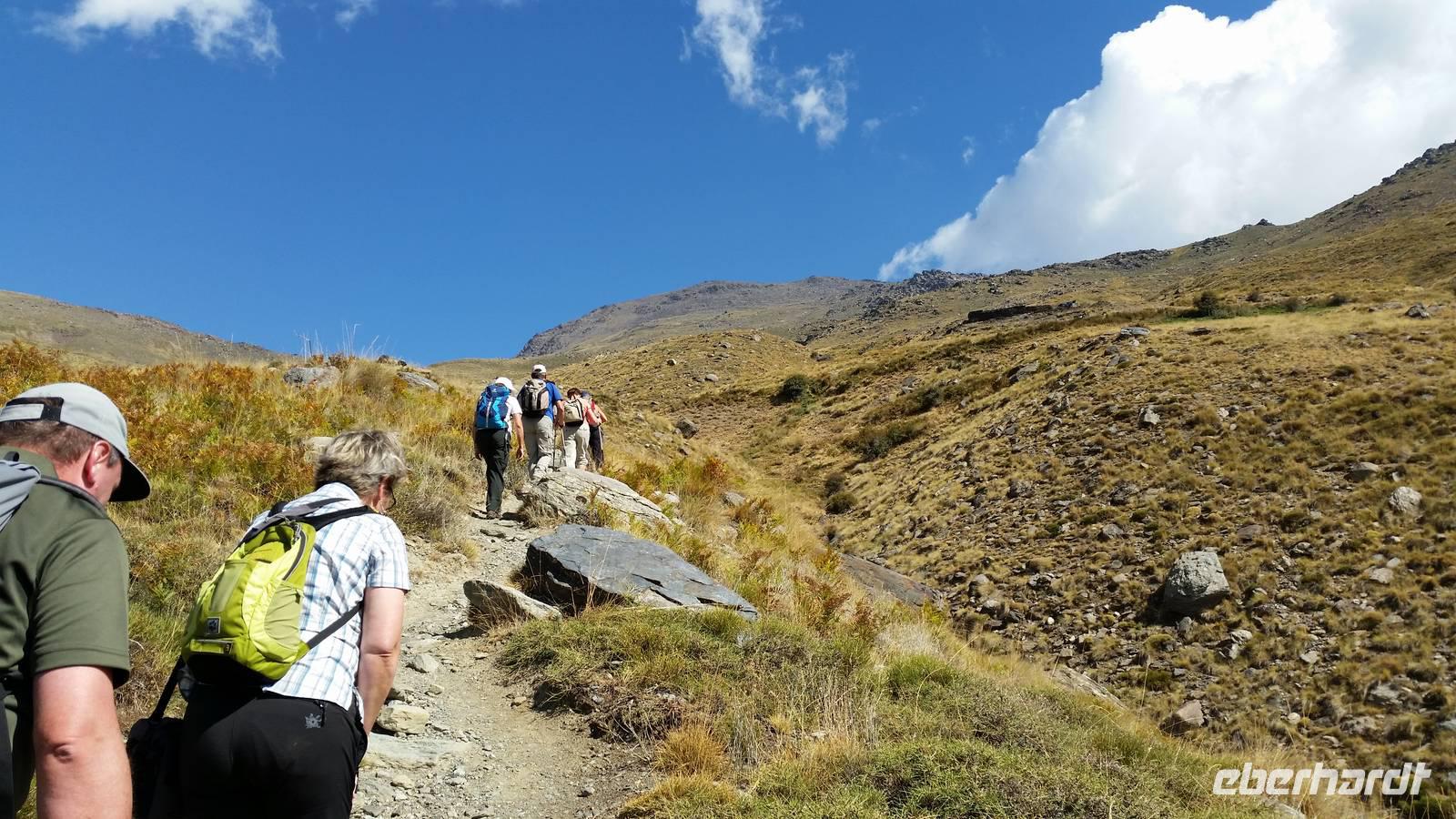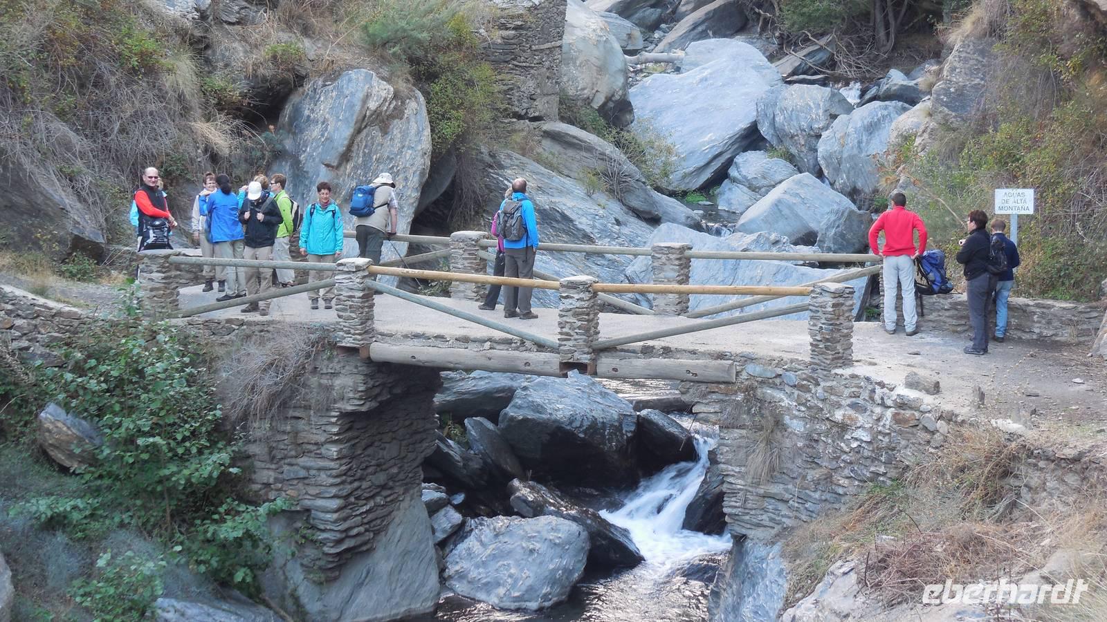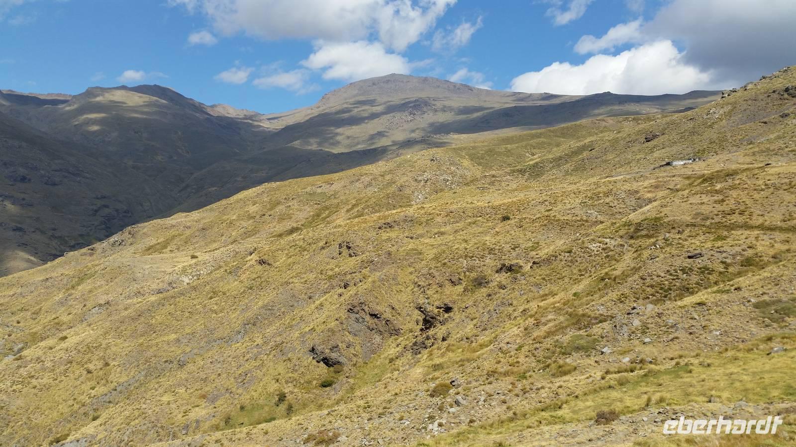 Wir wandern durch das tief eingeschnittene Flussbett des Rio Poqueira mit seinen zahlreichen Nebenflüssen. Auf dem Weg werden wir wunderschöne kleine Wasserfälle treffen. Links und rechts des Pfades erblicken wir traditionelle „Cortijos". Paco erzählt uns dieses Jahr auch wieder interessante Details zum früheren Leben der Schafhirten, die hier in den Sommermonaten die andalusischen Gehöfte bewohnten. Wir gehen auch bei einer „Acequia" vorbei, einem antiken Bewässerungskanalsystem, welches auf die zeitliche Epoche der Mauren zurückgeht. Nicht weit von uns sehen wir oben die Hütte, von wo man den Mulhacen erklimmen kann.