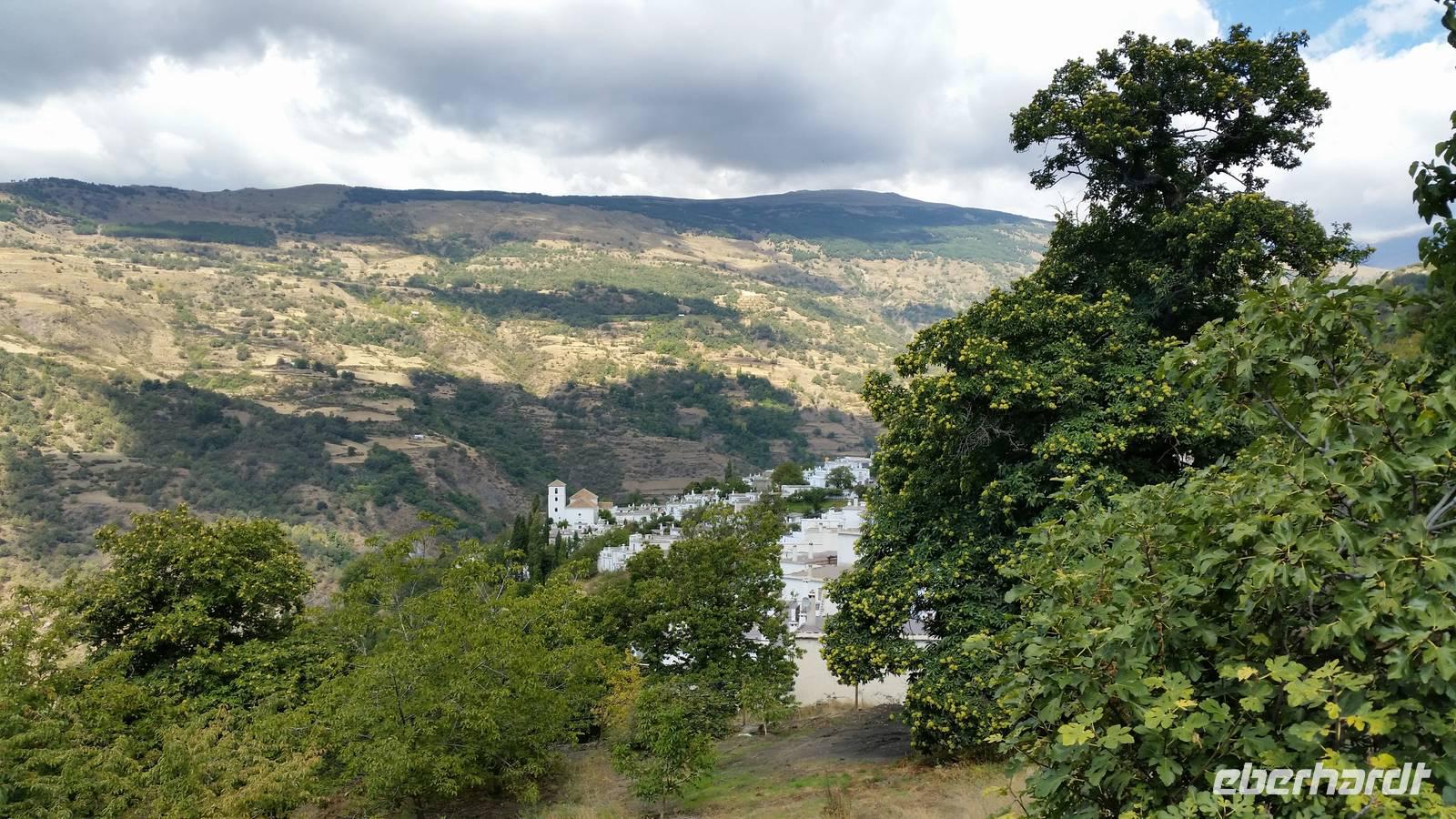 Die Berge grüßen uns früh am Morgen mit klarem Himmel. Das Frühstück ist reichhaltig und im Hotel erwartet uns Jose, unser Reiseleiter für den heutigen Tag. Heute werden wir das Tal überqueren und von Capileira bis Pampaneira wandern. Nachdem wir die im Berberstil erbauten kleinen Gassen der Ortschaft durchquerten, gelangten wir über einen kleinen Pfad zum Flussbett des Rio Poqueira, wo wir die Uferseite wechselten, um auf der anderen Seite der Schlucht weiter zu wandern. Auf dem Weg fanden wir Zitronen-, Mandel-, Orangen- und Maulbeerbäumen.