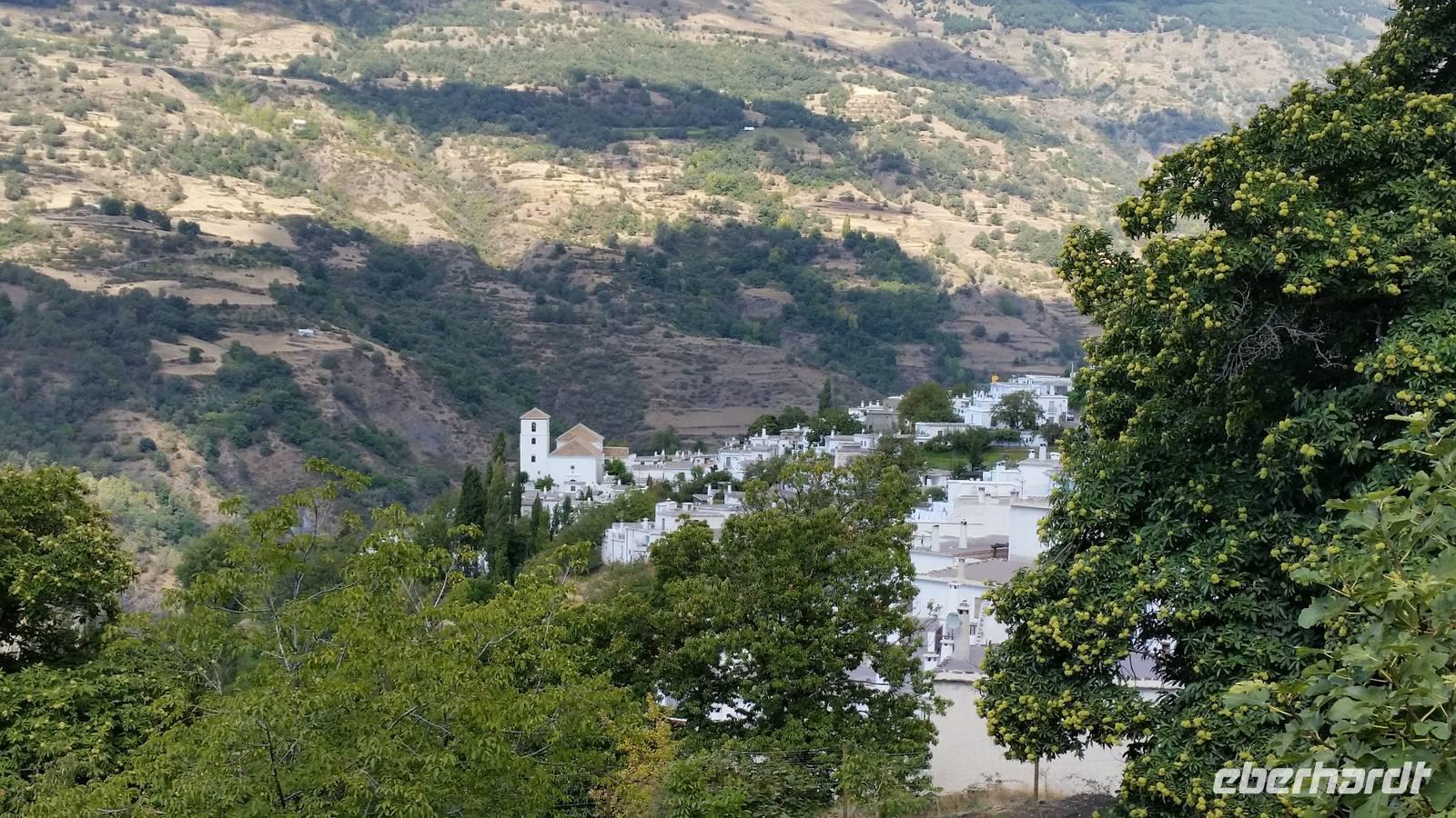 Es geht weiter und wir überqueren wieder den Fluss, der sogar kräftiger als oben ist. Der Weg führt anschließend weiter bis nach Pampaneira -ein kleines Dorf auf einer Höhe von 1.295 Metern mit einer malerischen Dorfkirche, wo Jose uns sein Büro zeigte.
