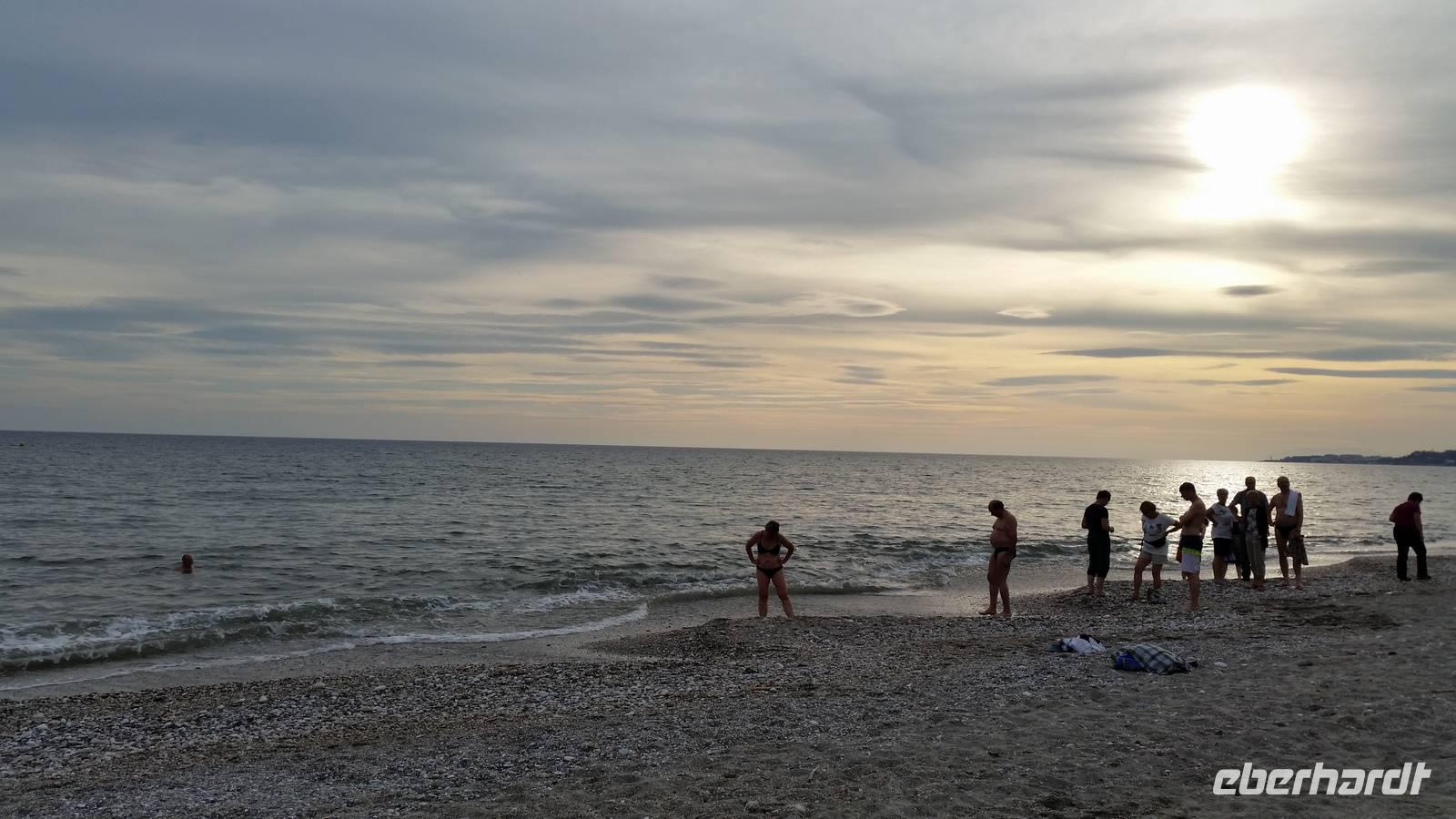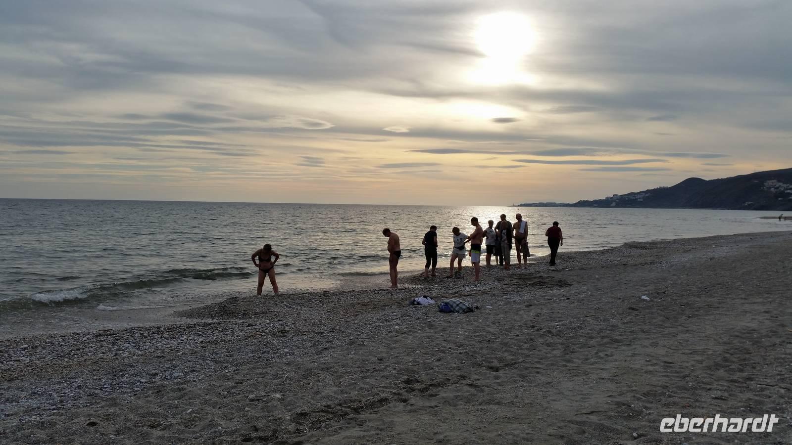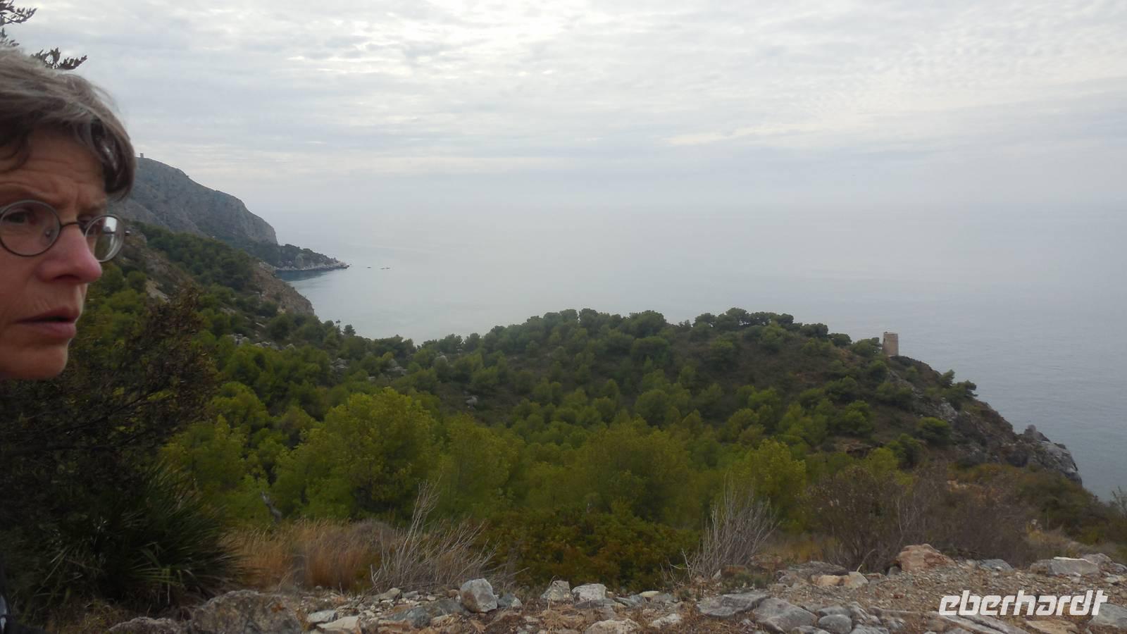 Heute verabschieden wir uns vom traumhaften Tal Las Alpujarras und fahren an die Küste in Richtung des Fischerdorfes Almunecar. Dort treffen wir unsere heutige Wander-Reiseleitern Chanchi und Angela, mit denen wir durch einen der schönsten Küstenstreifen von Andalusien wandern: die Klippen von Maro-Cerro Gordo. Wir gingen durch eine herrliche Landschaft mit abrupten Klippen, heimlichen Buchten und Zistrosen, wilden Oliven, Pinien und flechtenbewachsenen Felsen. Es ging immer am Meer entlang, bis zum „Torre de Caleta", einem alten Wachturm. Hier wurde uns erklärt wie die ganze Küste im Mittelmeer voll solcher Wachtürme war, so wenn die Piraten oder Feinde übers Meer kamen, könnte man ganz schnell mit Feuer oder Rauch Sprach-Signale von Turm zu Turm weiter sagen, wo die Gefahr lag. Wir endeten am Cantarrijal-Strand, einer idyllischen Badebucht, wo viele von uns im Meer badeten und auf eine Terrasse an der Sonne Mittagessen hatten. Es war wie Sommer. Das Mittelmeer ist an diese Stelle einfach herrlich mit wunderschönen Buchten und grün-blauem Wasser.