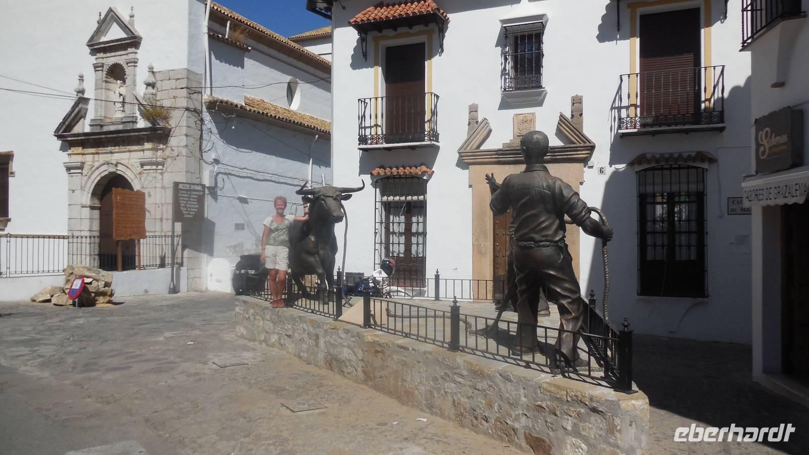 In Ronda gibt es sozusagen zwei getrennte Städte oder Viertel, die mit einer Brücke über eine Schlucht verbunden sind. Wir besichtigen die Stierkampf-Arena von außen. Für uns Spanier ist Ronda insbesondere wegen seiner Rolle in der Entwicklung des Stierkampfes von Bedeutung.