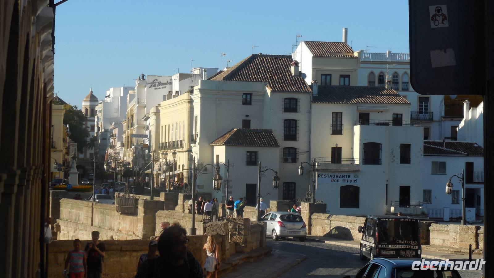 Nachdem wir auf einer Wiese unsere Brötchen gegessen haben, kehrten wir auf einem einfacheren Weg zum Bus zurück. Auf dem Weg trafen wir Familien, die den Sonntag mit den Kindern auf den Wiesen feiern. Wir hielten noch in Grazalema um dieses winziges kleines Dorf unter den massigen Berge herrscht. Wir fuhren zurück ins Hotel und hatten Zeit uns im Hotel auszuruhen und frisch zu machen, bevor wir nach Ronda für den Stadtrundgang fahren. Wir ziehen uns chic an und treffen am späten Nachmittag unseren örtlichen Reiseleiter Daniel in Ronda, der diese andalusische Kleinstadt zeigte. Ronda liegt auf einer Höhe von 723 m über dem Meeresspiegel in einer als Serranía de Ronda bekannten Berglandschaft.