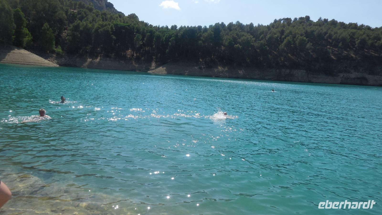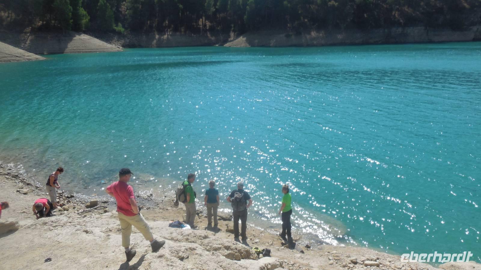 Das Wasser ist hier oft grün und wir entdecken einige Pflanzen die noch zu dieses Jahreszeit blühten. Es ist nicht mehr Frühling aber trotzdem wunderschön so eine steile und enge Schlucht von da oben zu beobachten. Am Ende unserer Wanderung konnten viele von uns im Stausee baden um sich wieder frisch zu machen. Das Wasser war türkis-grün... einfach herrlich. Unvergesslich.