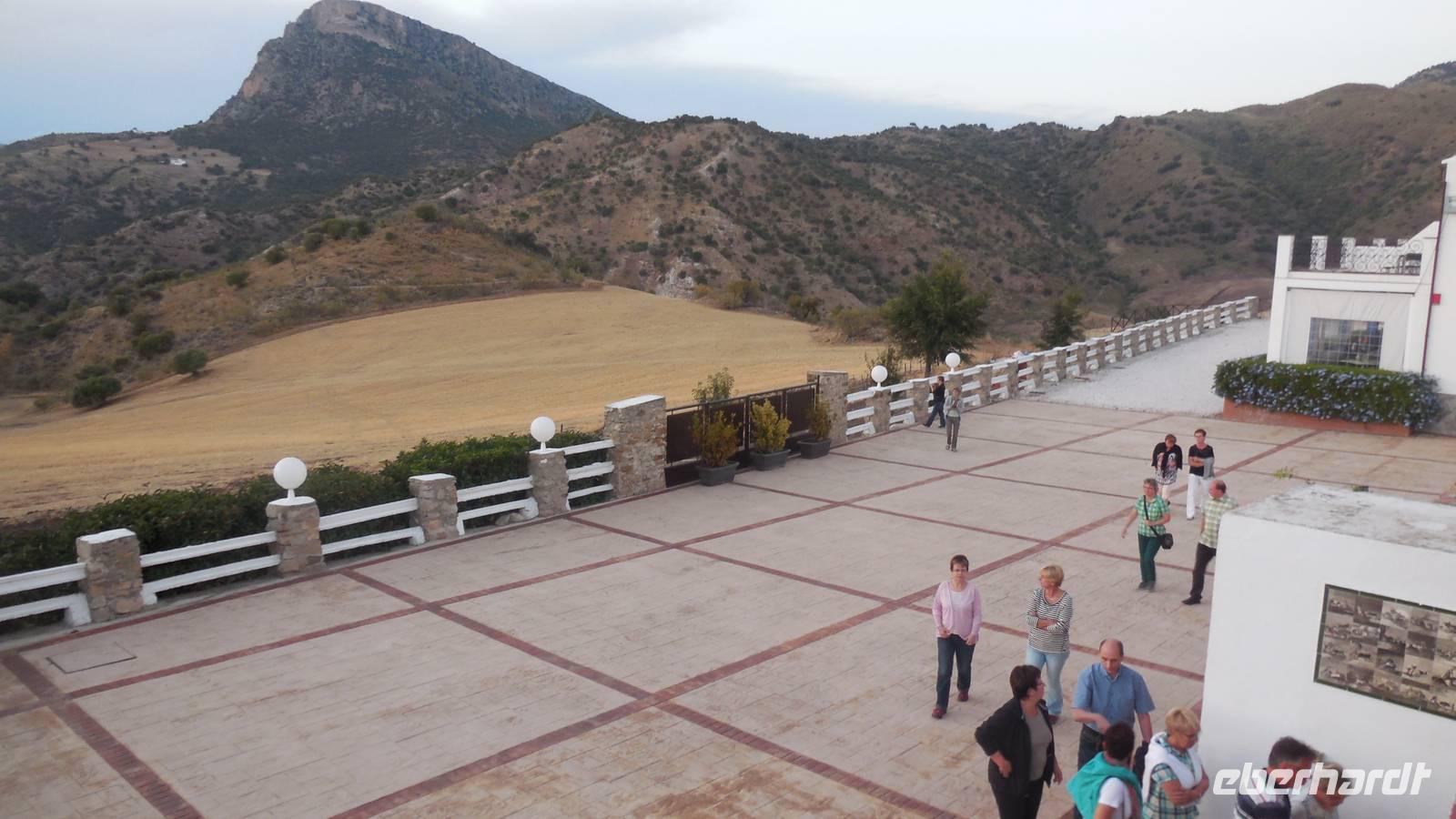 Die Sonne kommt langsam hoch und färbt den Himmel rosa. Uns begeistert immernoch die herrliche Anlage des Hotels. Wir fuhren heute hoch Richtung Grazalema-Gebirge. Dort treffen wir unsere Wander-Reiseleiterin Frau Jo Carter, eine sehr nette englische Frau, die seit vielen Jahren hier lebt. Sie und ihr Mann Fernando bereiteten liebevoll für uns alle leckere Brötchen vor.