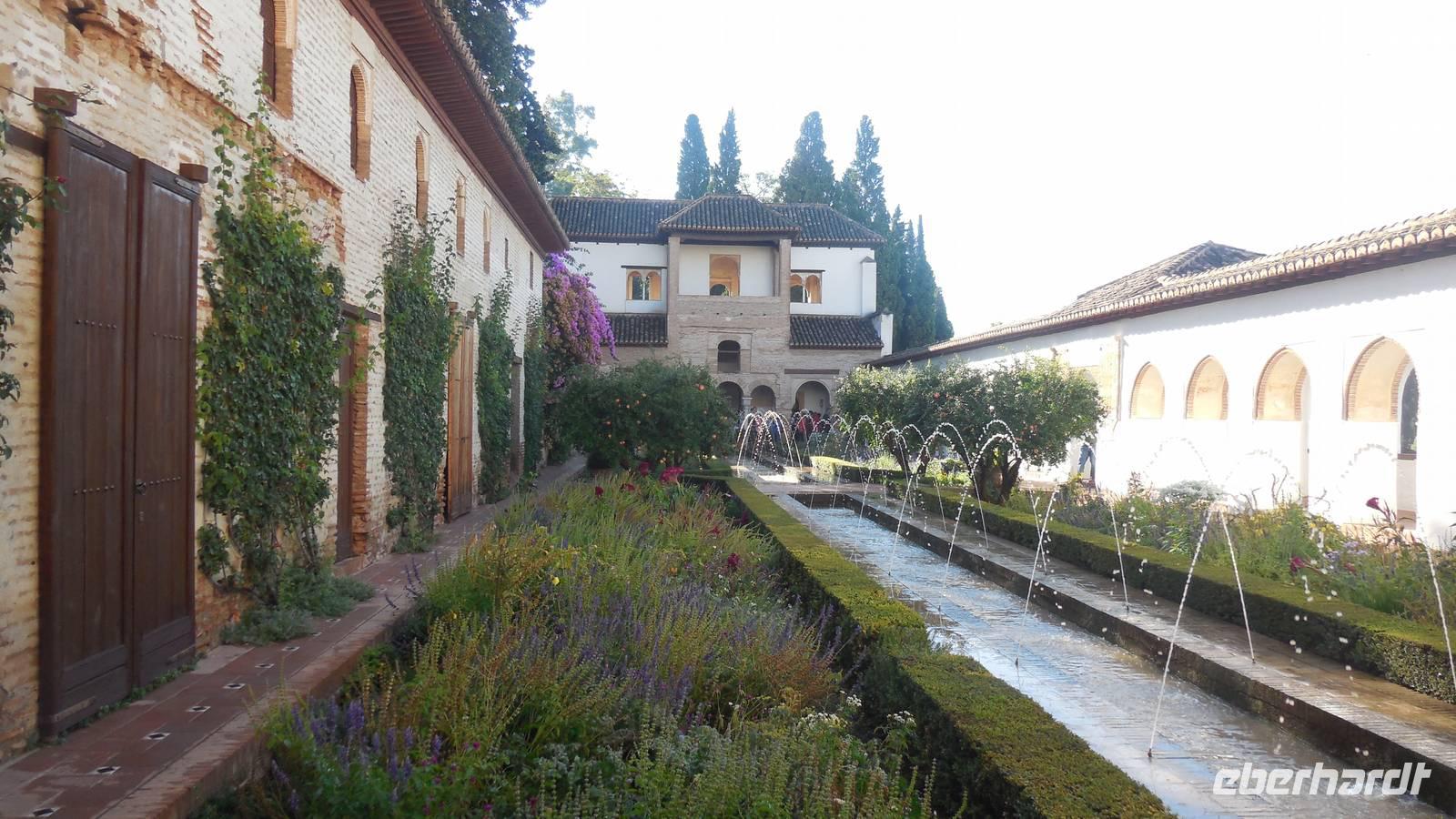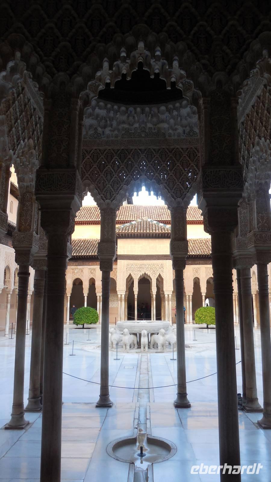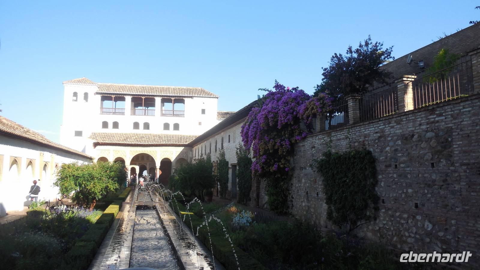 Heute werden wir Granada mit Pedro entdecken. Ganz früh am Morgen erwartet uns ein besonderer Höhepunkt unserer Reise: die Besichtigung der Alhambra. Die beeindruckende Stadtburg vereint mehrere Paläste, deren architektonische Erscheinung durch kunstvolle Verzierungen ein wahres Meisterwerk der Baukunst bieten. Bezaubernde Gartenanlagen mit ihren Wasserspielen machen aus der Besichtigung ein wahres Erlebnis. Und unser Reiseleiter Pedro hat dazu beigetragen dass man seine Leidenschaft und den Spaß an ihrer Arbeit anmerkt.
